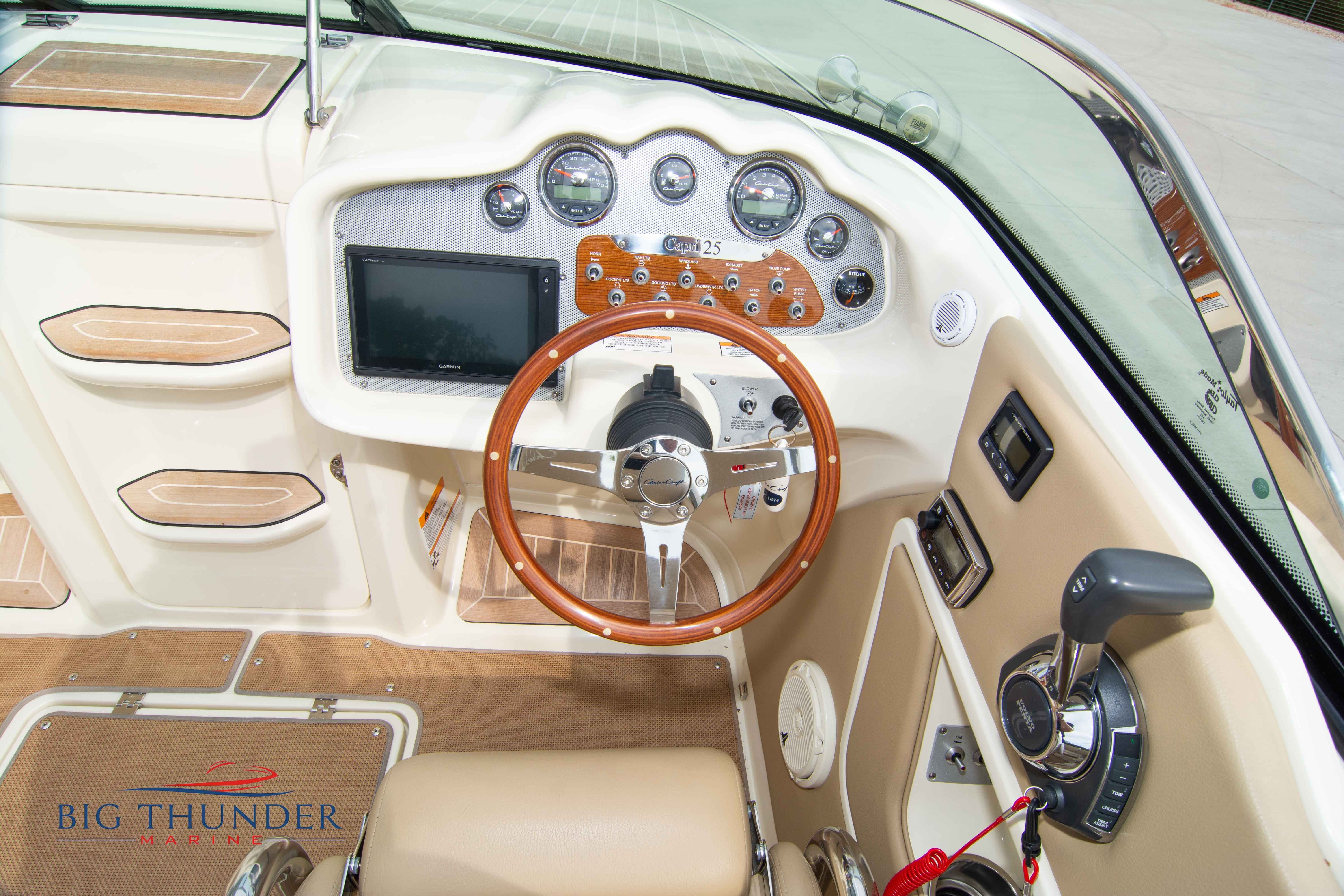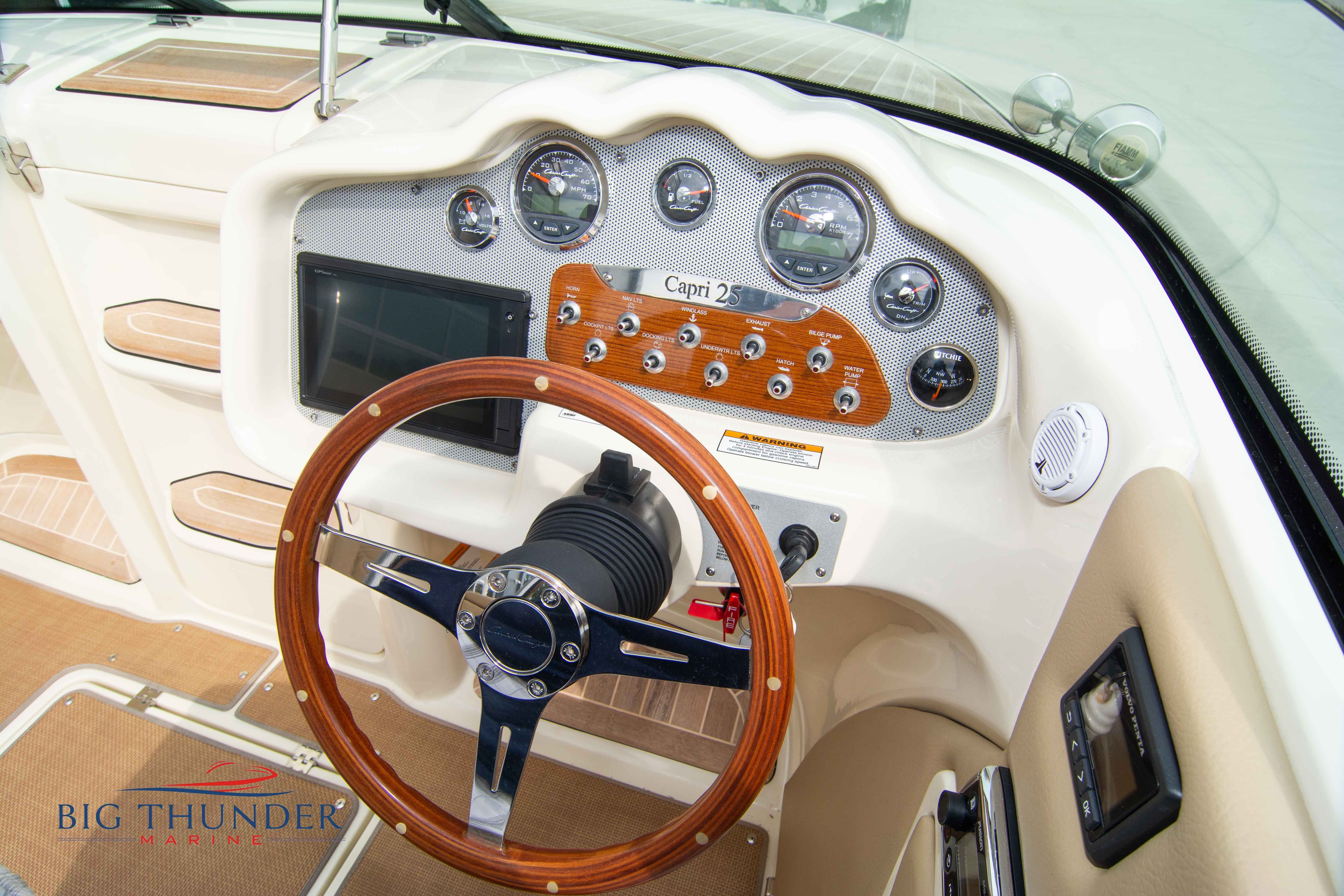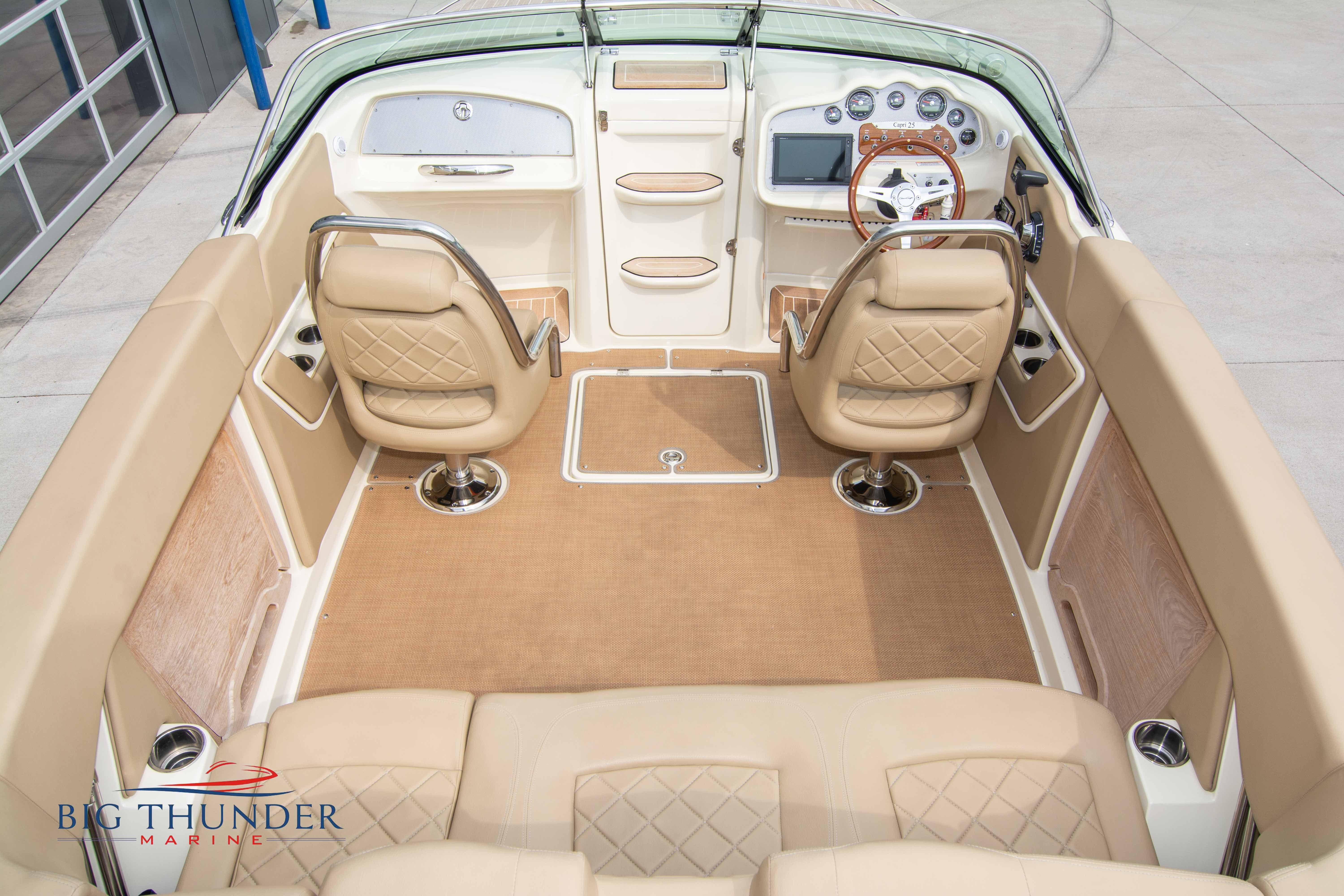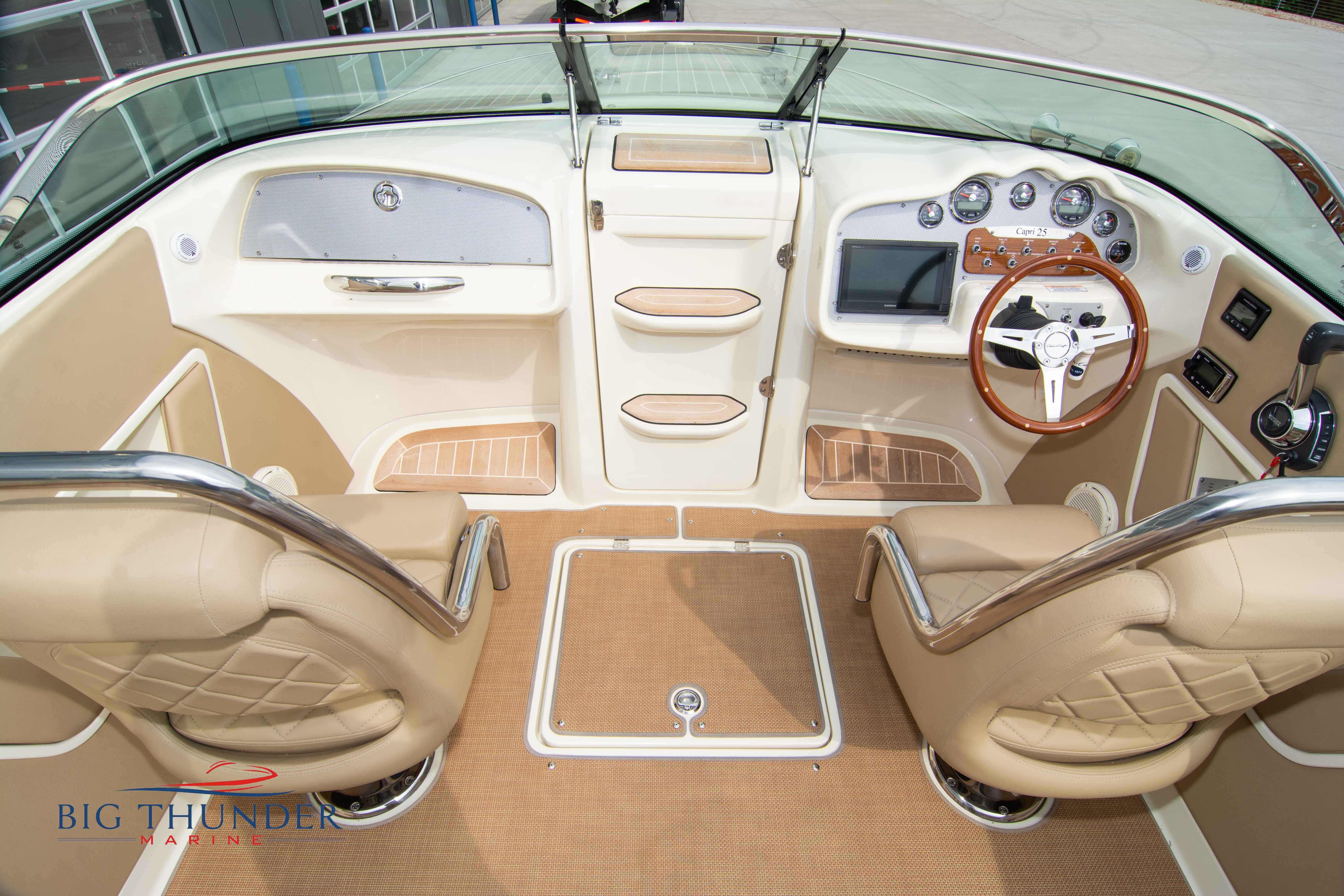 2017 Chris Craft 25 Capri Like new, low hour pre-owned in immaculate shape. A modern take on a classic vertical bow design, with bow cuddy cabin and loaded with luxury amenities. Some of the many features on this model include: