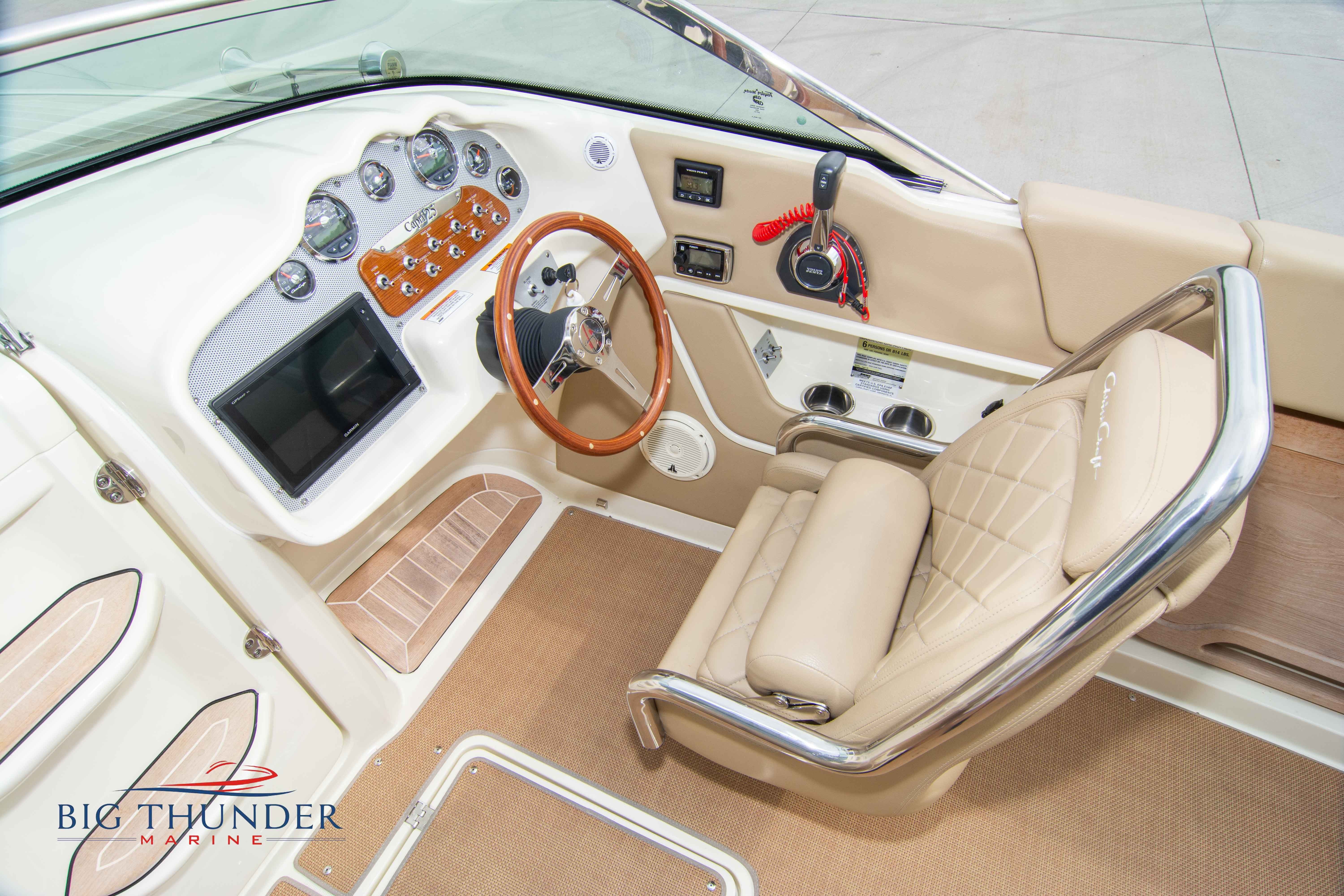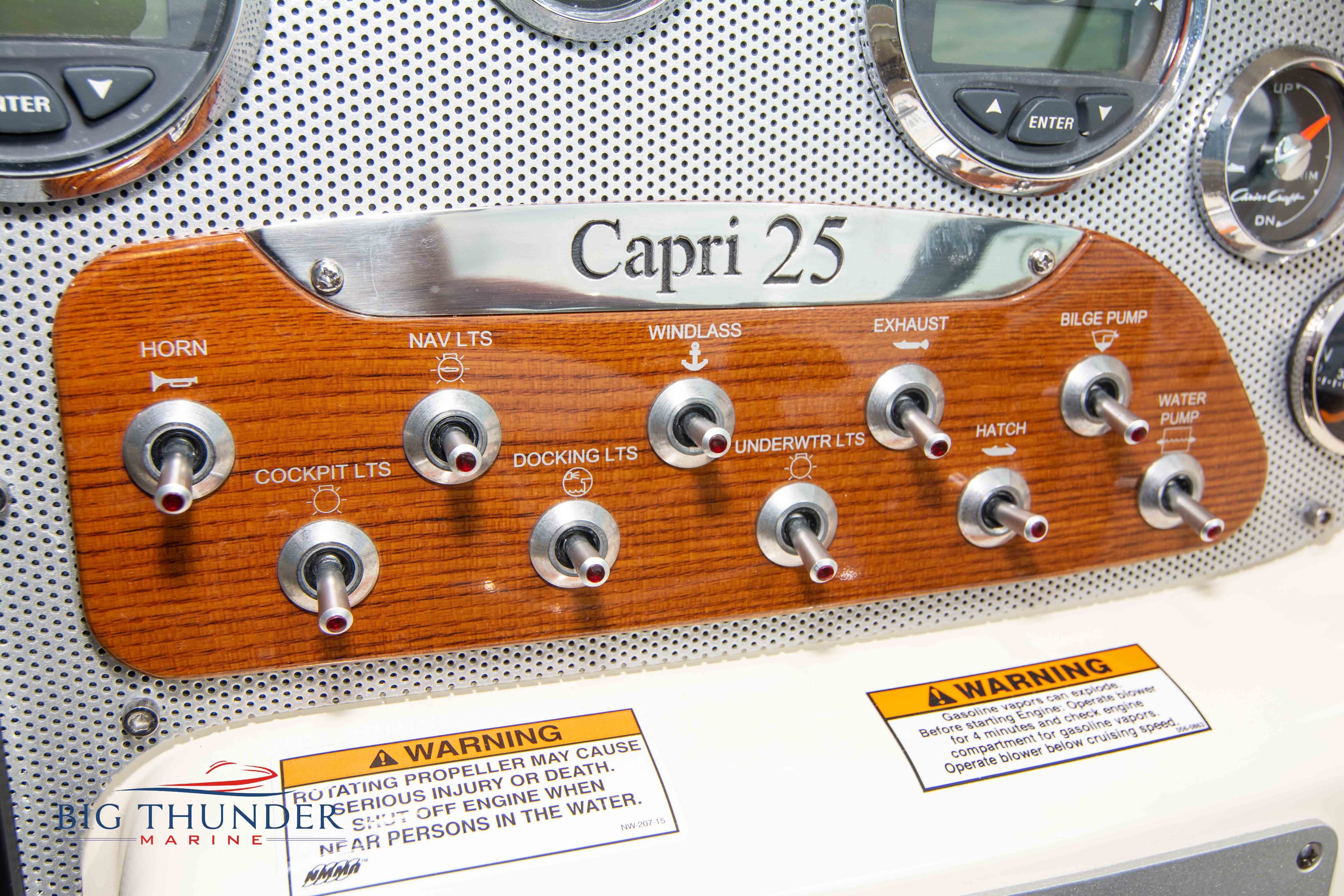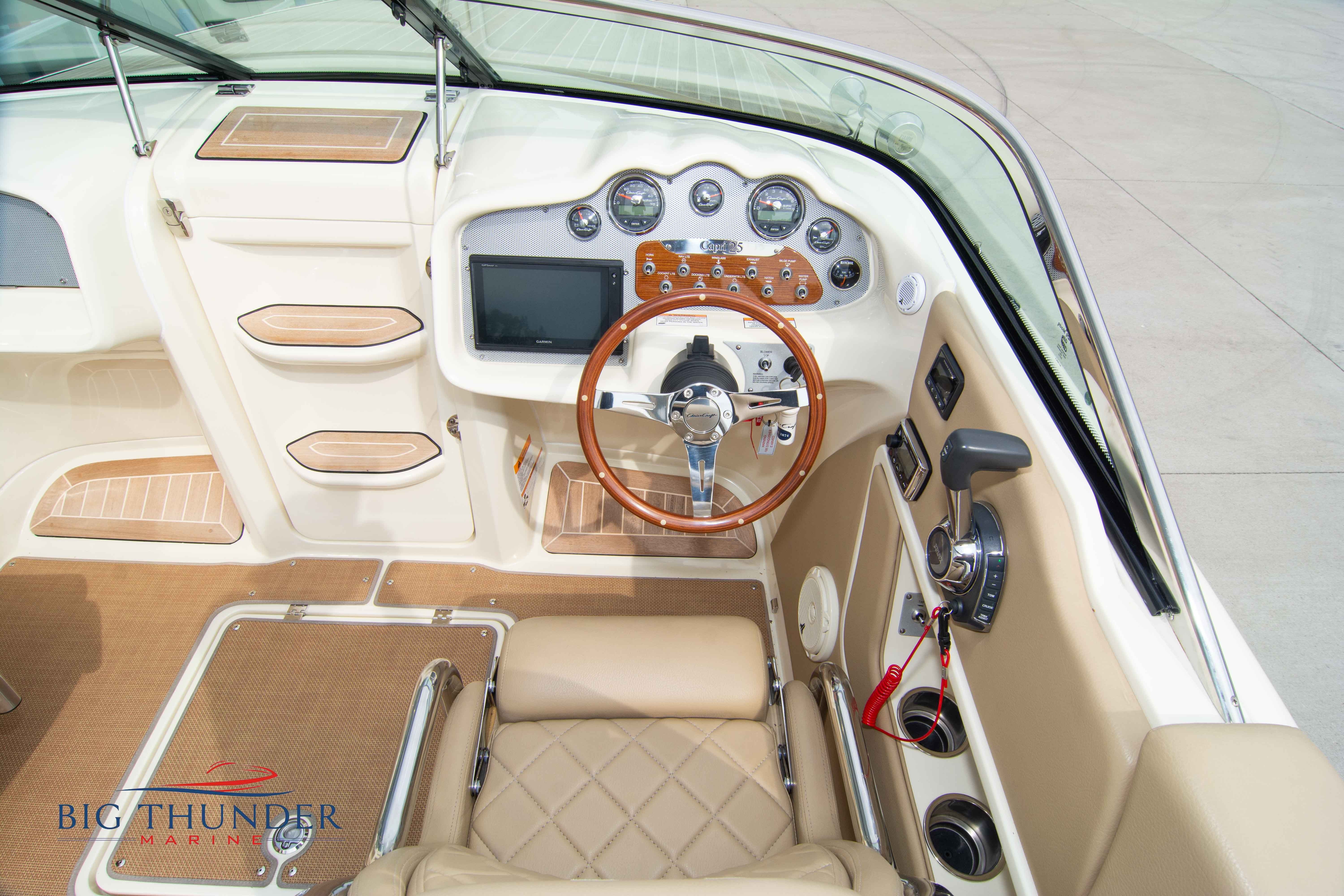 2017 Chris Craft 25 Capri Like new, low hour pre-owned in immaculate shape. A modern take on a classic vertical bow design, with bow cuddy cabin and loaded with luxury amenities. Some of the many features on this model include: