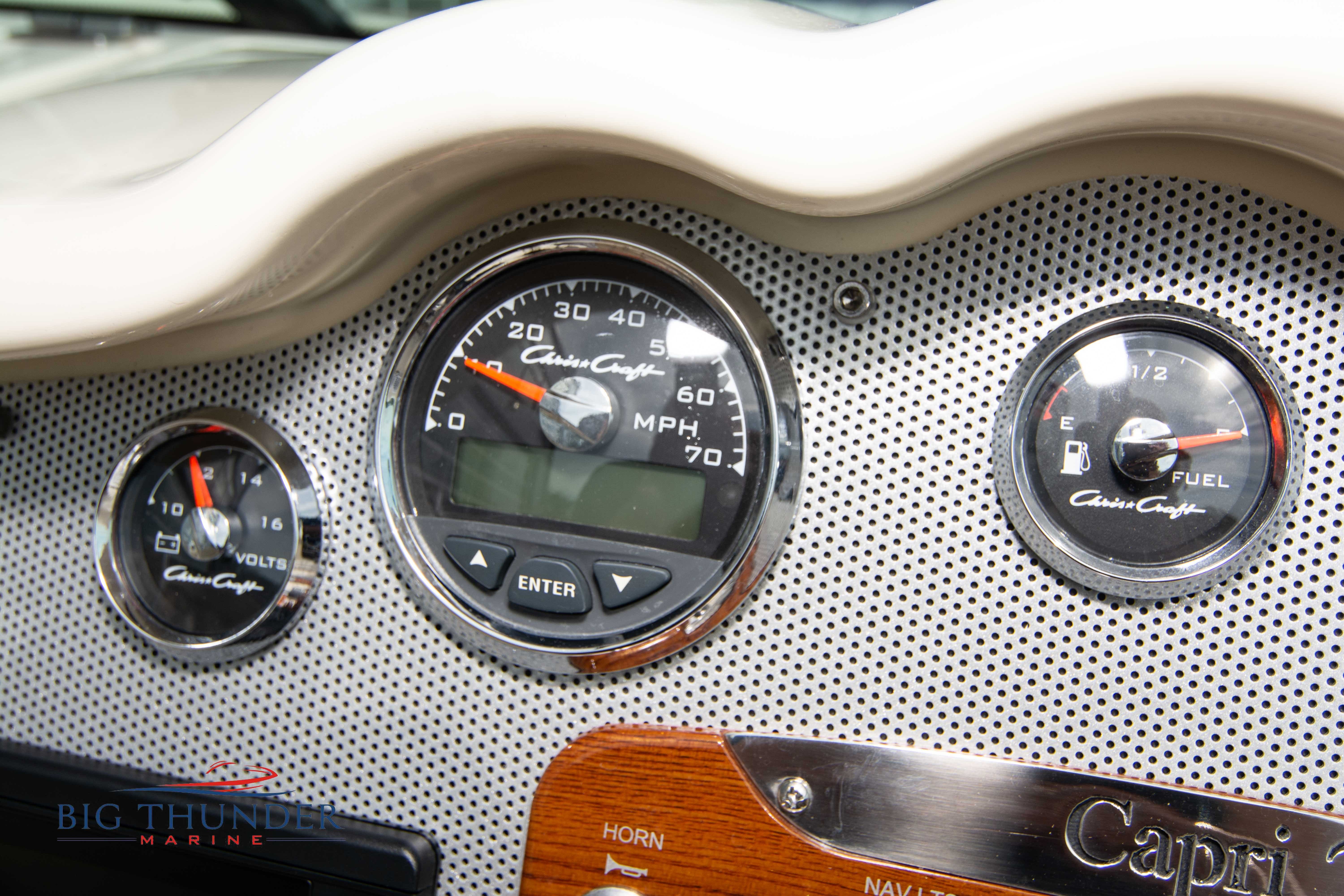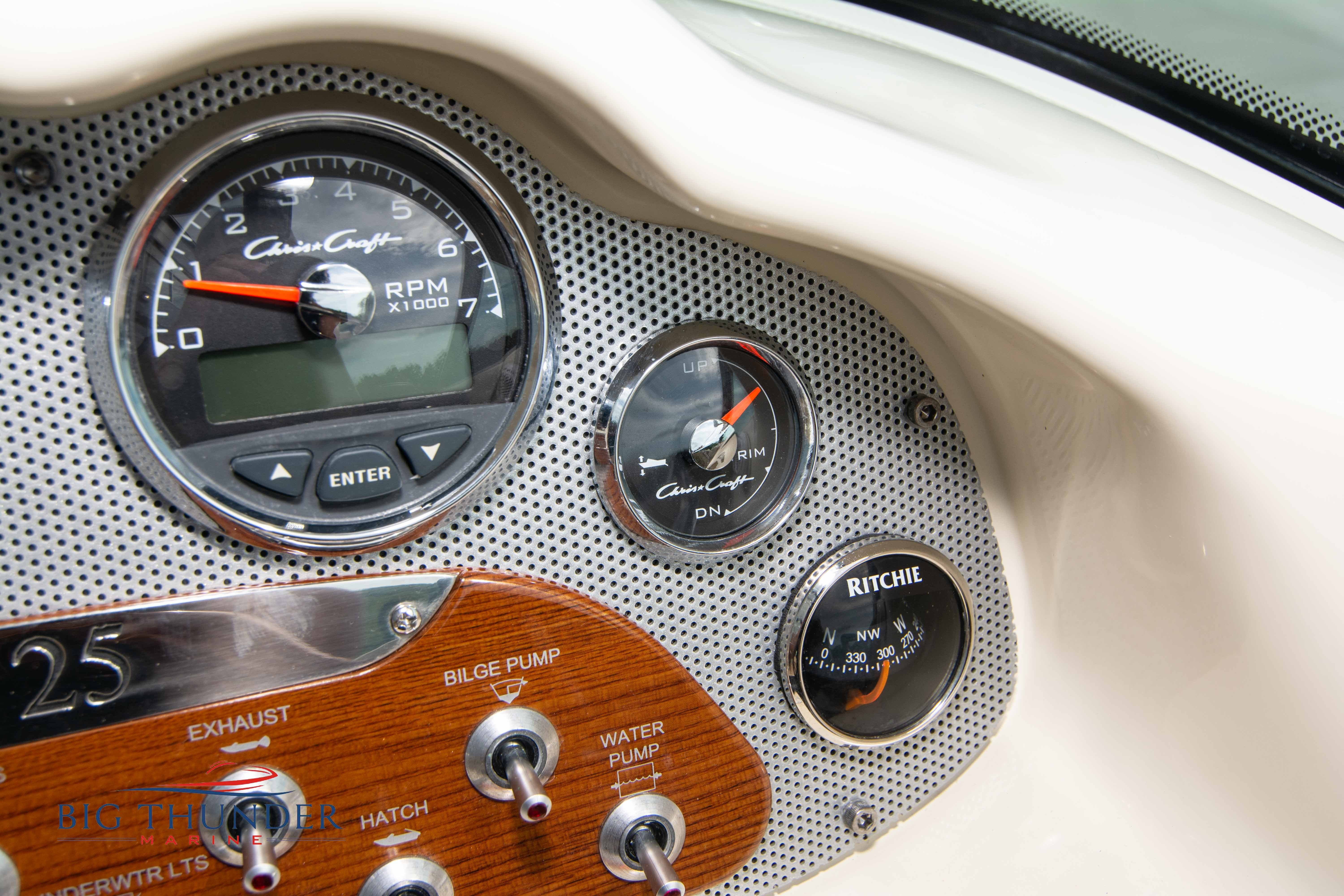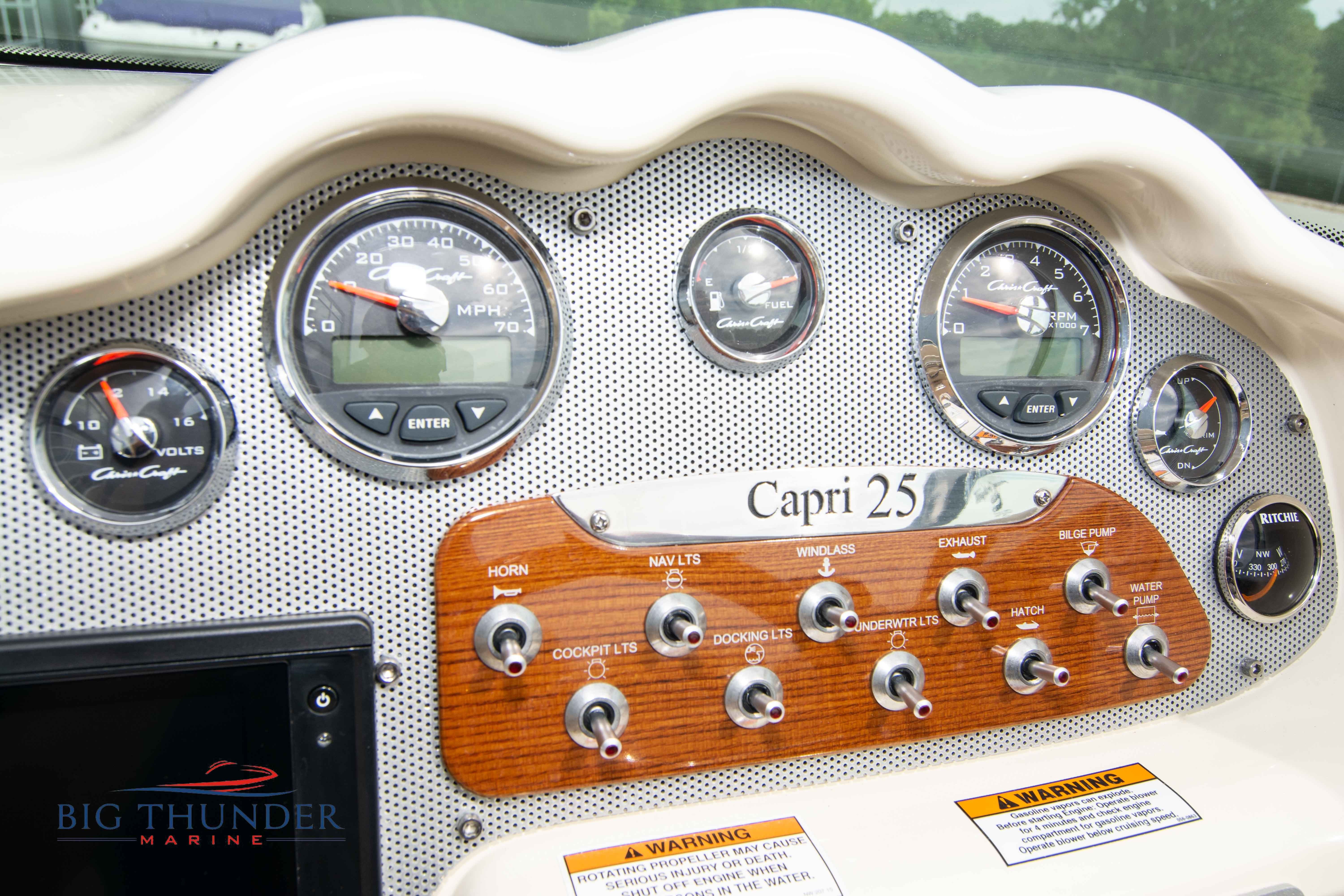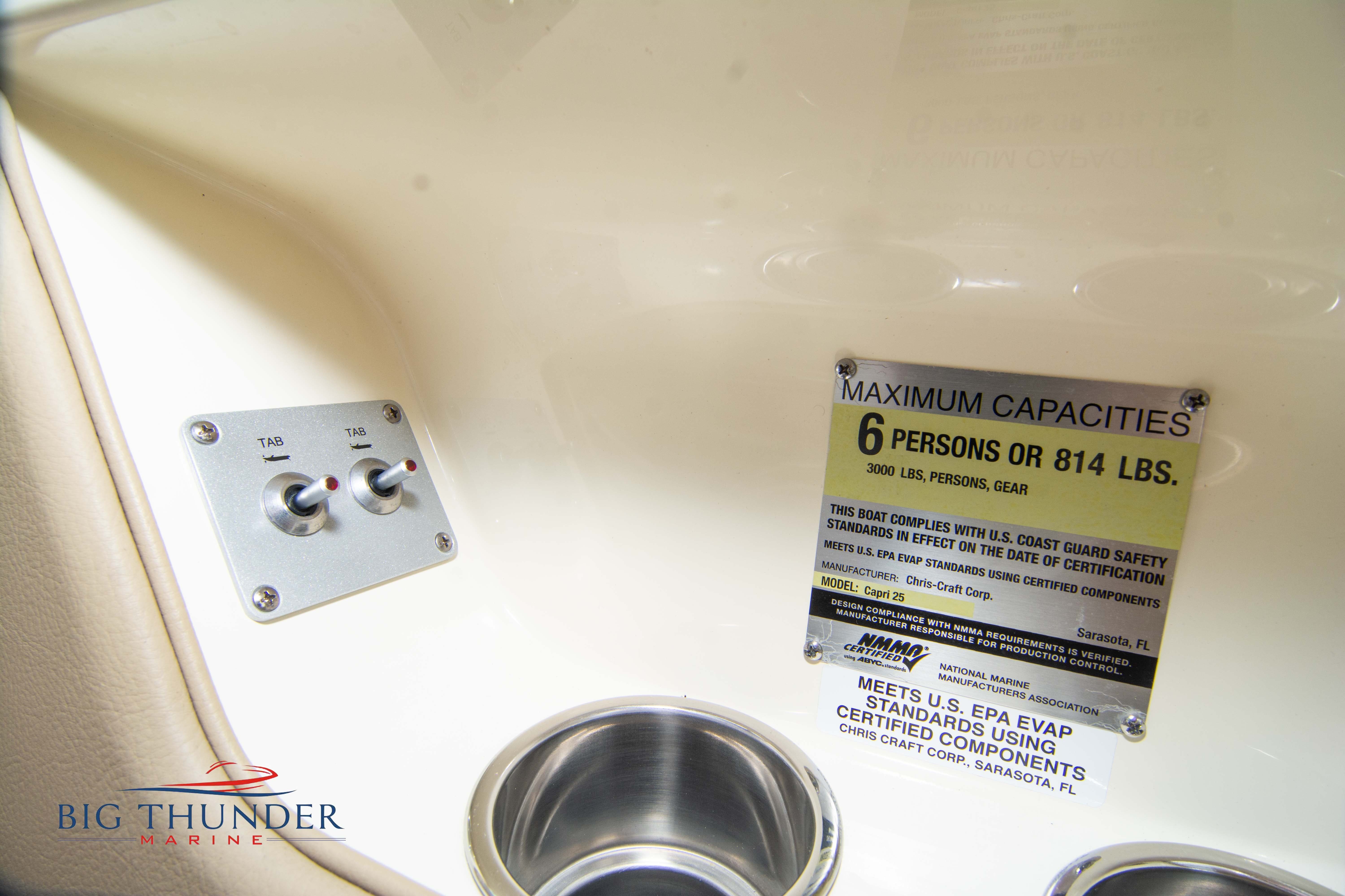 2017 Chris Craft 25 Capri Like new, low hour pre-owned in immaculate shape. A modern take on a classic vertical bow design, with bow cuddy cabin and loaded with luxury amenities. Some of the many features on this model include: