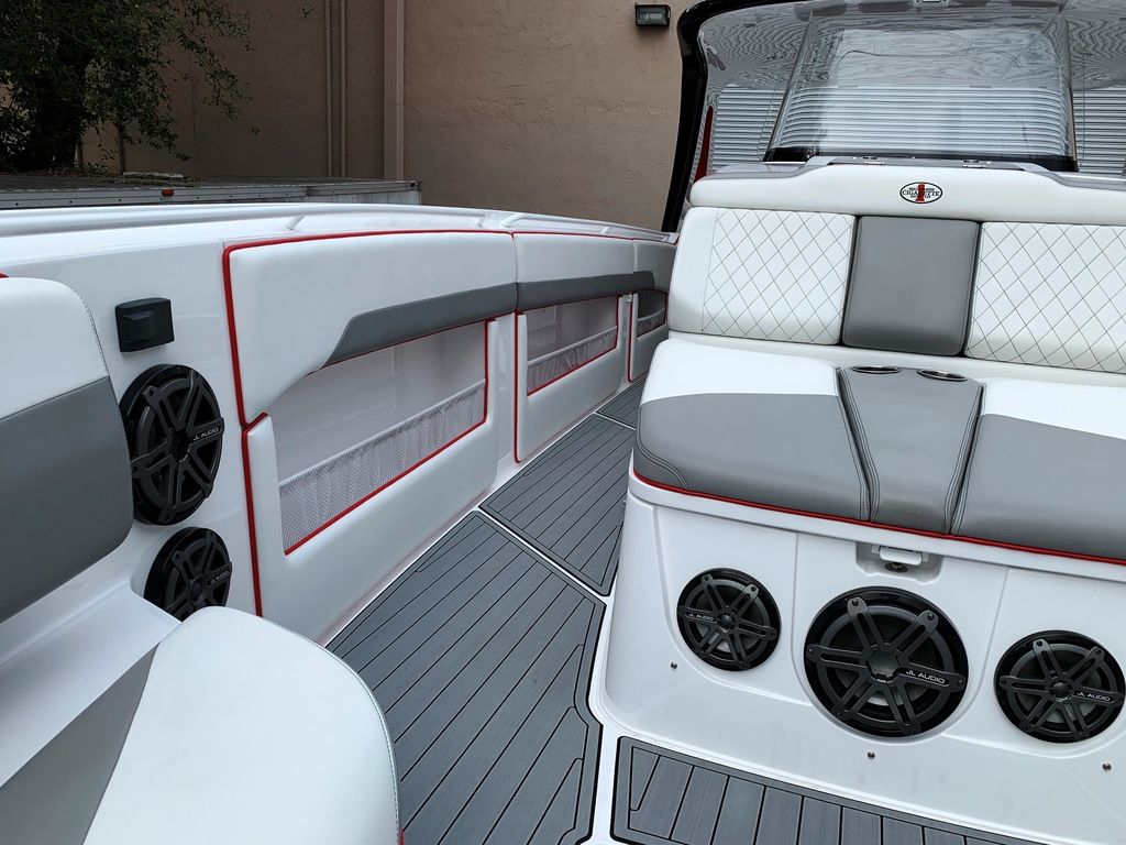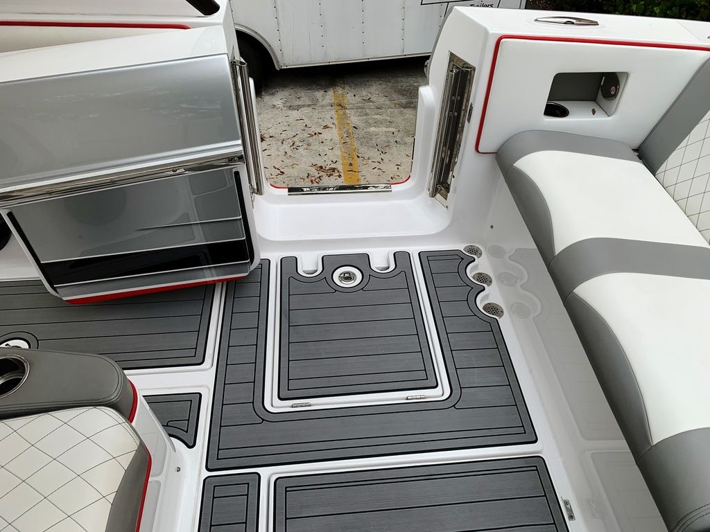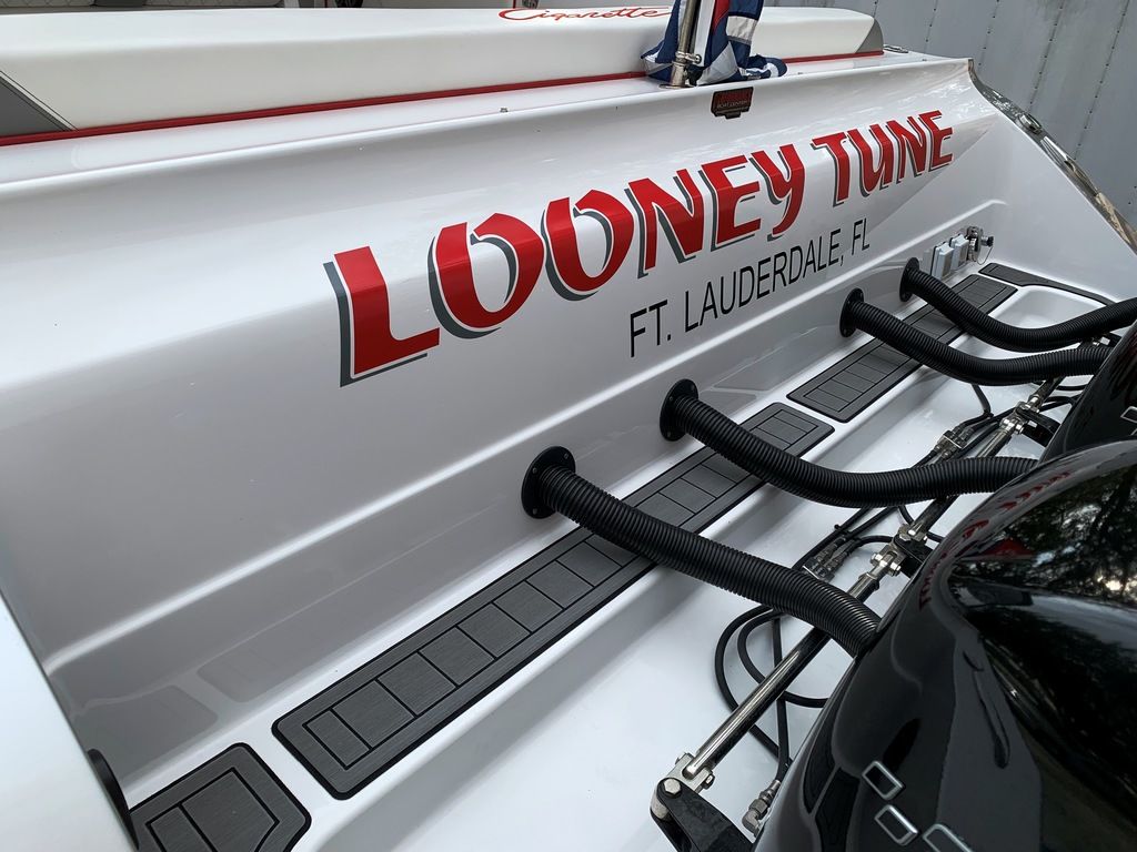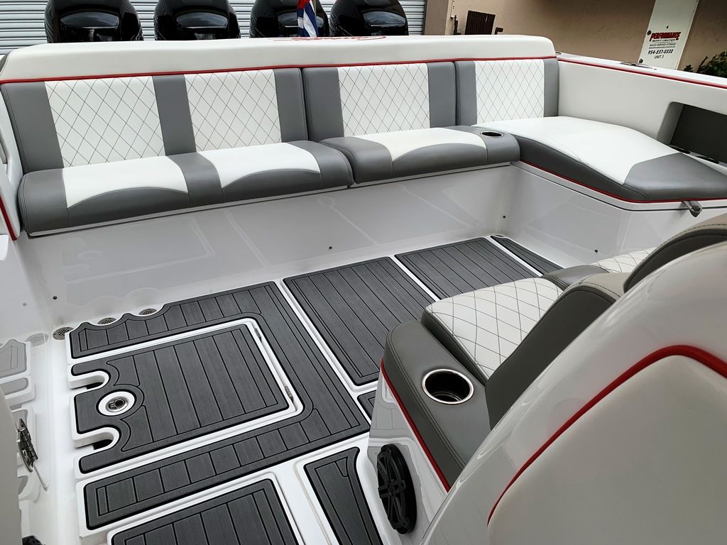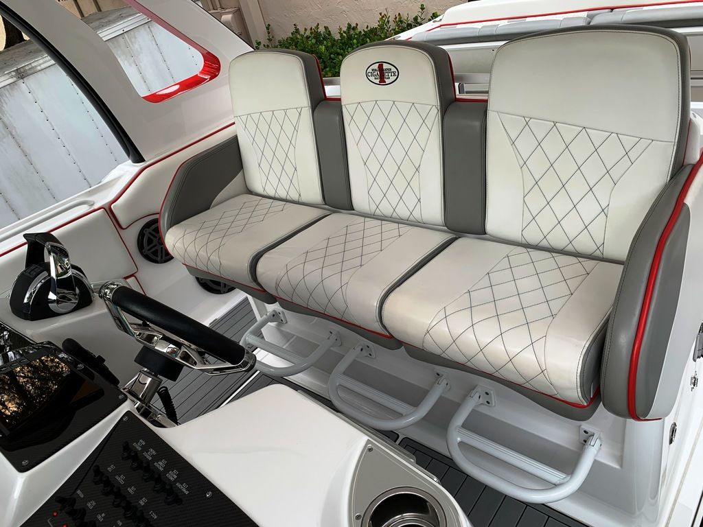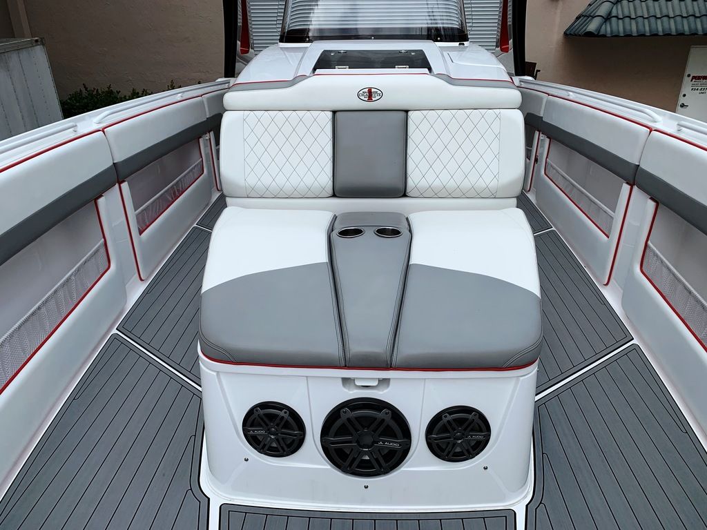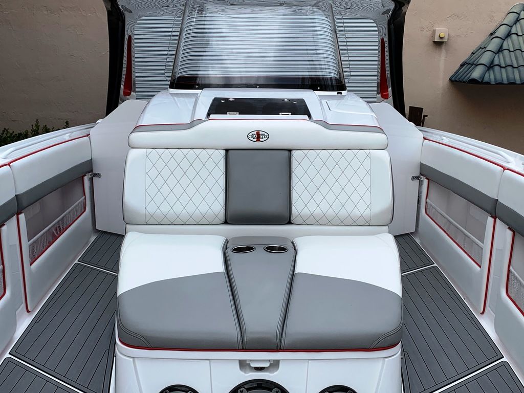 CIGARETTE 180° PANORAMIC HARDTOP, STARBOARD SIDE DIVE DOOR WITH SAFETY LATCH AND RETRACTABLE STAINLESS STEEL HANDLES AND LADDER, (1) 15” HIGH DEFINITION TOUCH SCREEN GARMIN 8215, (2) 12” HIGH DEFINITION TOUCH SCREEN GARMIN 8212 , GARMIN HIGH DEFINITION DEPTH FINDER, GARMIN VHF 300 RADIO WITH REMOTE HANDSET, 7” MERCURY MARINE VESSELVIEW FOR ENGINE INFORMATION AND DIAGNOSTICS, PREMIUM AUDIO SYSTEM BY JL AUDIO, BLUETOOTH WITH GARMIN INTERFACE, (12) DYNAMIC AMBIENT MOOD LIGHTS IN COCKPIT AND HARDTOP, (4) UNDERWATER LED LIGHTS, DASH CONTROLLED BATTERY SWITCHES, CARBON FIBER DASH PANELS, FORWARD CIRCULAR SEATING WITH UNDER-SEAT STORAGE, OVERSIZED FORWARD FACING SUN LOUNGE, HELM SEAT WITH INDIVIDUAL FOOTRESTS & REAR FACING SEATS WITH BUILT IN INSULATED COOLER, MULTI-PASSENGER AFT TRANSOM SEATING, BESPOKE DIAMOND PATTERN STITCHING, CNC MACHINED BILLET GLOVE BOX, CNC MACHINED BILLET TRIM, FRESHWATER TRANSOM SHOWER, CUP HOLDERS THROUGHOUT, GRAB BARS THROUGHOUT, POWDER COATED GRAB RAILS, AIRCRAFT GRADE HARD COATED WINDSHIELD, STAINLESS STEEL DECK HARDWARE, (2) DISTRIBUTED ON DEMAND BATTERY CHARGERS, MERCURY MARINE PUSH BUTTON START, 30 AMP SHORE POWER INLET, GENERATOR AND A/C. PAINT BY PERFORMANCE BOAT CENTER.