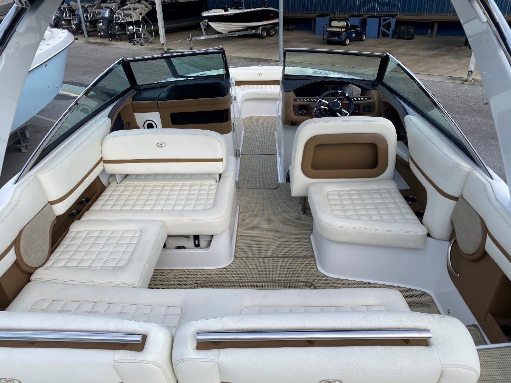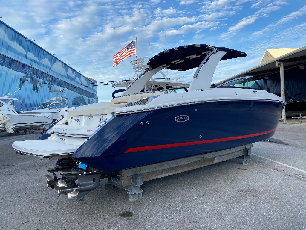 Check out this beautiful dry stored since ordered 2017 Cobalt R30 equipped with twin Volvo V8 380 HP engines with Ocean X Drives and only 144 hours on them! This boat was custom ordered and is loaded with upgrades such as the Volvo Joystick Controls, Stainless Steel Arch and Hydraulic Swim Platform! It has boat and engine warranty transferable till February 5th 2022!