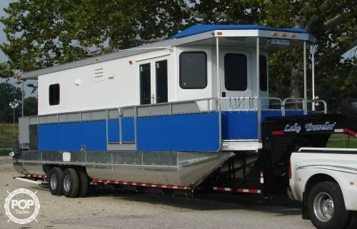 New tritoon houseboat, unique hydraulic trailer, NO SPECIAL PERMITS NEEDED, two brand new Yamaha motors with warranty!