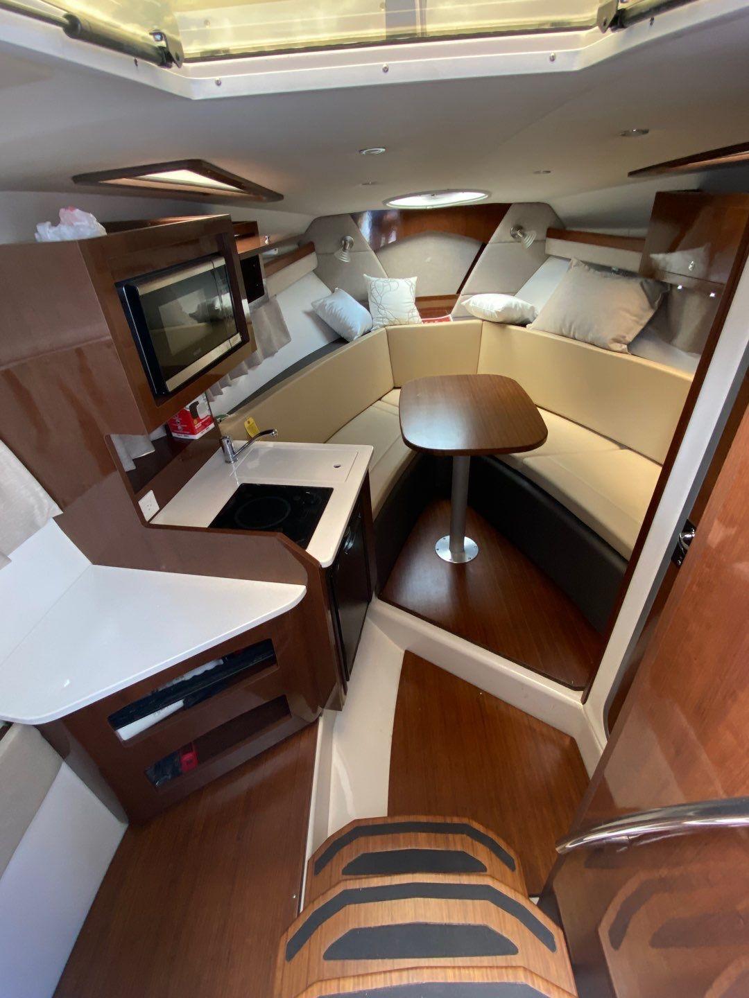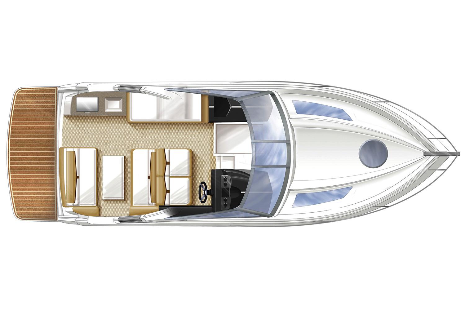 The Vista 275 is a 28-foot express cruiser with finesse and luxury to spare. It has features that ensure comfortable excursions and gracious all day entertaining, from a cockpit galley, port lounge and dinette to bench seating that converts to a sun lounge.