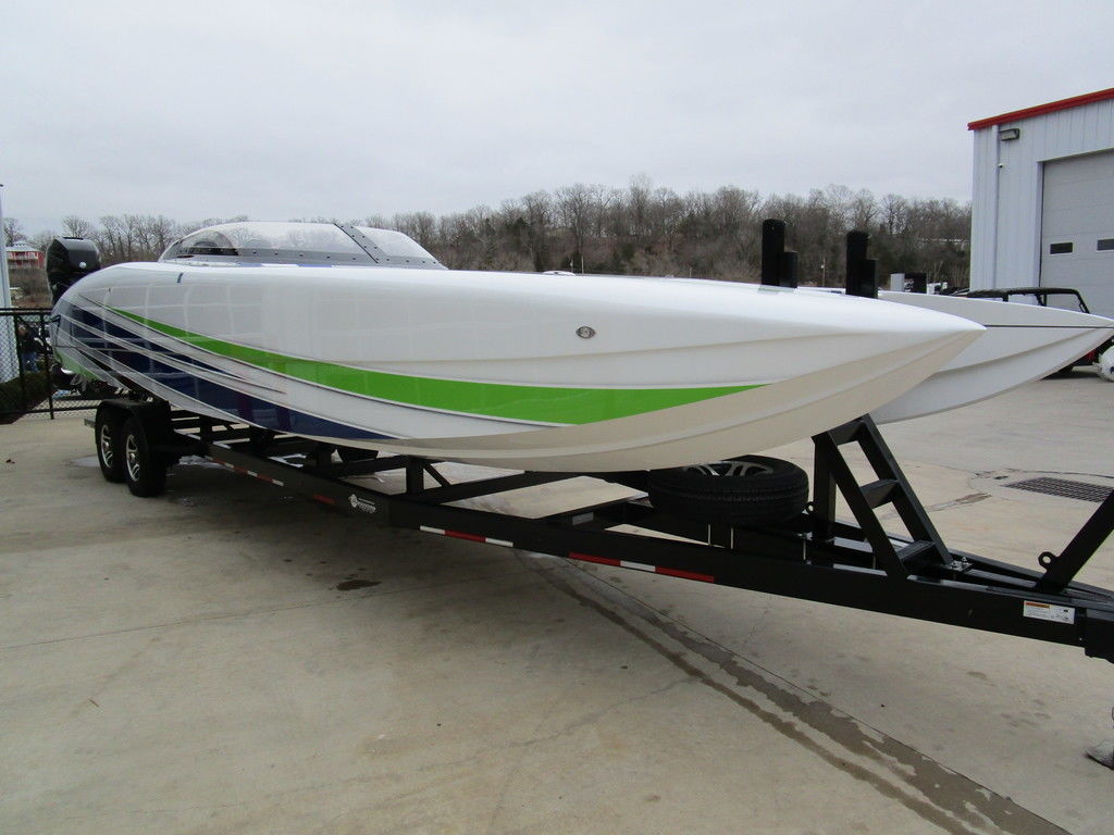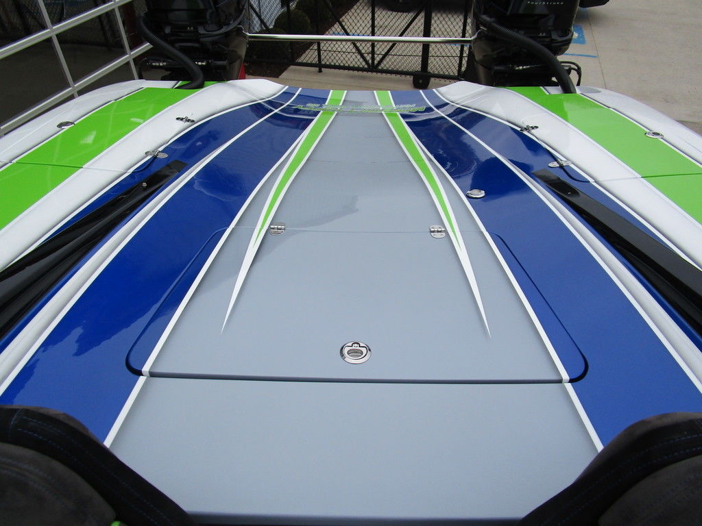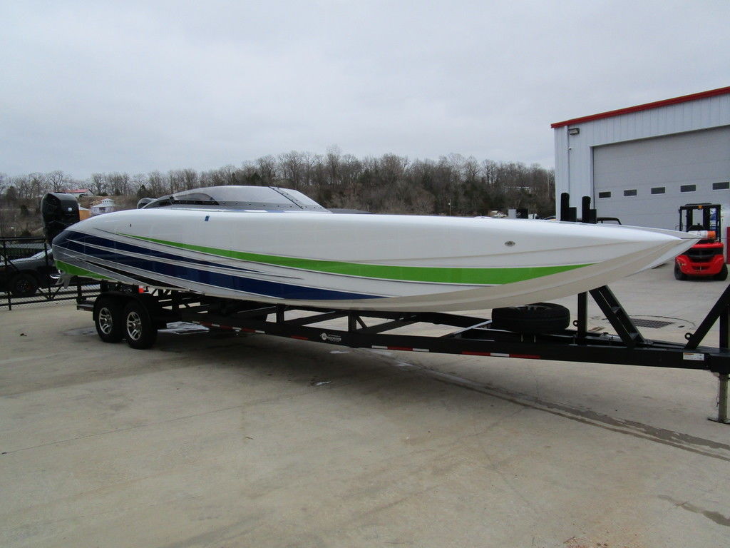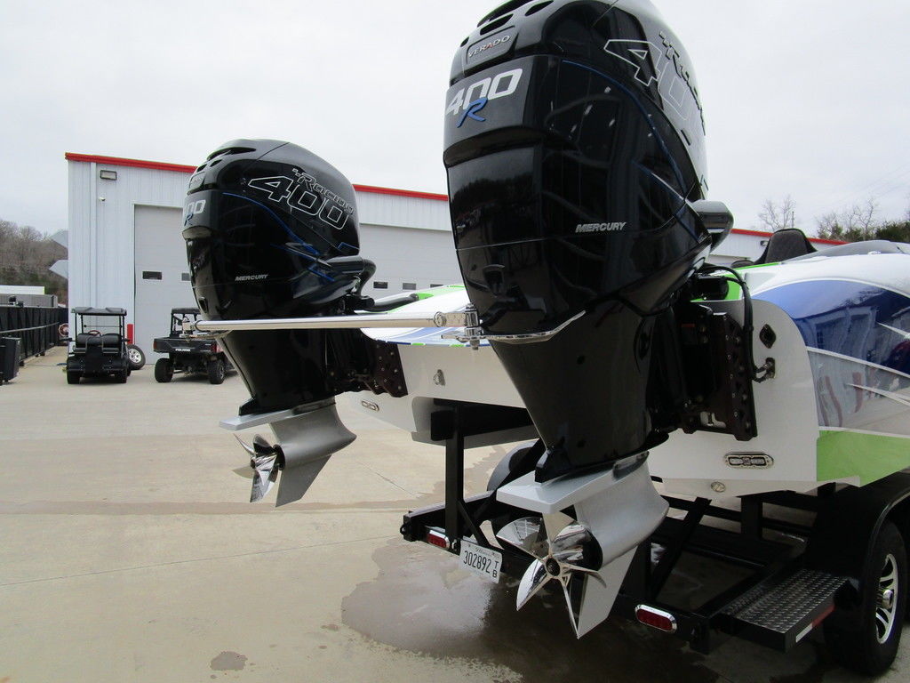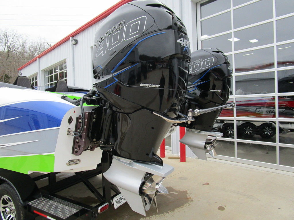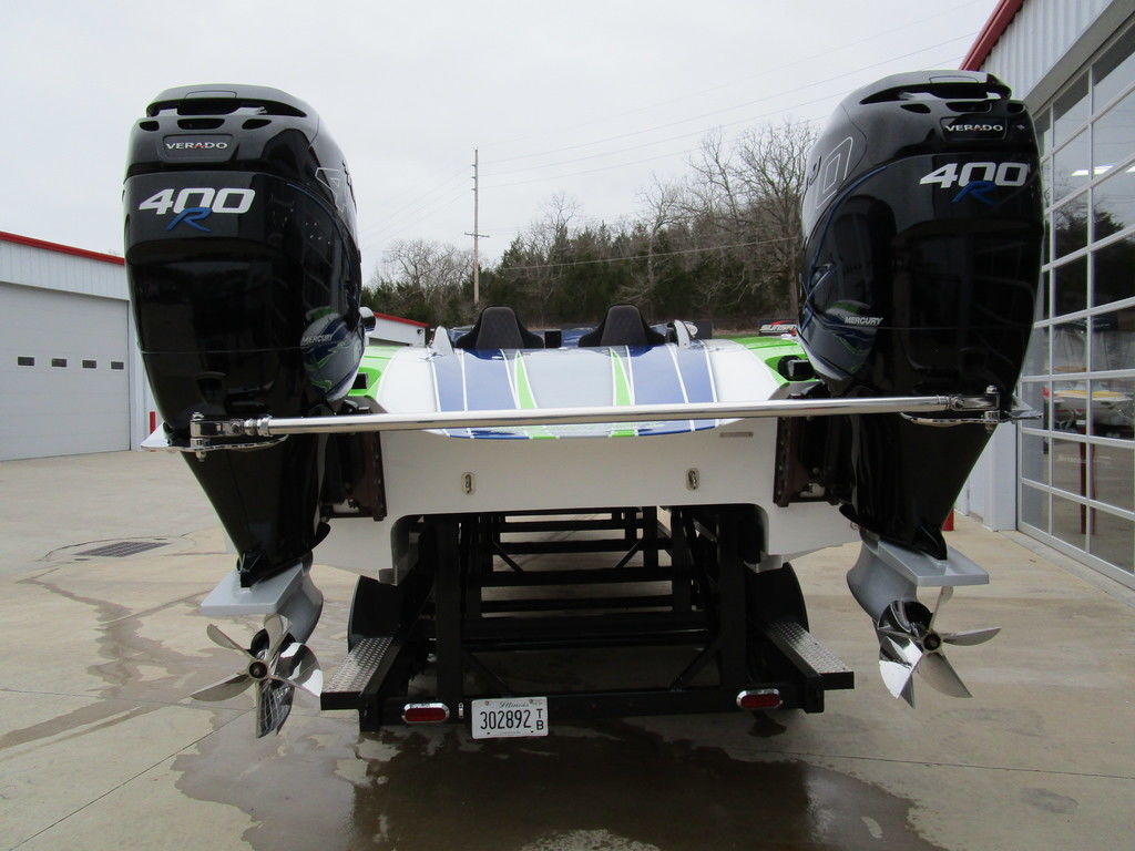 2017 Doug Wright 32 powered by twin Mercury Racing 400R Verado with 43 hours, Mercury 15x35 cleaver props, underwater LED lights, DTS controls, Garmin 7612 touchscreen GPS chartplotter, Vessel view, Fusion stereo, electric battery switches on dash, Isotta steering wheel with tilt helm, Sea Deck flooring, cockpit cover, and Manning tandem axle trailer included. Trades considered, financing and transportation available.