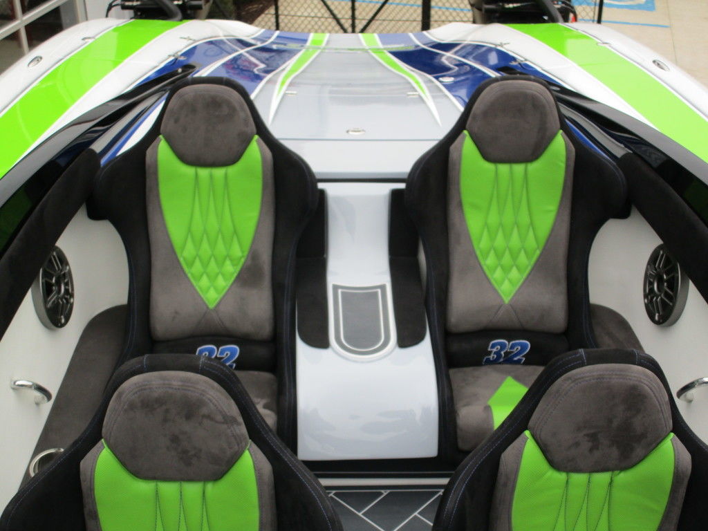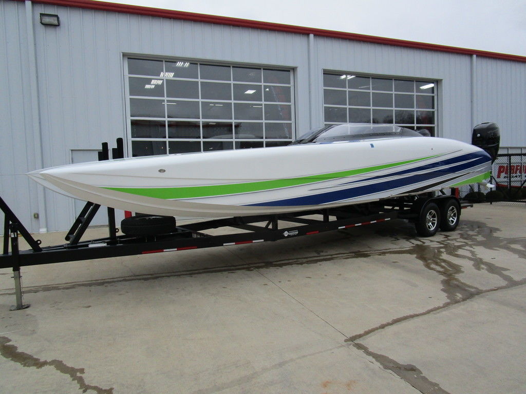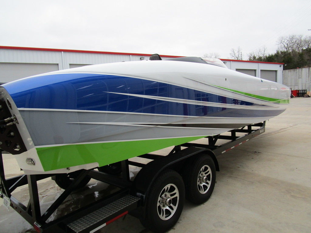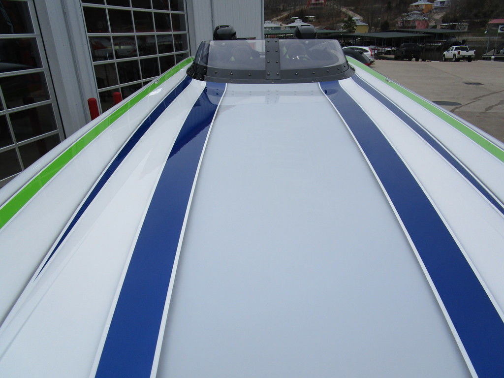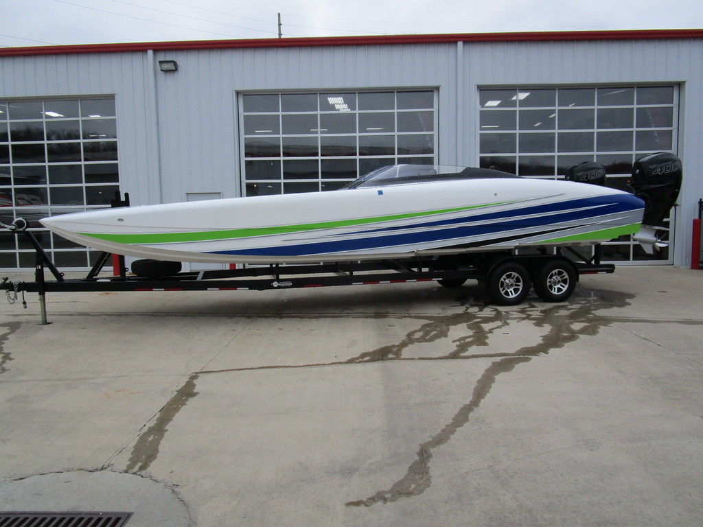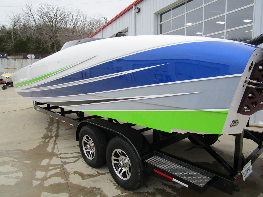 2017 Doug Wright 32 powered by twin Mercury Racing 400R Verado with 43 hours, Mercury 15x35 cleaver props, underwater LED lights, DTS controls, Garmin 7612 touchscreen GPS chartplotter, Vessel view, Fusion stereo, electric battery switches on dash, Isotta steering wheel with tilt helm, Sea Deck flooring, cockpit cover, and Manning tandem axle trailer included. Trades considered, financing and transportation available.
