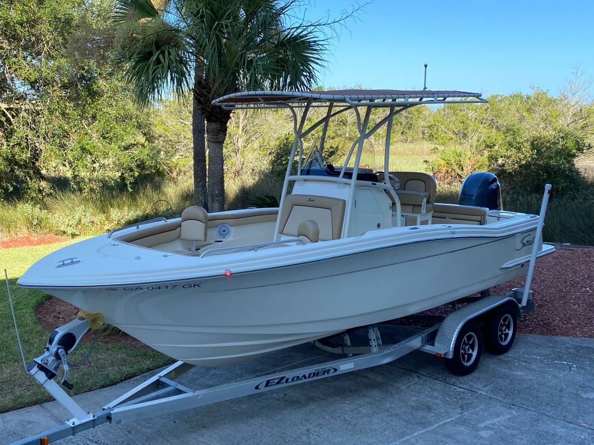 Loaded 2017 Scout 215 XSF with Yamaha F200XB and MagicTilt Trailer.