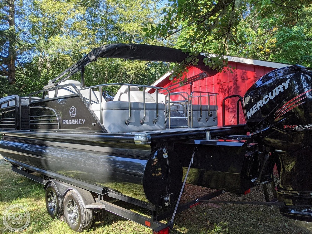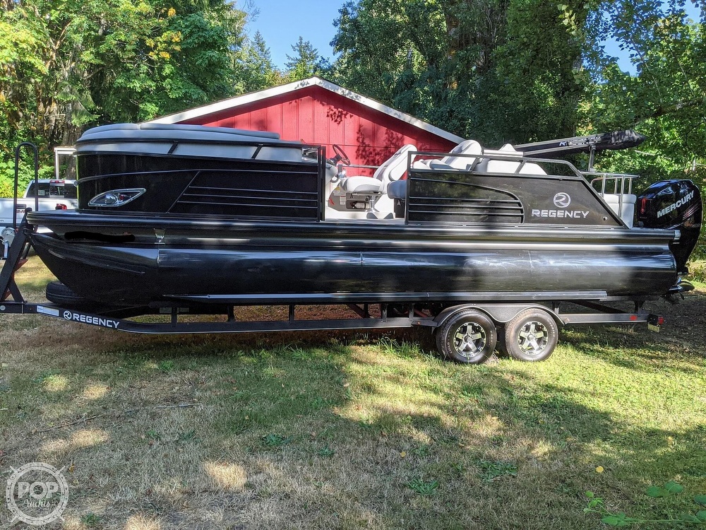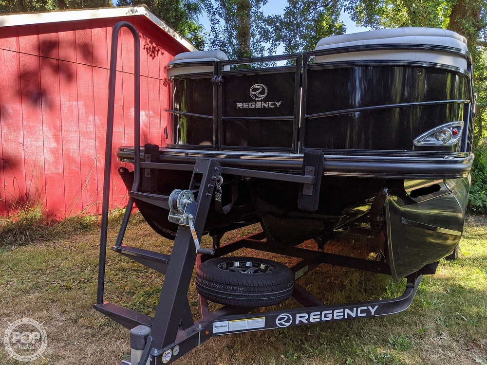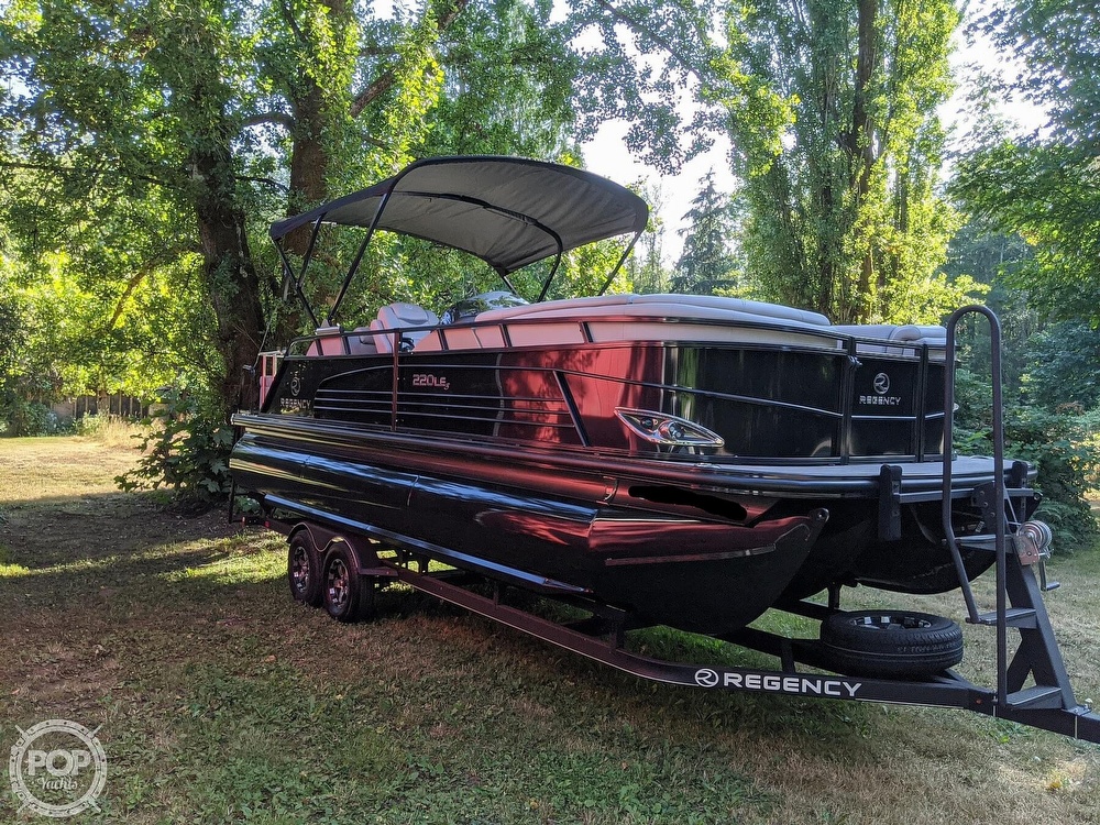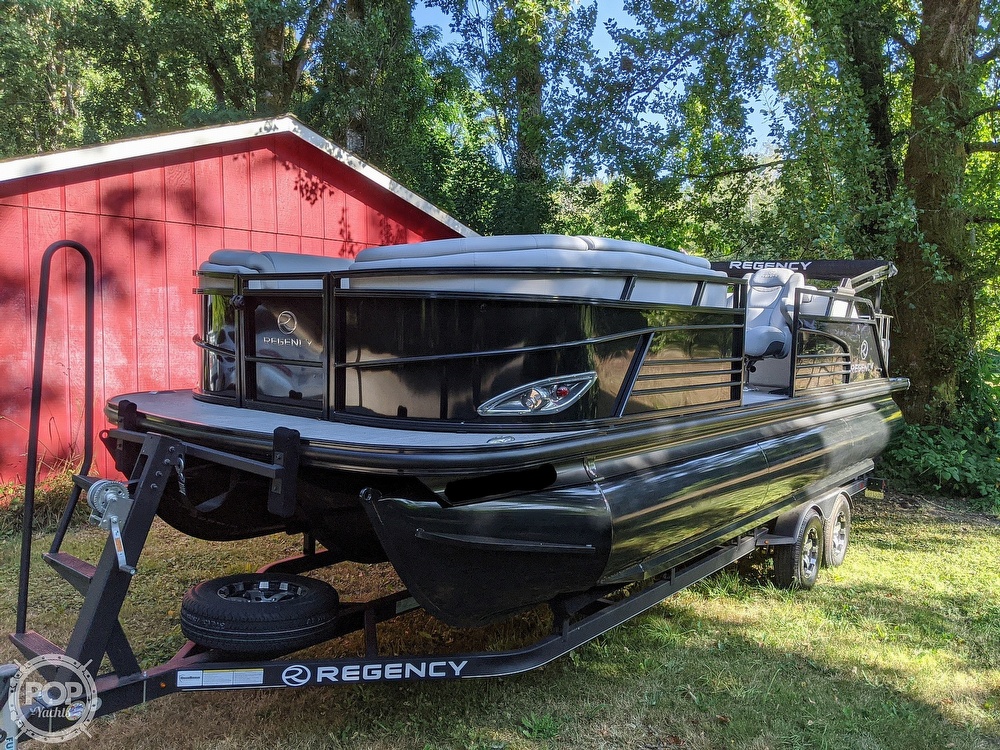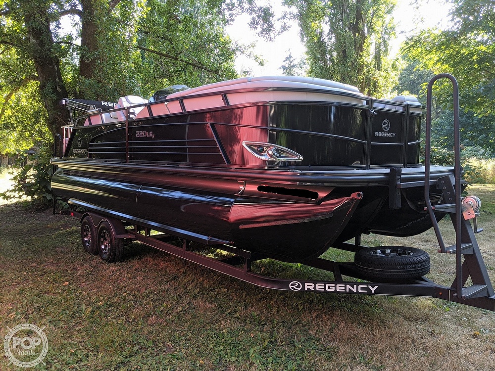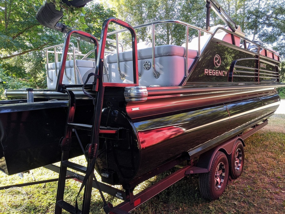 Under Warranty, 2017 Tracker Marine Regency 220 LE3 Sport Tritoon Platform boat.