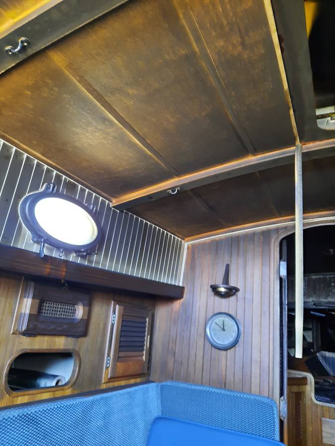 In time of purchase (September 2015) the hull was completely empty with only interior completed. Since its manufacturing in 1976, the hull had been staying 39 years on a cradle on dry boatyard in Costa Mesa under a shelter. Because being sheltered, there was no any damage from sun or rain. I found the hull conditions excellent. The boat has NEVER been on the water until August 2018 when rest of the work has been done and I put her on the water in Long Beach, CA. That is the reason why I advertised the boat as completed in 2018. I included a few pictures from that time
