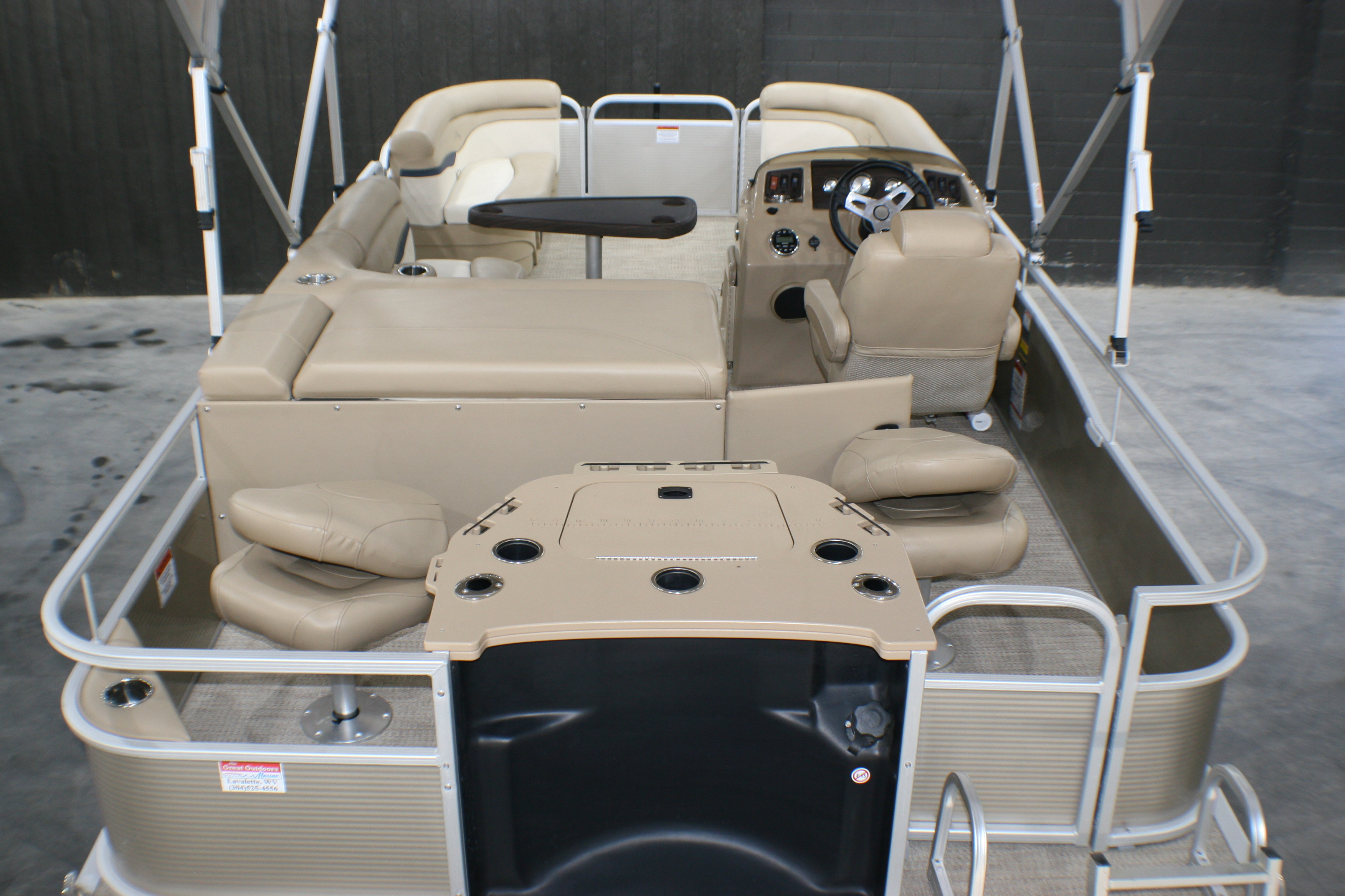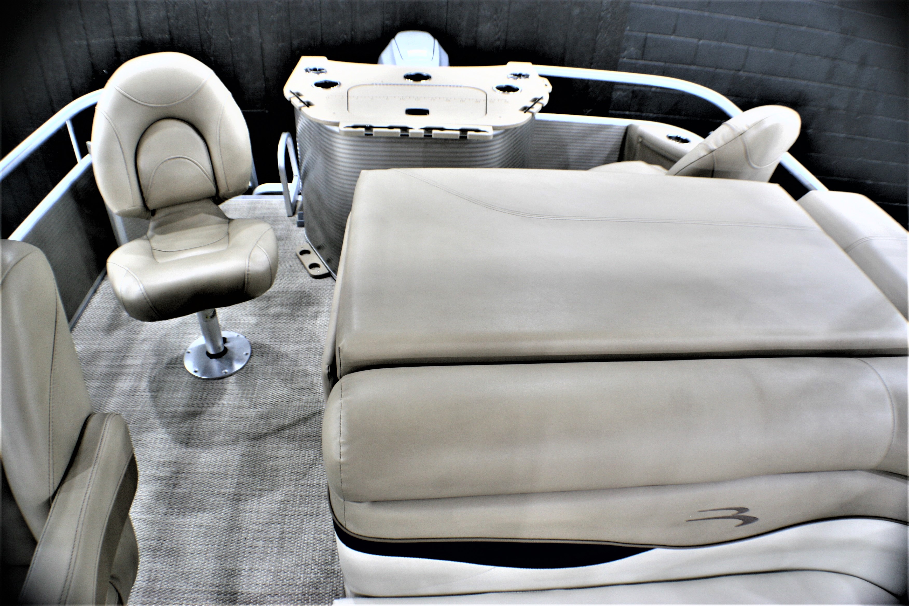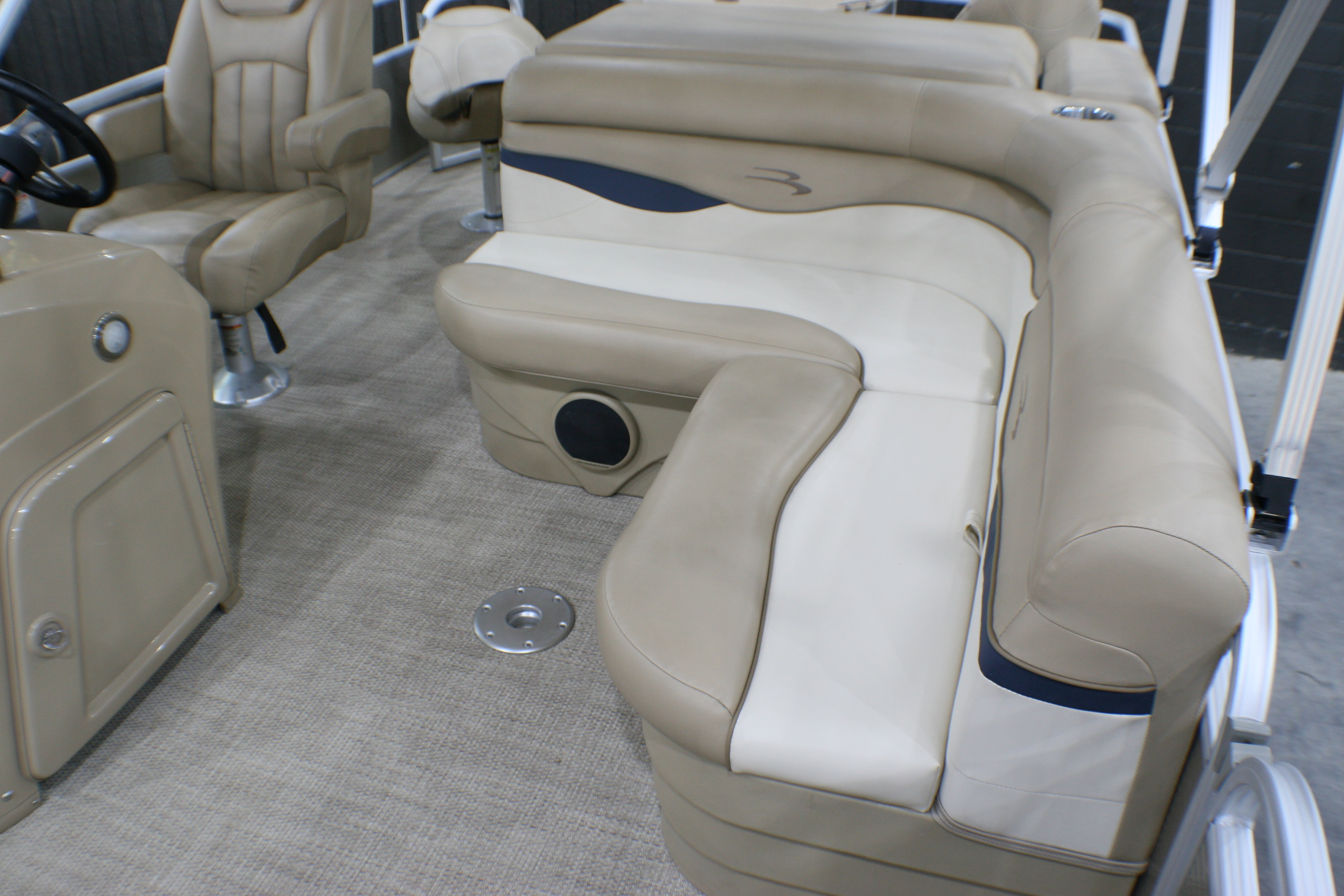 This Bennington 20SS is a luxurious hybrid pontoon boat that gives you plenty of reasons to spend time aboard. Mating a luxury boat's “ooh-lala” with a floor plan that accommodates fishing, creates the best of both worlds! It sports some of the softest couches you've ever snoozed on. Two lounges permit comfortable socializing and there's an L-love seat in the middle to keep the boat captain a part of the party too. And I almost forgot, there’s a changing room.