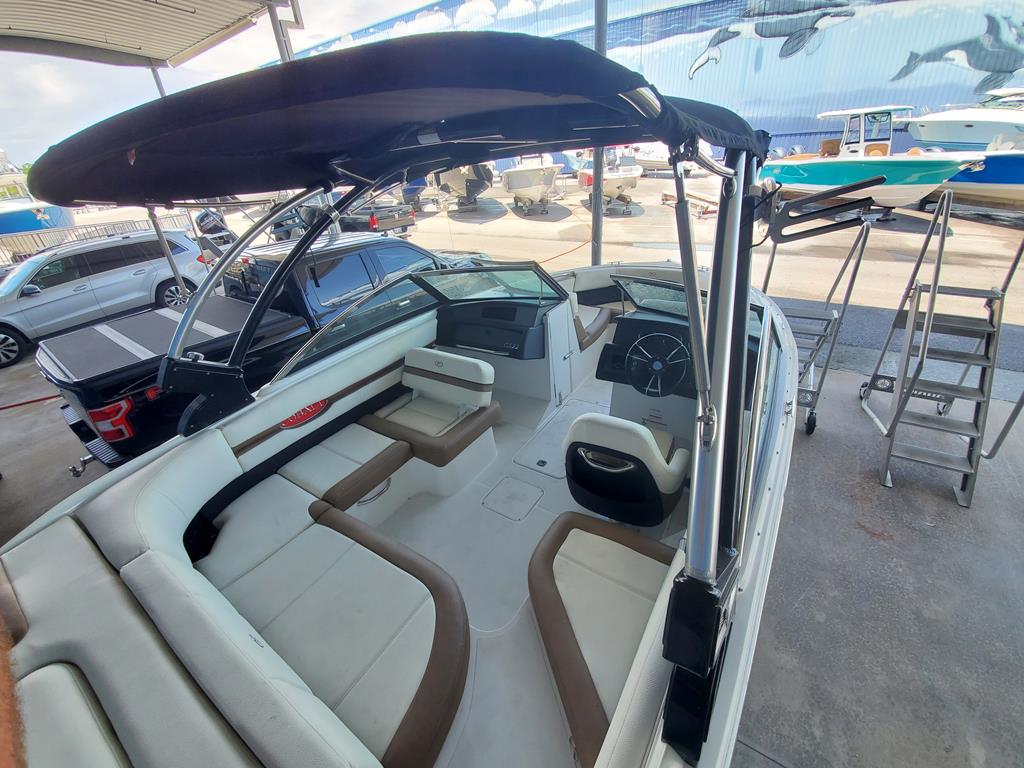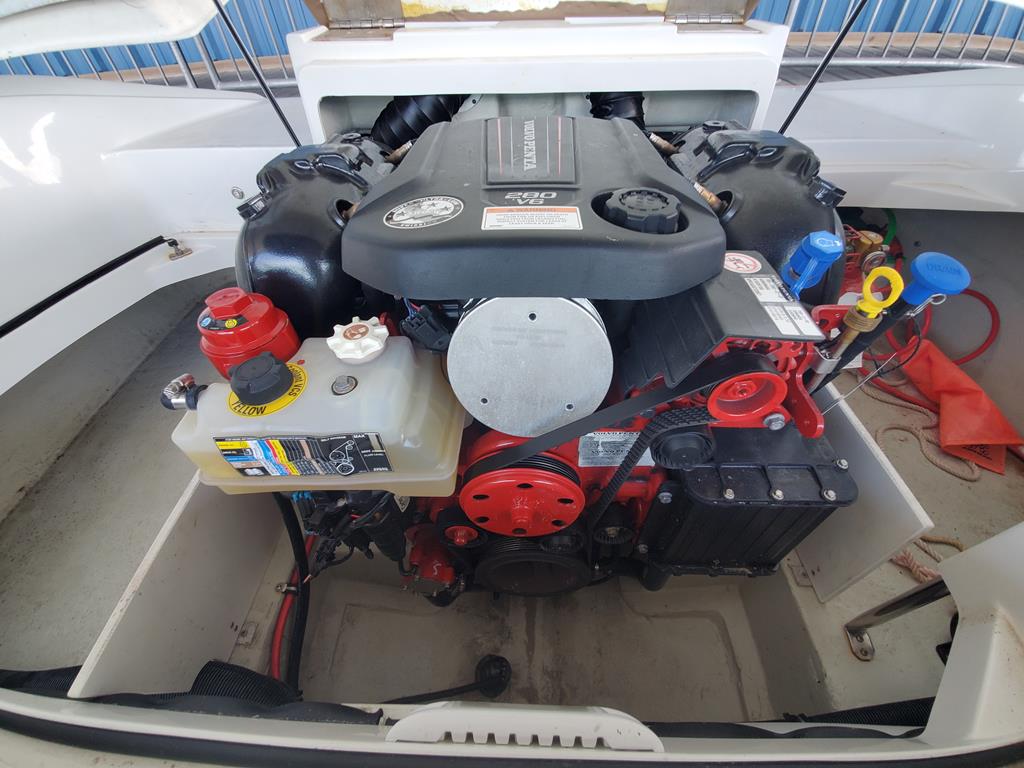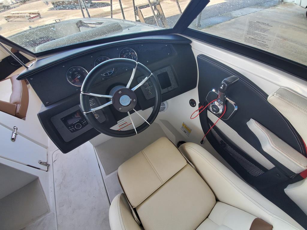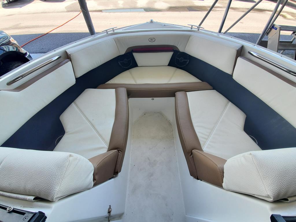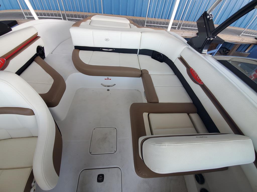 The Cobalt CS22 at over 22 feet is a model of efficient use of space. Inheriting the proven performance of the CS hull and graceful deck design, too. Sleek, simple and artful. Step inside and check out the detailed interior including the island sun lounge with a walk-thru transom, Cobalt-branded coaming pads, intricate colored stitching details, and digital helm instrumentation. Oh, and the Bluetooth sound system with six speakers yes, that too may cause your audiophile guests to awe in your direction. Compliments will keep coming as your crew marvels at her innovative qualities making you look savvy, smart. The CS22 is the perfect choice. A small boat for those who do not wish to compromise luxury or performance.