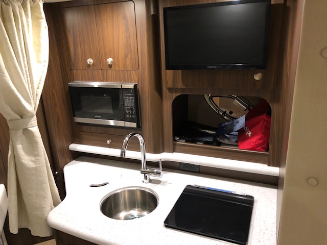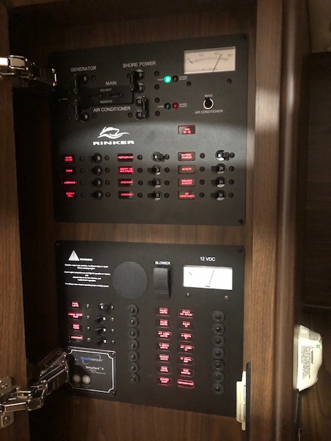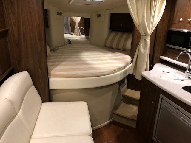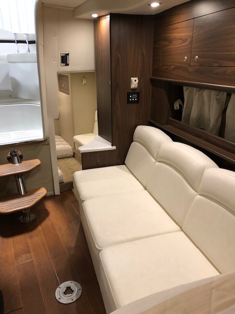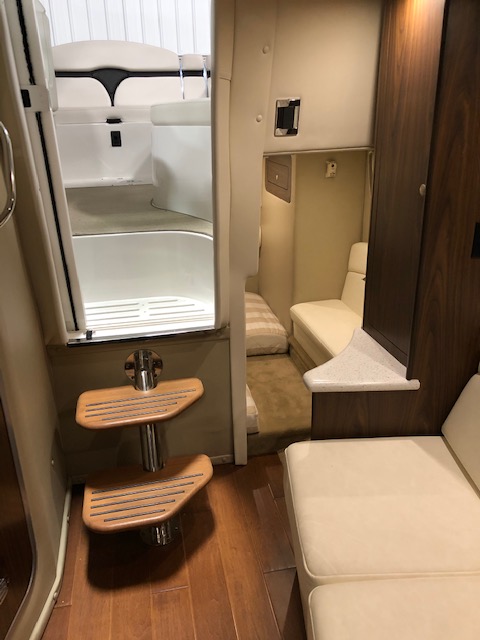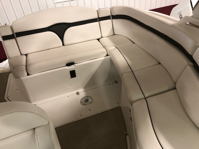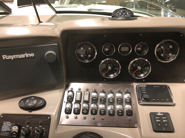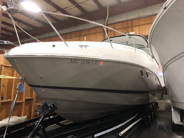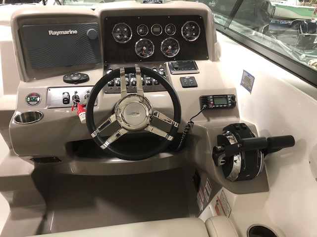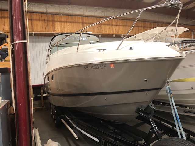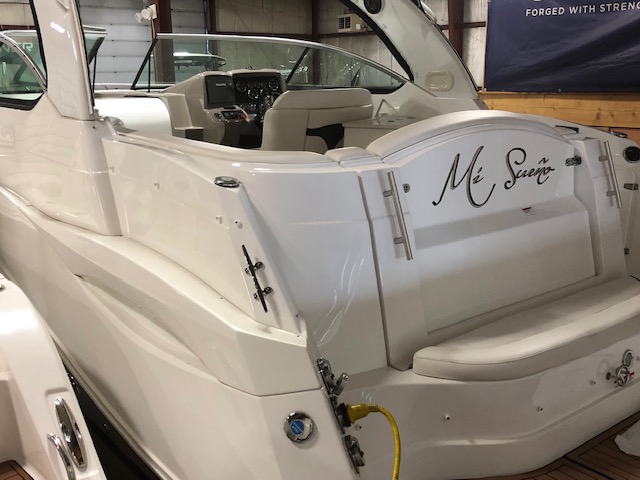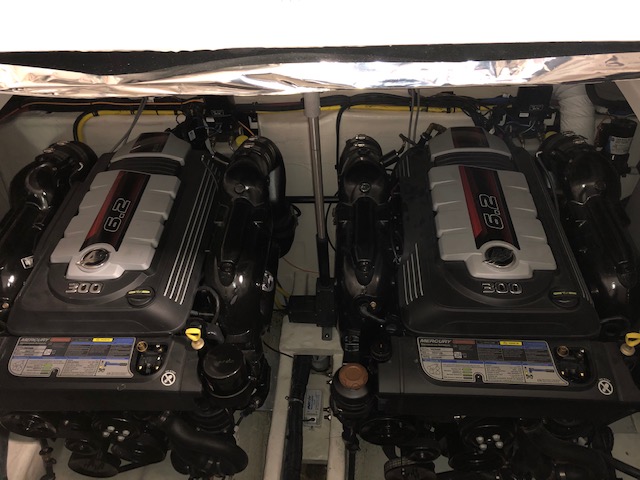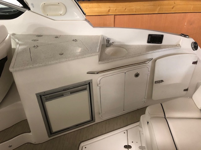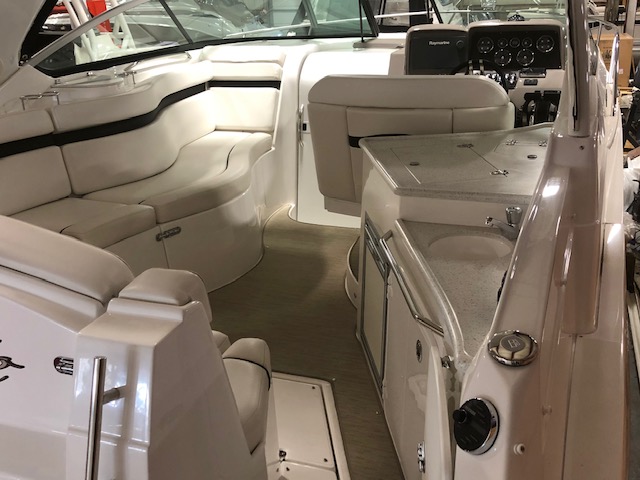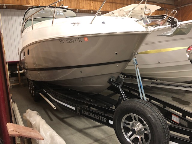 2018 Rinker 320EX with twin 6.2L 300hp Mercruiser and a 2019 Load Master triple axle trailer with spare. Manufacturer options include sandstone hull side, aluminum hardtop with lights and stereo upgrades, Tecma Easy porcelain head with holding tank, tan Marine Mat on swim platform, camper enclosure Contact Us with questions or to request more information.