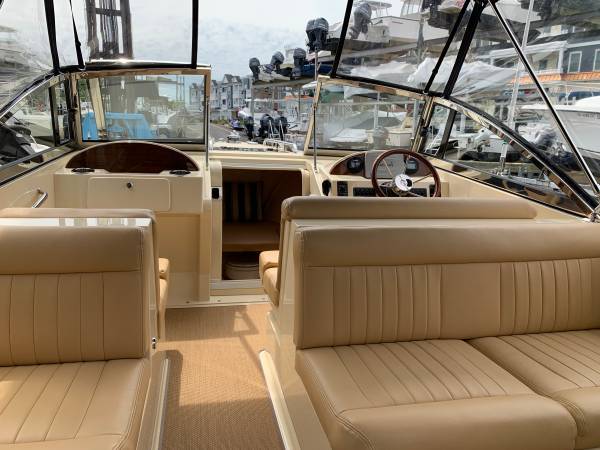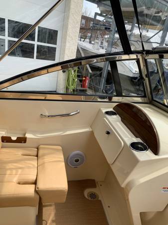 Dual batteries with switch Recessed Mooring Fender cleats Limited Lifetime Hull Warranty powered by Yamaha Garmin GPS Ship to shore radio Fusion Surround sound stereo Fully enclosed cabin to provide comfort and protection from the element.
