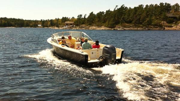 Features Quick to plane with little to no Bow Rise Comfortable seating for up to 10 passengers Unsinkable Self bailing cockpit Solid Fiberglass Hull, Stringer Grid DeckLiner - No structural wood in boat.