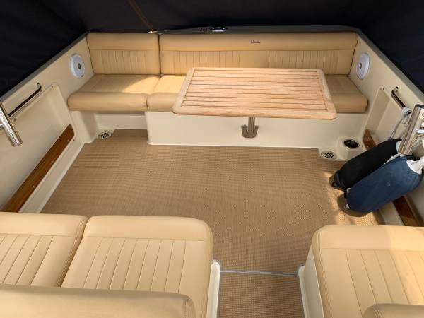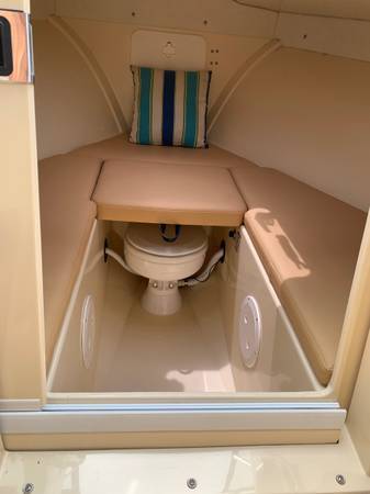 Stainless Steel Fittings Roomy Plumbed Head below deck with holding tank Fresh water wash-down at transom Large swim platform with deep 4 rung boarding ladder.