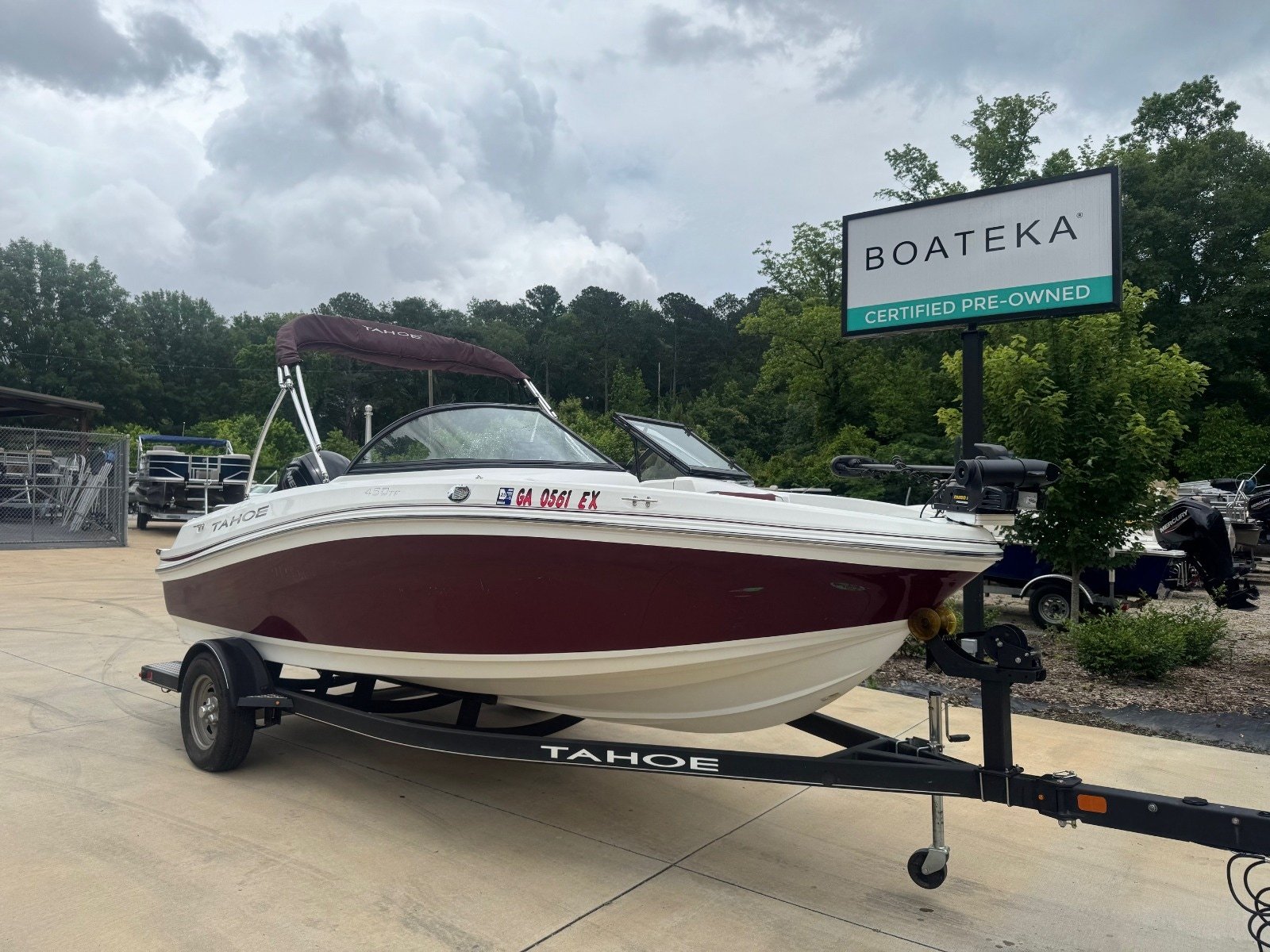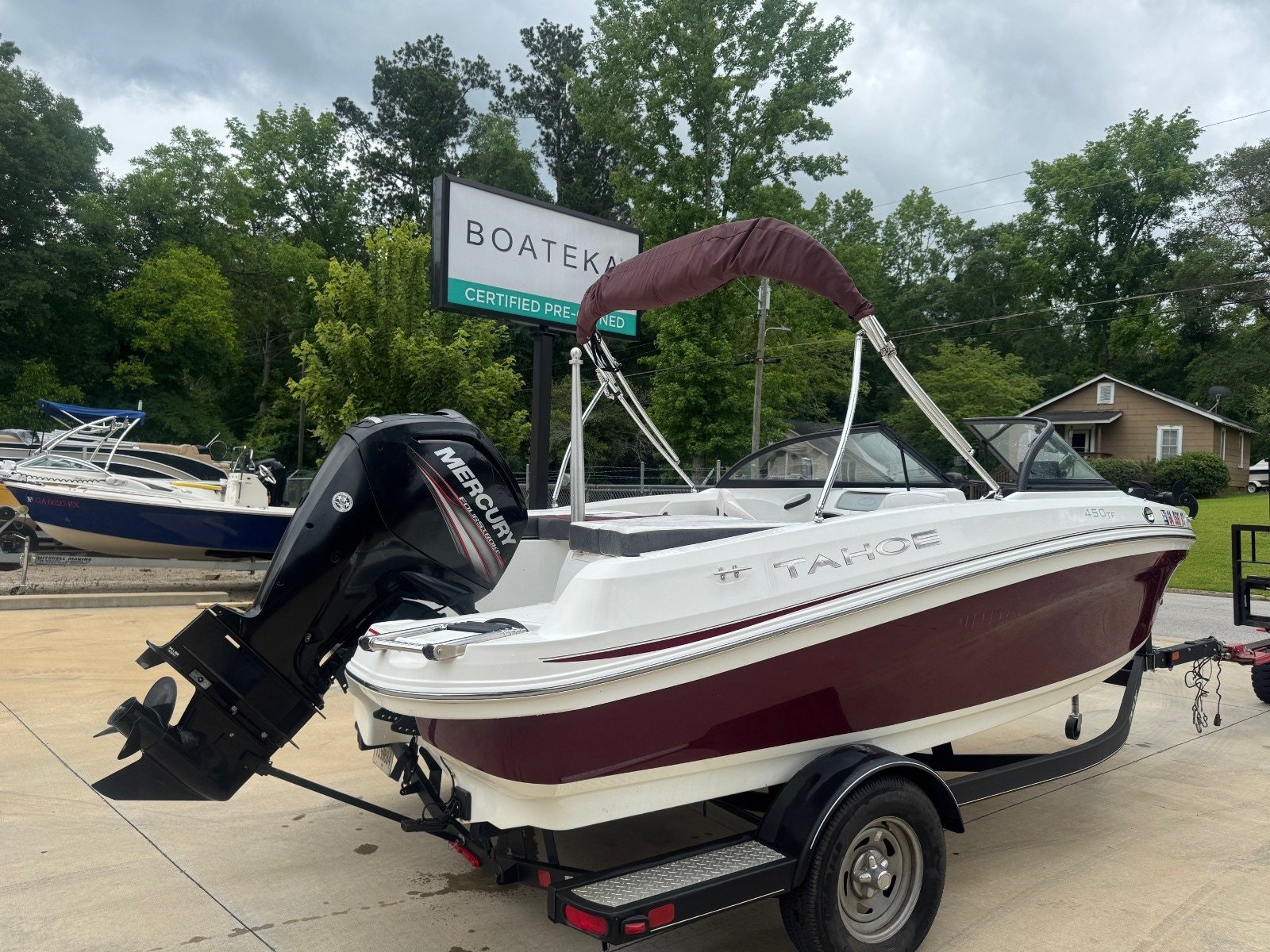 Now Available! This 2018 Tahoe 450 TF is a great family boat that has all the bells and whistles! Trolling motor, ski-tow pole, garmin Depth Finder, Mooring cover and more! Trailer included in price!