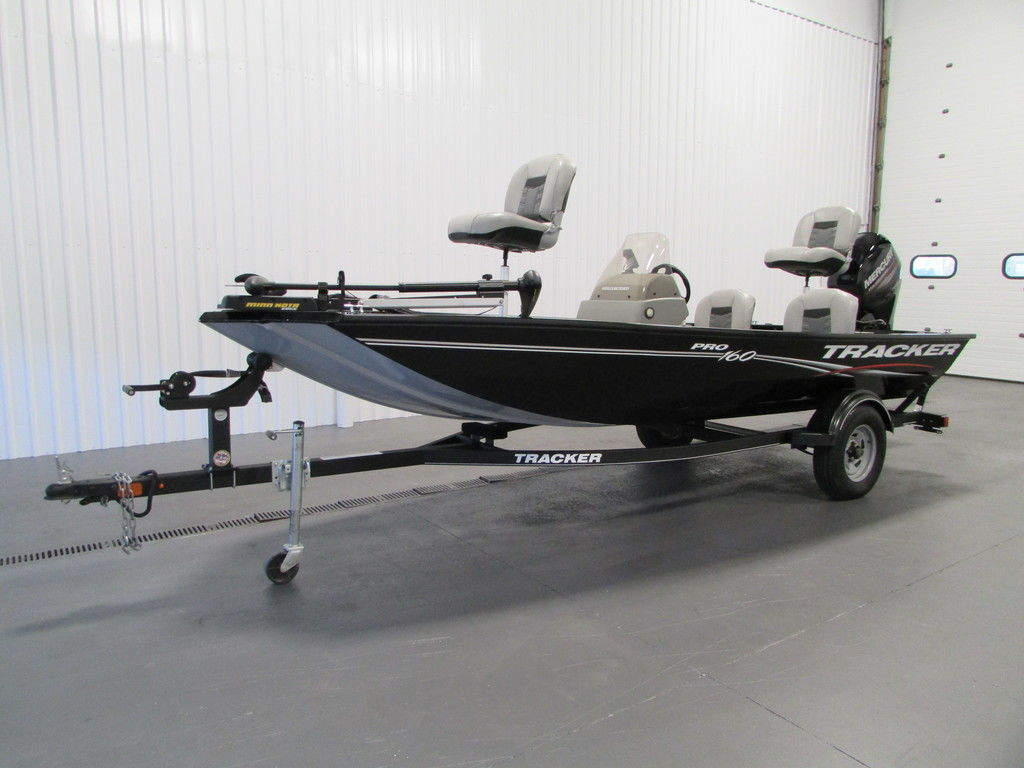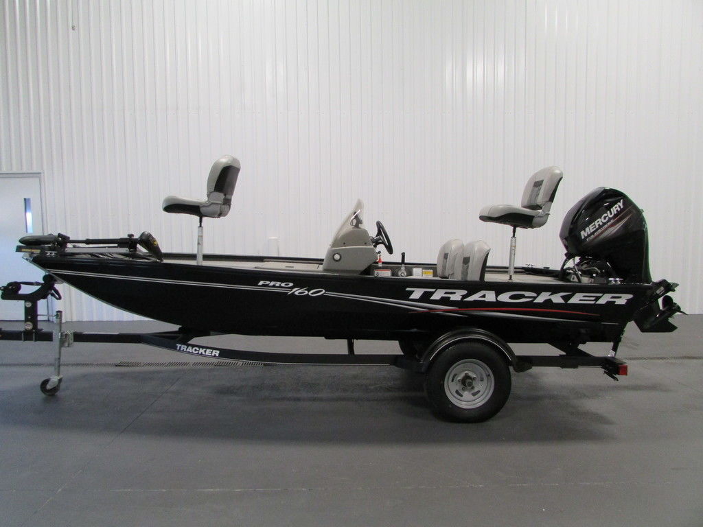 2018 TRACKER 160 PRO WITH ONLY 58 ENGINE HOURS! A 40 hp Mercury 4-stroke outboard with power trim powers this aluminum bass boat. Features include: factory boat cover, MinnKota Edge 45 lb thrust 12-volt trolling motor, Lowrance Hook-3X fish/depth finder, side console w/windshield, speedometer and tachometer, console courtesy light, 12-volt power outlet, bilge pump, navigation/anchor lights, electric horn, bow trolling motor plug, bow traction mat, raised bow fishing deck w/under storage, starboard aerated livewell, port cockpit rod holders w/tubes, (2) cockpit seats w/under storage, (2) swivel fishing chairs, raised stern fishing deck w/storage, beverage holder, (4) mooring cleats, 6-gallon fuel tank, stern battery storage, marine cranking battery, deep cycle trolling motor battery, and 3 person carrying capacity. Also included is a TrailStar bunk trailer including; 13” wheels, bearing buddies, tie down straps, transom saver, side centering bunks, composite fenders w/steps, and swivel jack. This package is in very good condition overall with minimal wear. There are minor cosmetic scuffs/scratches on the exterior and decals (see pics/video). It has been inspected by our factory-trained technicians and is mechanically sound. Trades will be considered and delivery is available. Competitive financing rates and terms are also available. Approximate payment of $198/mo. w/20% down for 60 mo. (WAC). Leaders RPM is one of the largest marine and powersports dealers in the Midwest with over 70,000 sq ft of showroom, parts, and service under one roof located in Kalamazoo, MI. Price is plus sales tax/fees and is subject to change without notice. Contact Us with questions or to request more information.