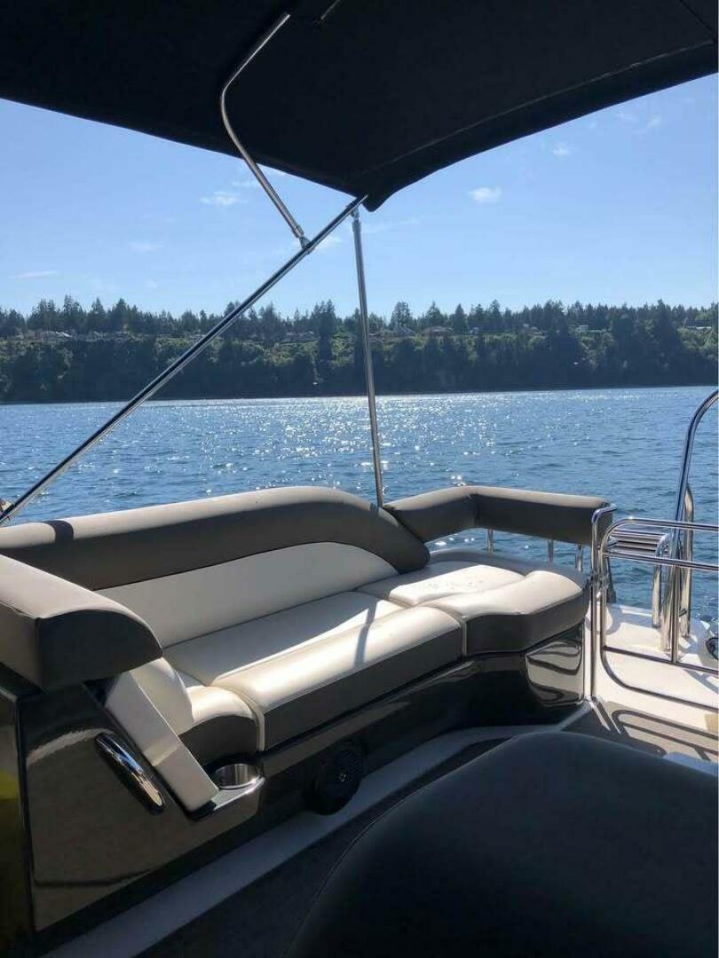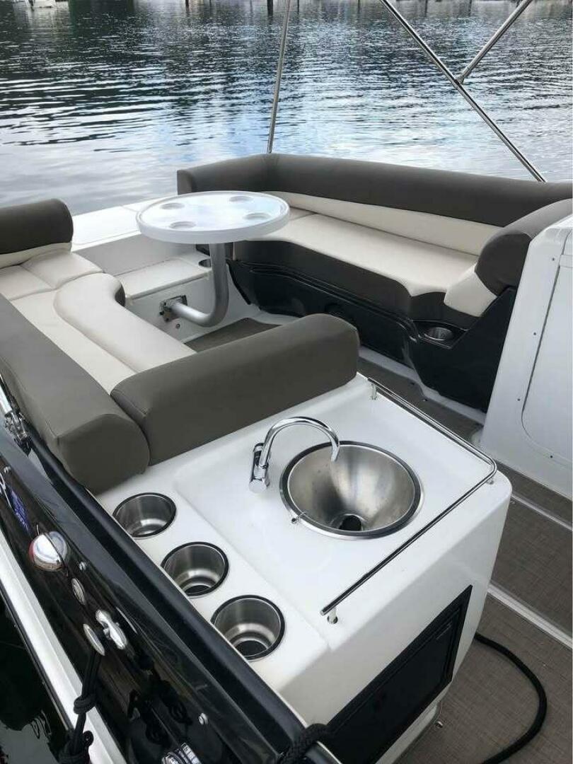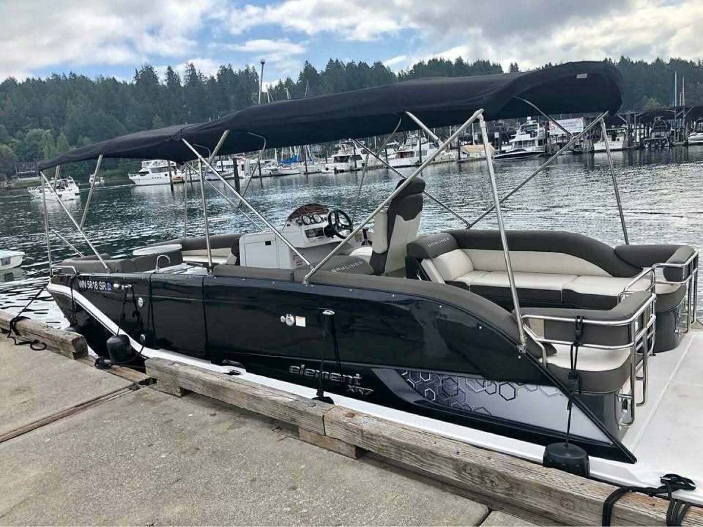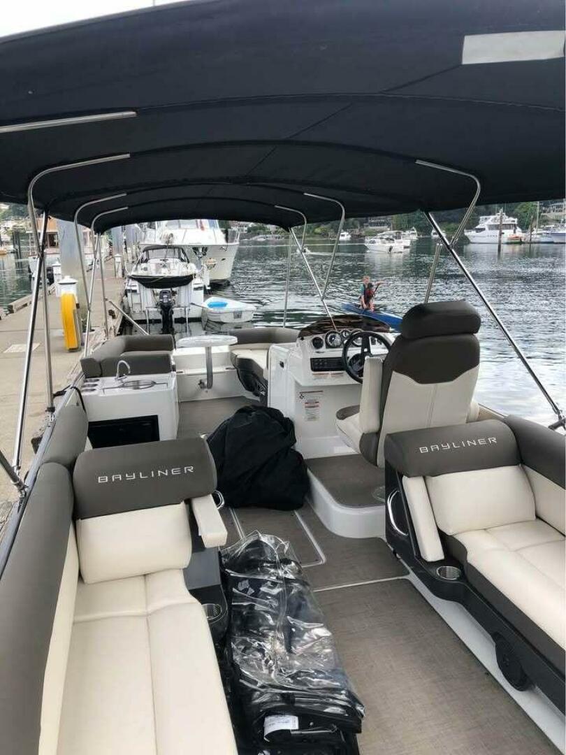 Bayliner Element XR7 Deck Boat – The Ultimate in Space, Style & ComfortThis sleek and spacious deck boat is the epitome of style, performance, and comfort. The Bayliner Element XR7 is designed with a commitment to maximizing space, ensuring every outing is enjoyable and memorable. With an expansive deck and seating for up to 16 passengers, it’s perfect for family gatherings, social events, or soaking up the sun with friends.The open design creates a welcoming atmosphere, making it easy to move around and socialize. Abundant storage throughout means you can bring everything you need for a full day on the water—food, drinks, water toys, towels, and more—without clutter. The seating arrangements are versatile, allowing you to relax or entertain with ease.Bayliner’s innovative M-Hull design guarantees superior stability and handling. Whether you’re cruising, fishing, or enjoying watersports, the XR7 delivers a smooth, confident ride. The stability provided by the M-Hull ensures guests of all ages feel comfortable and secure, even on choppier days.Powered by a Mercury 150 HP outboard 4-stroke engine with only 100 hours, this boat blends power and fuel efficiency, making it ideal for long adventures or quick outings. The engine’s quiet operation and reliability mean you can focus on fun without worry. Maintenance has been simple and the boat has been meticulously cared for, offering years of worry-free enjoyment ahead.The helm is thoughtfully designed, featuring a modern instrument panel that puts all essential controls within easy reach. Navigate with confidence and enjoy the convenience of technology at your fingertips. The Bluetooth stereo system lets you set the mood with your favorite playlists, while the 12V charger and USB ports keep everyone’s devices powered up.Creature comforts abound: multiple beverage holders are strategically placed throughout the deck, so your drink is always close at hand. The on-board porta-potty ensures extended outings remain comfortable and convenient for everyone. A cockpit sink with storage underneath makes prepping snacks and cleaning up a breeze.Two spacious ski lockers provide dedicated space for your water toys, ensuring quick access and a tidy deck. An anchor locker means you’re always ready to pause and enjoy a swim or some sunbathing, while the large swim platform with shower makes rinsing off after a dip incredibly convenient.For those who love action, the tow bar is perfect for pulling tubes, wakeboards, or water skis. Whether you’re introducing the kids to watersports or challenging friends, this XR7 is ready for fun. The double Bimini provides ample shade on the sunniest days, and when the weather changes, the full enclosure keeps everyone dry and comfortable, extending your boating season.Includes a nice dual-axle trailer to get you anywhere! Call today before she is gone.