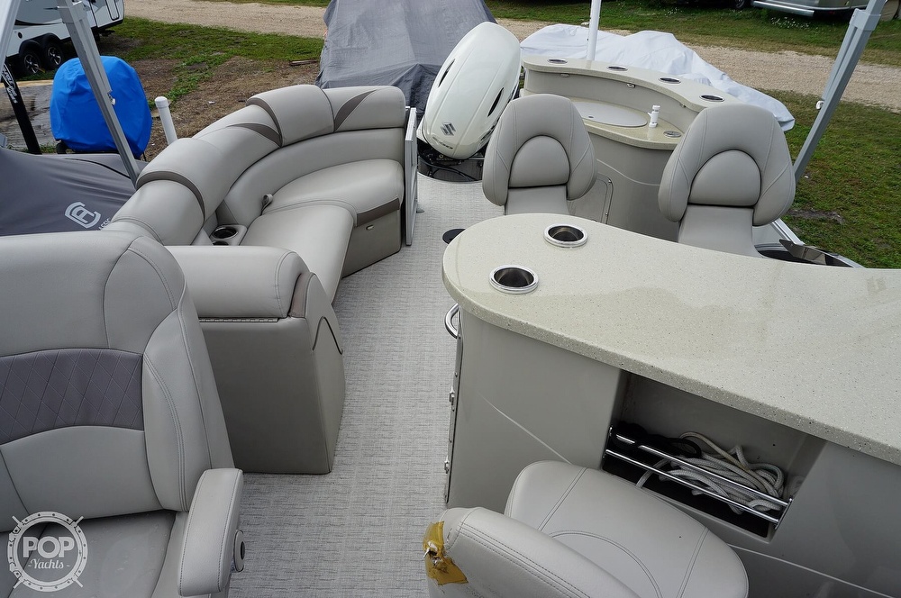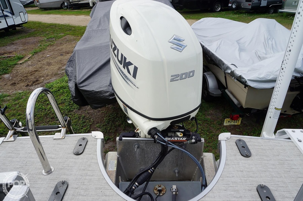 Nice tritoon design with entertainment bar, powerful 200hp Suzuki 4-stroke, PowerPole, Simrad GPS, plenty of seating+storage. Trailer included!