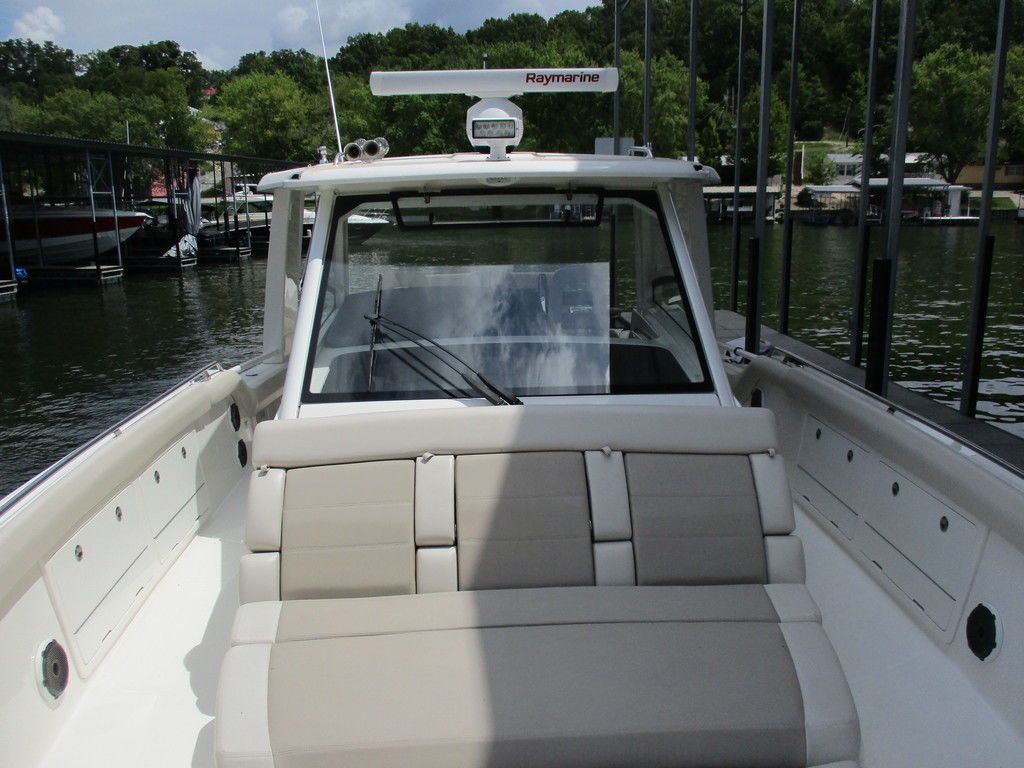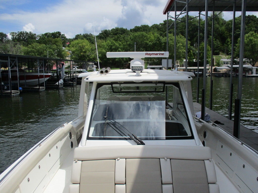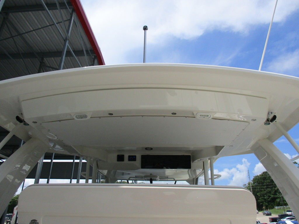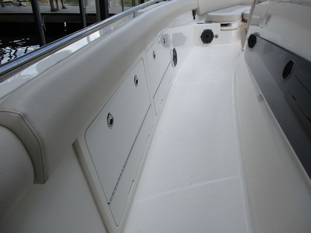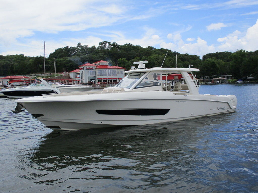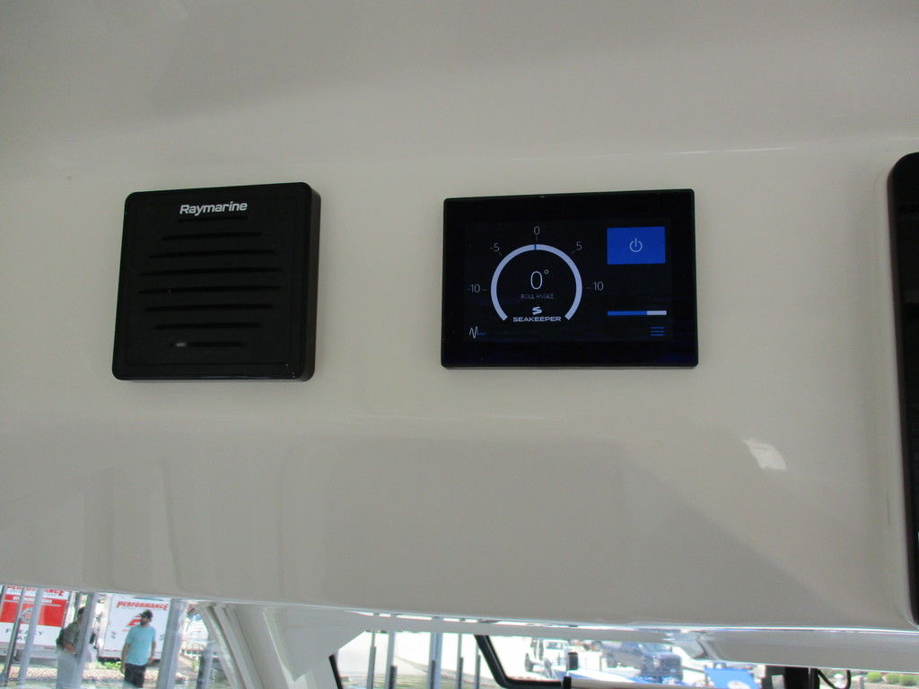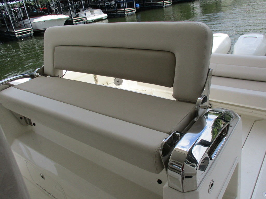 2019 Boston Whaler 420 Outrage powered by 4 Mercury 350 Verados with Joystick piloting, 75 FRESH WATER ONLY hours, 10" stainless cleats, boarding ladder at transom, 2 bow tow eye, drink holders stainless steel, full coaming bolsters, LED courtesy lights, live well, pressurized and insulated, boarding/dive ladder port side, windless with 400 rope and chain, stainless steel anchor, RayMarine 19 Axiom electronics, 1000 watt thru hull transducer b175, Fusion Stereo, theft deterrent system, LED flood lights, LED navigation lights, LED overhead courtesy, Sunshade for cockpit, bow table teak w/cushion, bow sun shade, scuba tank rack, underwater lights blue, 12 volt at transom , 2 downriggers, summer kitchen leaning post, freezer plates in stb fishbox, cockpit folding bench seat stbd, engine flushing system, premium audio package, Sirius/XM satellite radio, SeaKeeper Gyroscope stabilizer, seat canvas cover package, Diesel gen, radial outriggers, active trim.