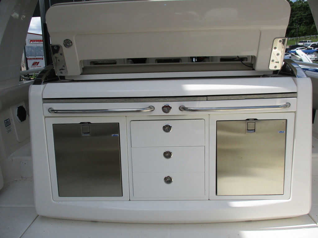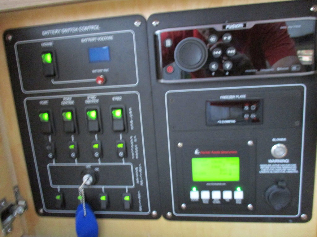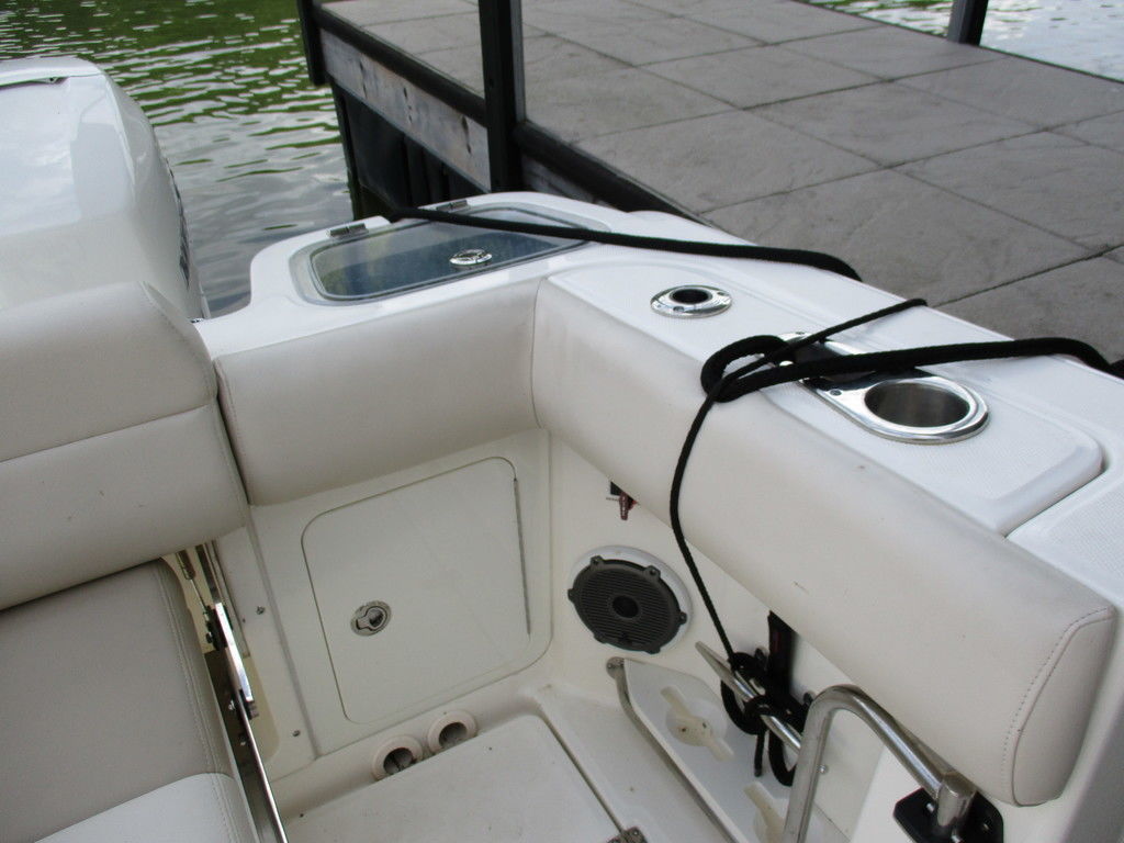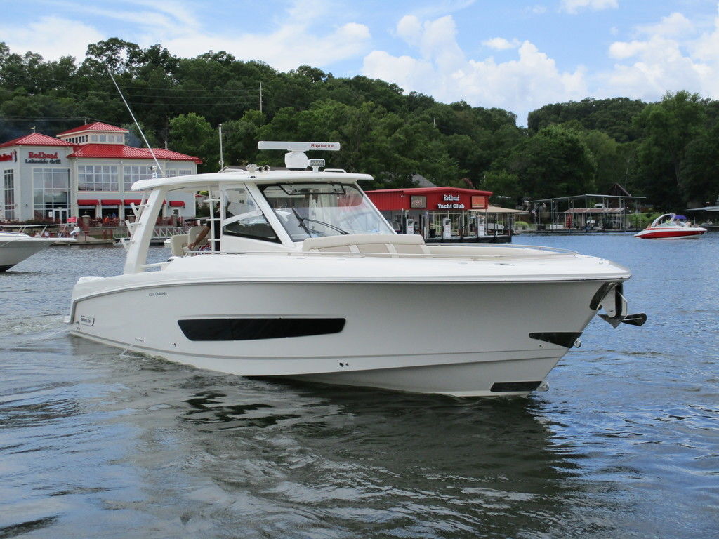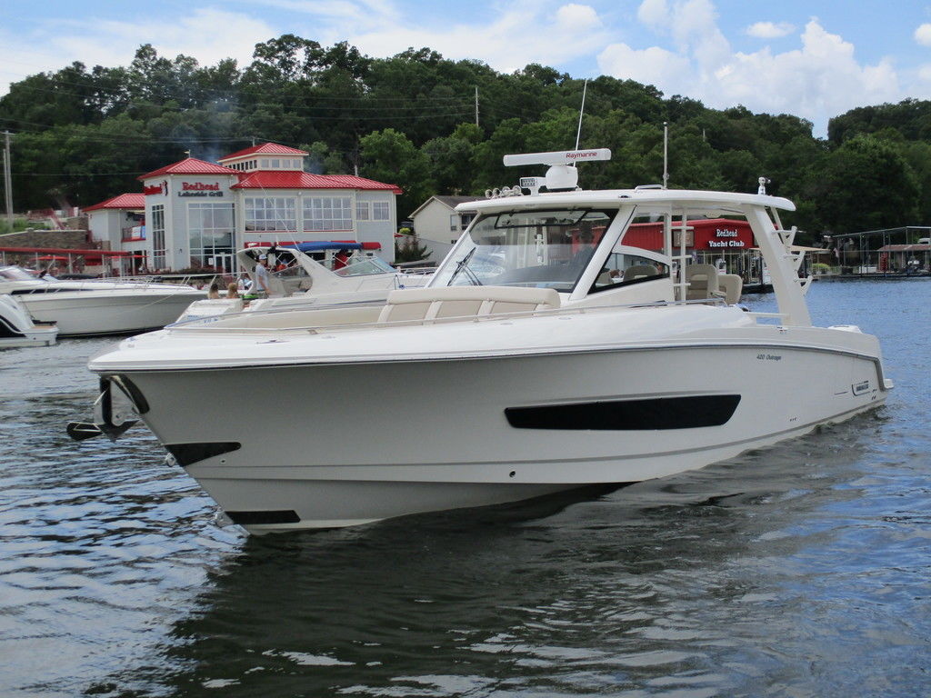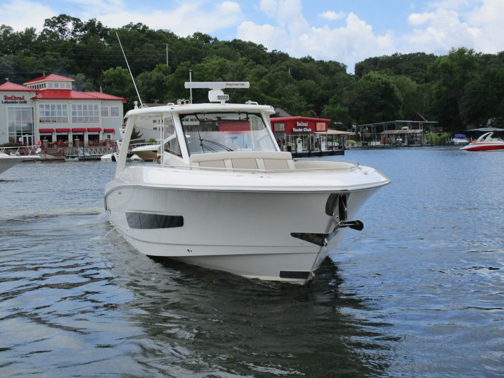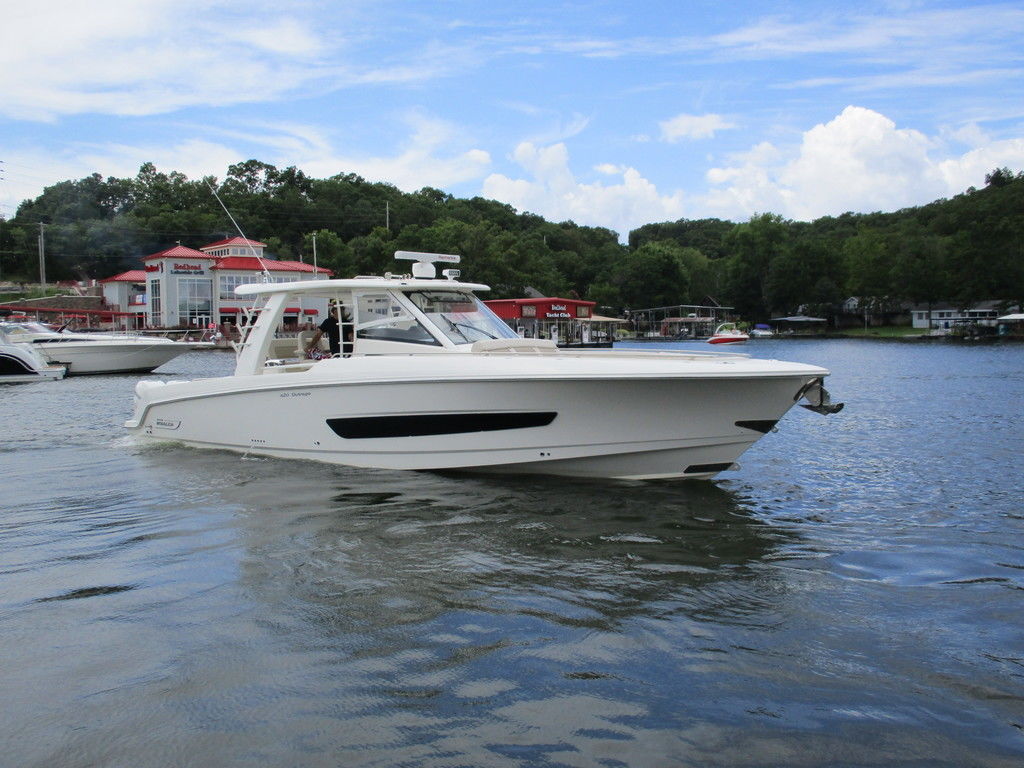 2019 Boston Whaler 420 Outrage powered by 4 Mercury 350 Verados with Joystick piloting, 75 FRESH WATER ONLY hours, 10" stainless cleats, boarding ladder at transom, 2 bow tow eye, drink holders stainless steel, full coaming bolsters, LED courtesy lights, live well, pressurized and insulated, boarding/dive ladder port side, windless with 400 rope and chain, stainless steel anchor, RayMarine 19 Axiom electronics, 1000 watt thru hull transducer b175, Fusion Stereo, theft deterrent system, LED flood lights, LED navigation lights, LED overhead courtesy, Sunshade for cockpit, bow table teak w/cushion, bow sun shade, scuba tank rack, underwater lights blue, 12 volt at transom , 2 downriggers, summer kitchen leaning post, freezer plates in stb fishbox, cockpit folding bench seat stbd, engine flushing system, premium audio package, Sirius/XM satellite radio, SeaKeeper Gyroscope stabilizer, seat canvas cover package, Diesel gen, radial outriggers, active trim.