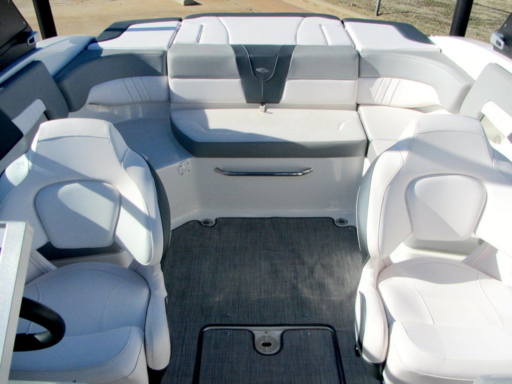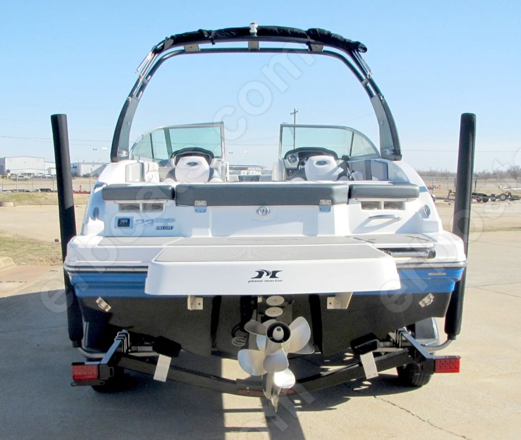219 Chaparral 23' H20 powered by a 250 hp Bravo III with dual stainless steel props, ONLY 35 pampered hours, open bow seating with walk thru windshield, swivel captain's chairs, spacious sundeck, wakeboard tower, bimini, snap in cockpit carpet, AM/FM stereo with I-pod connection, GPS, in dash depht finder, ski tow, extended swim platform with boarding ladder, complete with tandem axle trailer.......