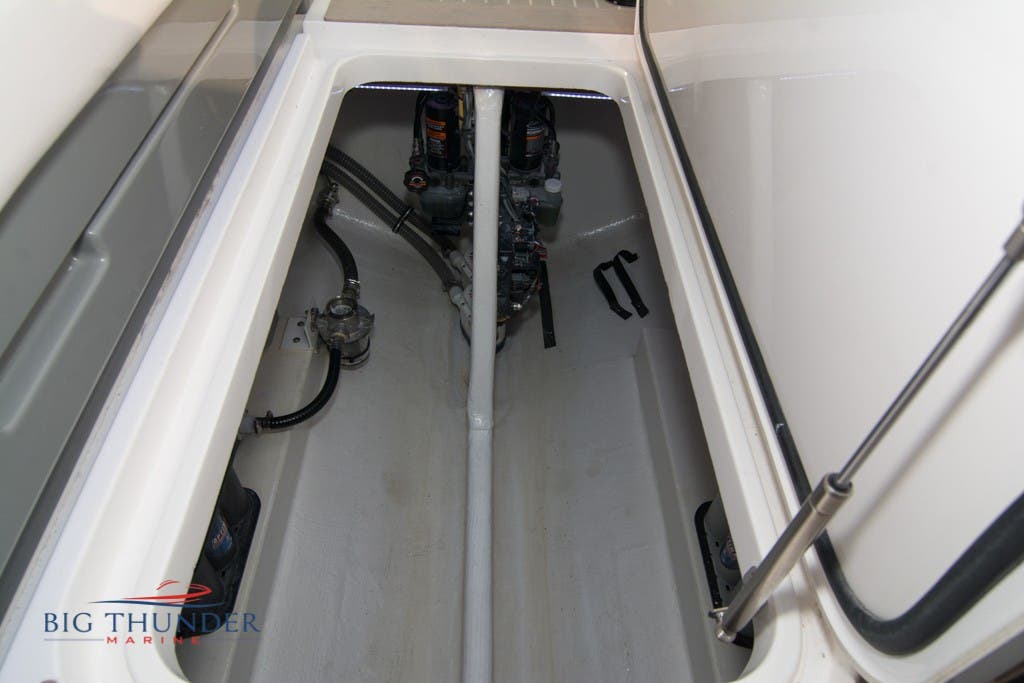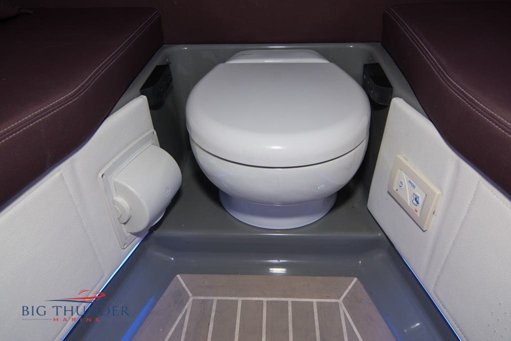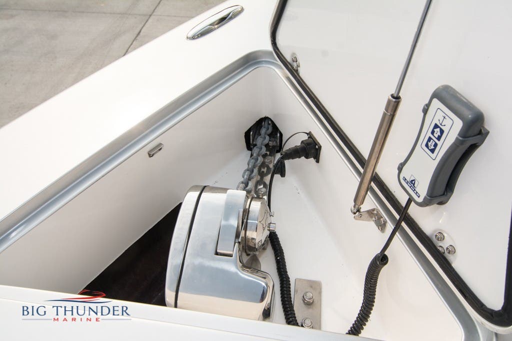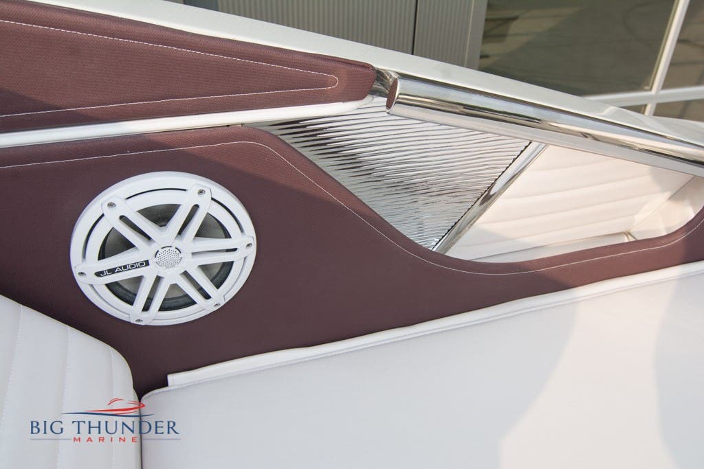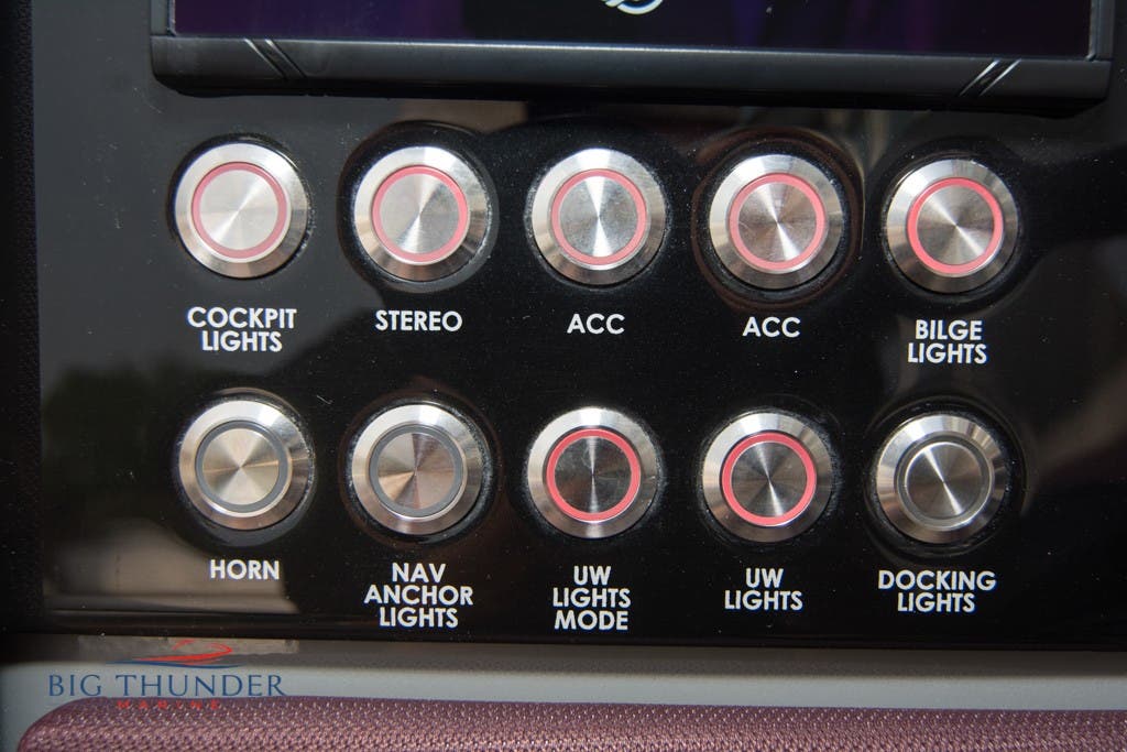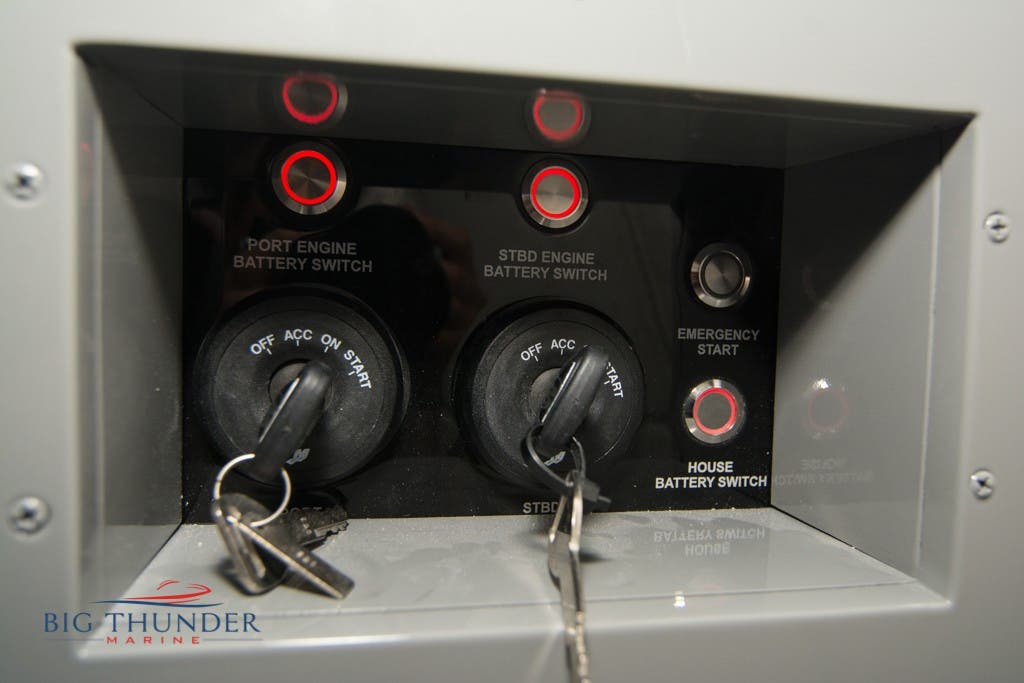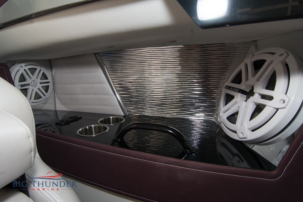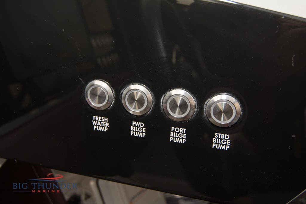 Triple Mercury Racing 400R Verado. Donzi Twin Step Z Plane Hull. Garmin 16"" Screen. Merc Vessel View. JL Audio System. Windlass, Striker Plate, Anchor and Rode. Cockpit Entertainment Center w/ Refrigerator and Sink, Chiller. Easy Drain Bailing Cockpit. Tailored Upholstery. Sport Helm and Companion Seating w/ Bolster. Midship Seat Grouping. Aft Lounges. Solid Surface Countertops. Sliding Door Console/Stateroom Access. Day Cabin w/ Seating, Head, Sink, Vanity, Pantry.