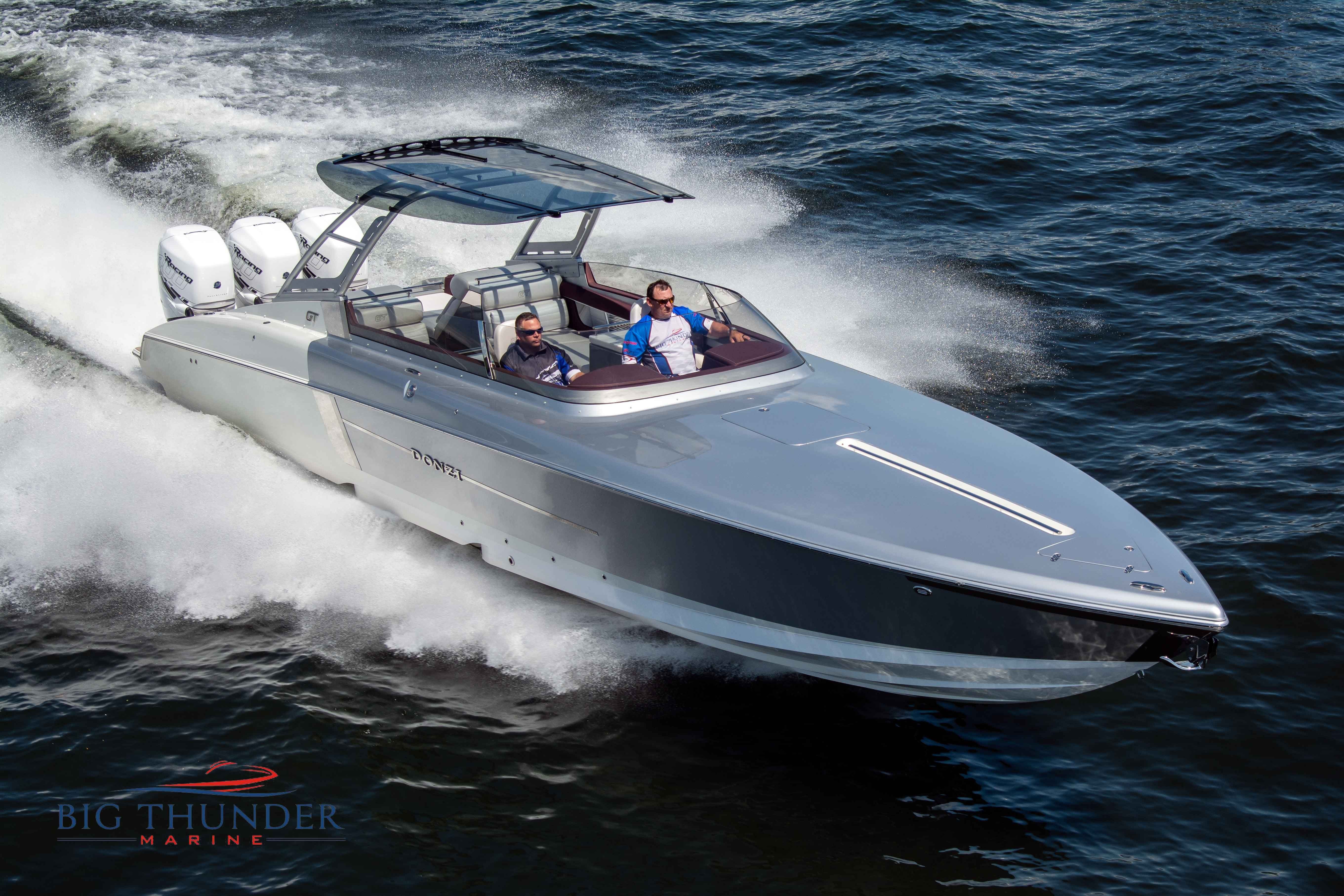 2019 Donzi GT A new genre of sport boat and the first in the Donzi GT Series, the 41GT is a balance between stunning looks, sophisticated style, spacious comfort, and offshore ride and performance. The GT 41 has the distinguishing features that brought Donzi to the forefront in watercraft over its 56 year history. At 41 feet and a nearly 10 foot beam, powered by the latest in outboard propulsion, the 41 has the ability to take the family and friends on an adventure in the blue water and the inland seas. Some of the many great features on this model include: