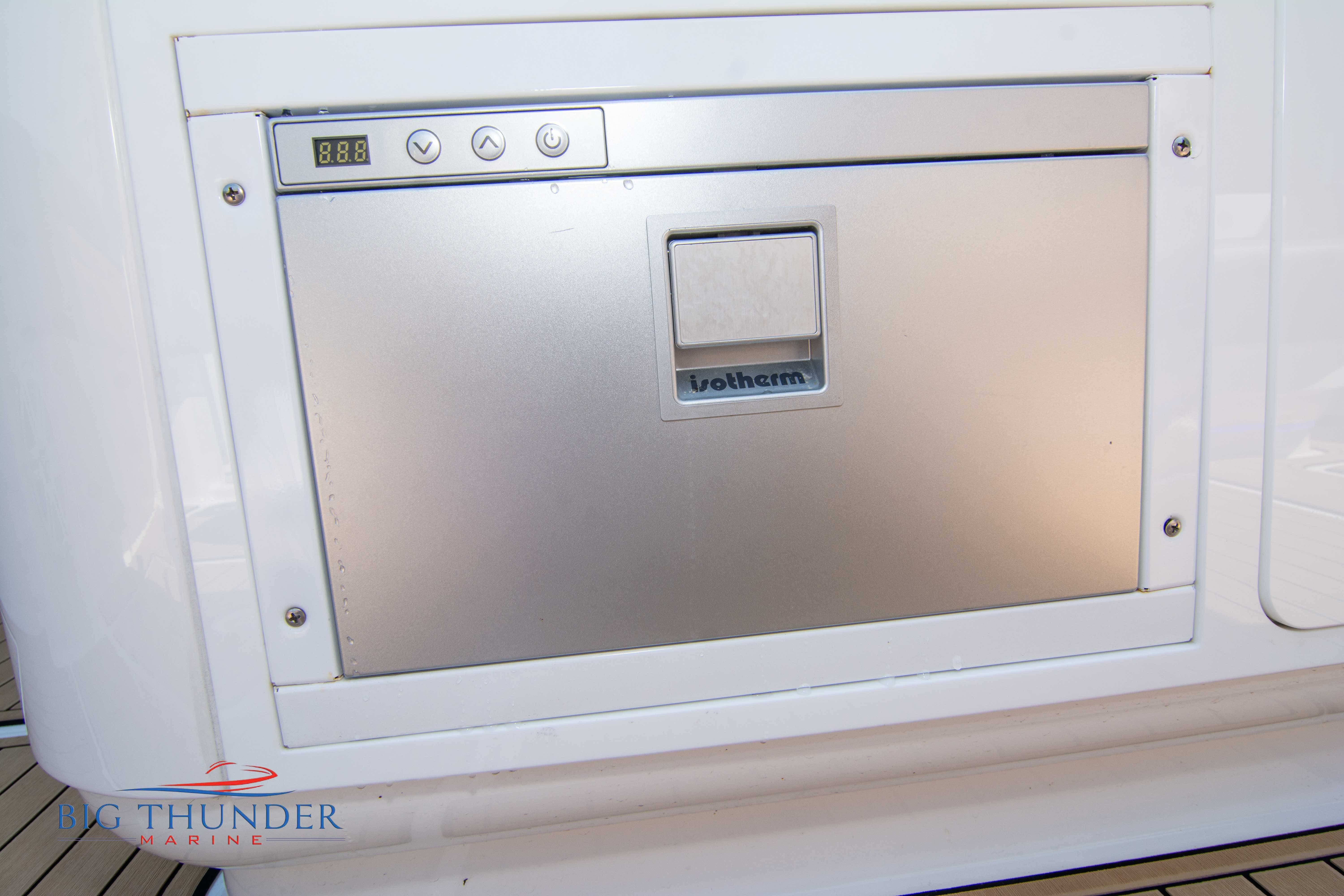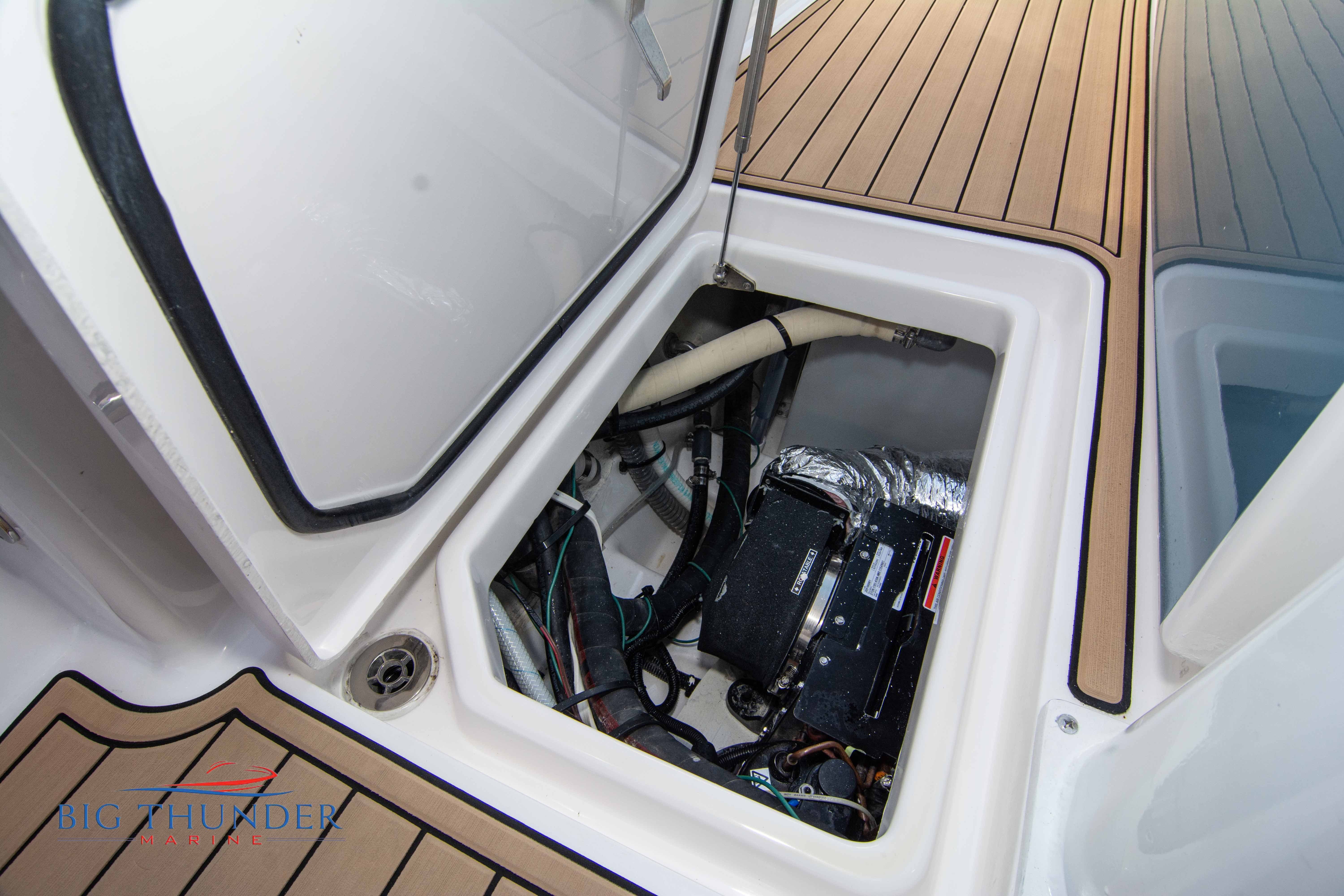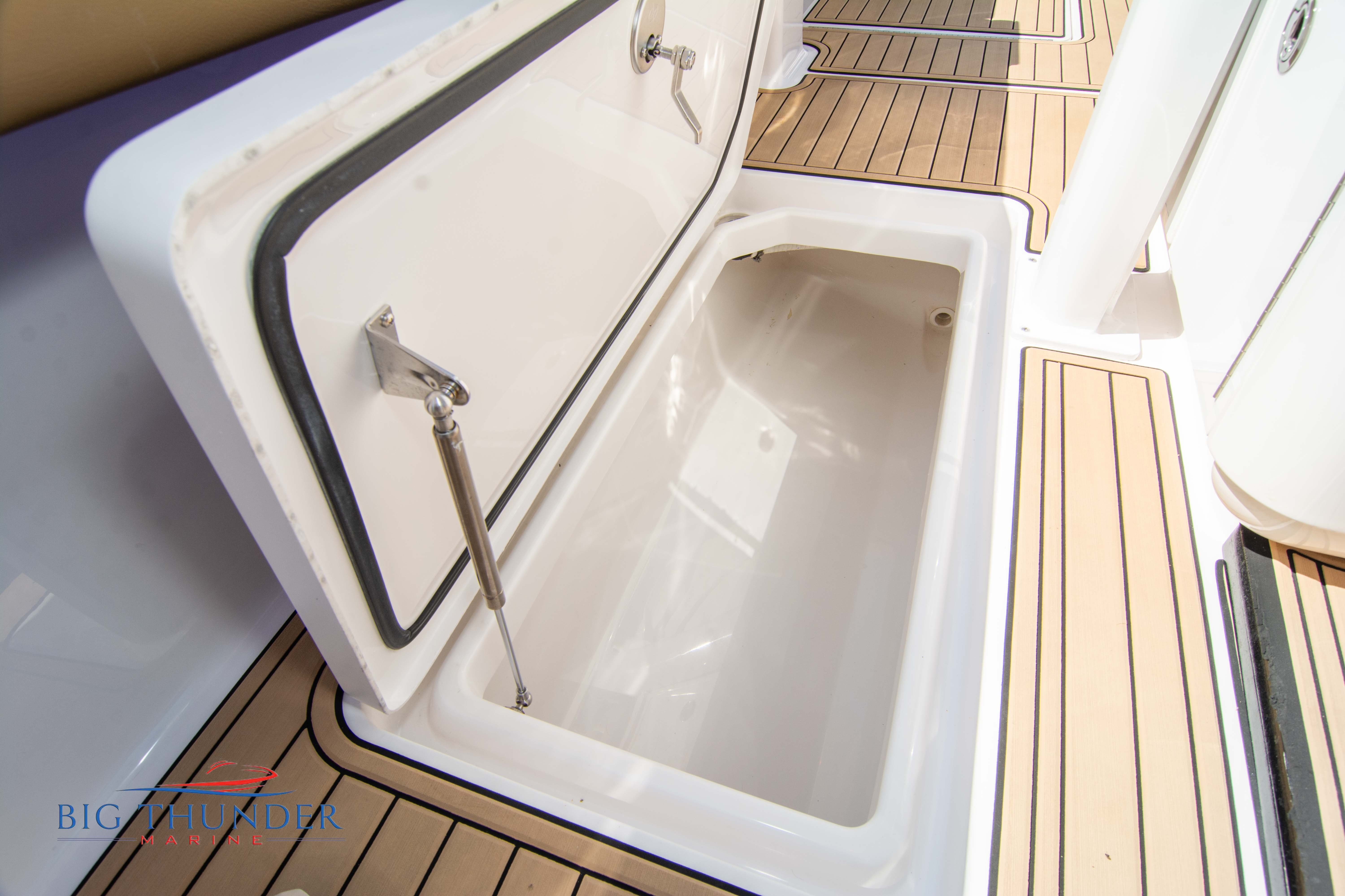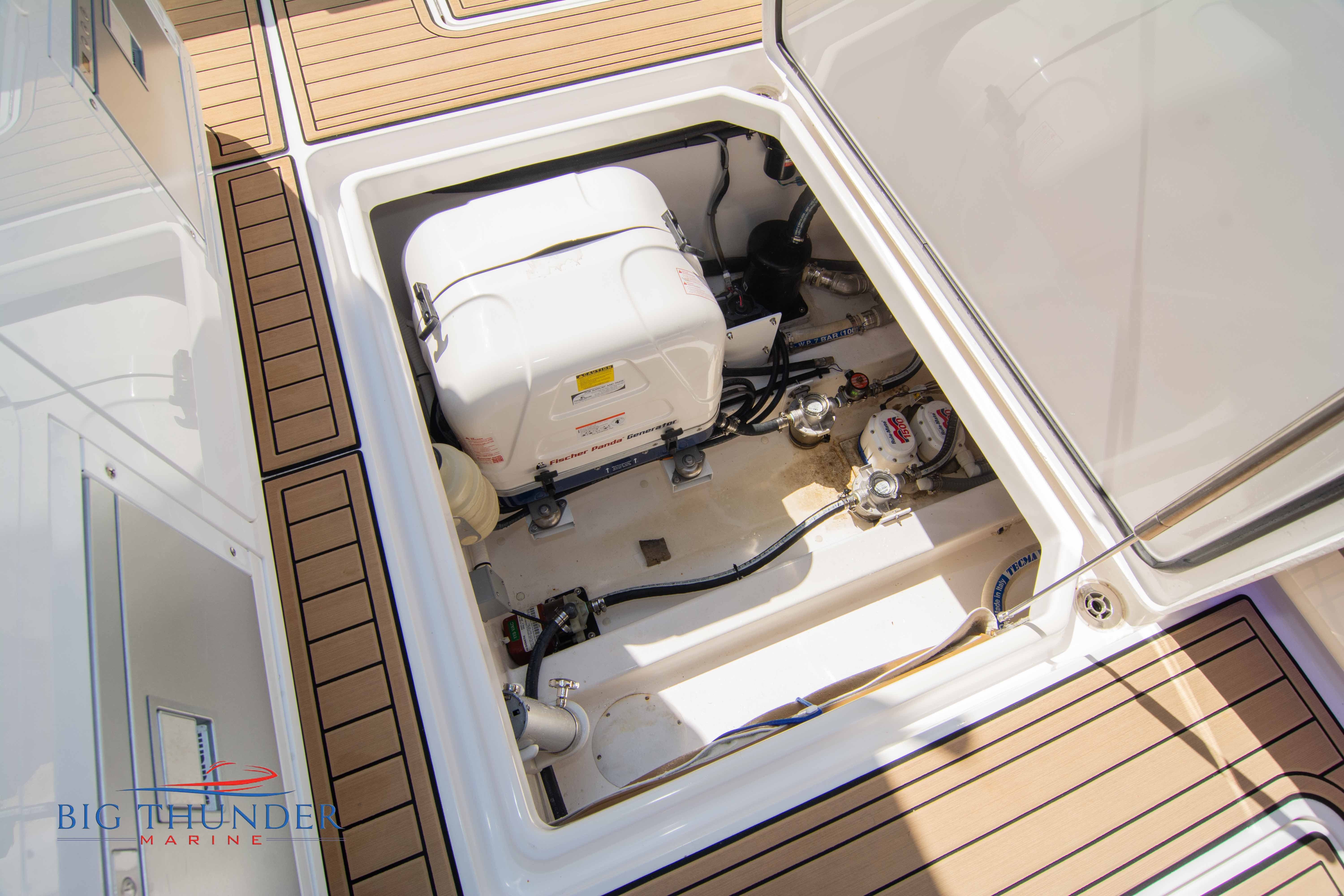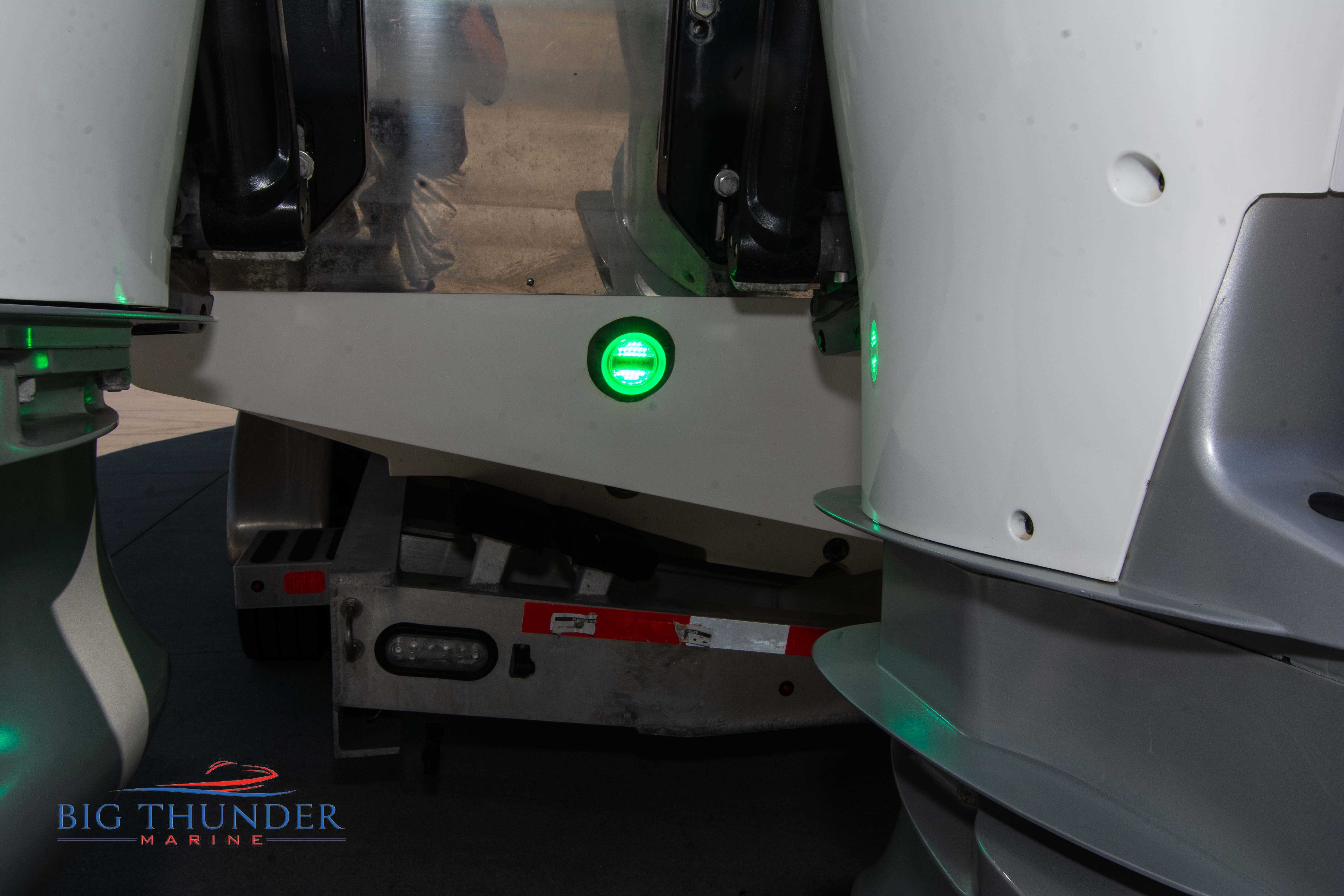 2019 Fountain 43 NX, Quad Verado 400R XM weather, Helm station contains head, sink, large v berth area, AC 30 amp dockside, lithium package w/50’ shore power cable, Mastervolt battery management system, Dive door with telescoping ladder, upgraded JL audio system, marine mat flooring, front lounge area, table, helm seat and dash cover, Triple Simrad 16’ displays, 24 HD domed radar, vhf radio with antenna and auto pilot. XM weather option. Panda diesel 5kw gen. AC/heat in cabin and at helm station. Isotherm refrigerators. Myco aluminium triple axle trailer available.