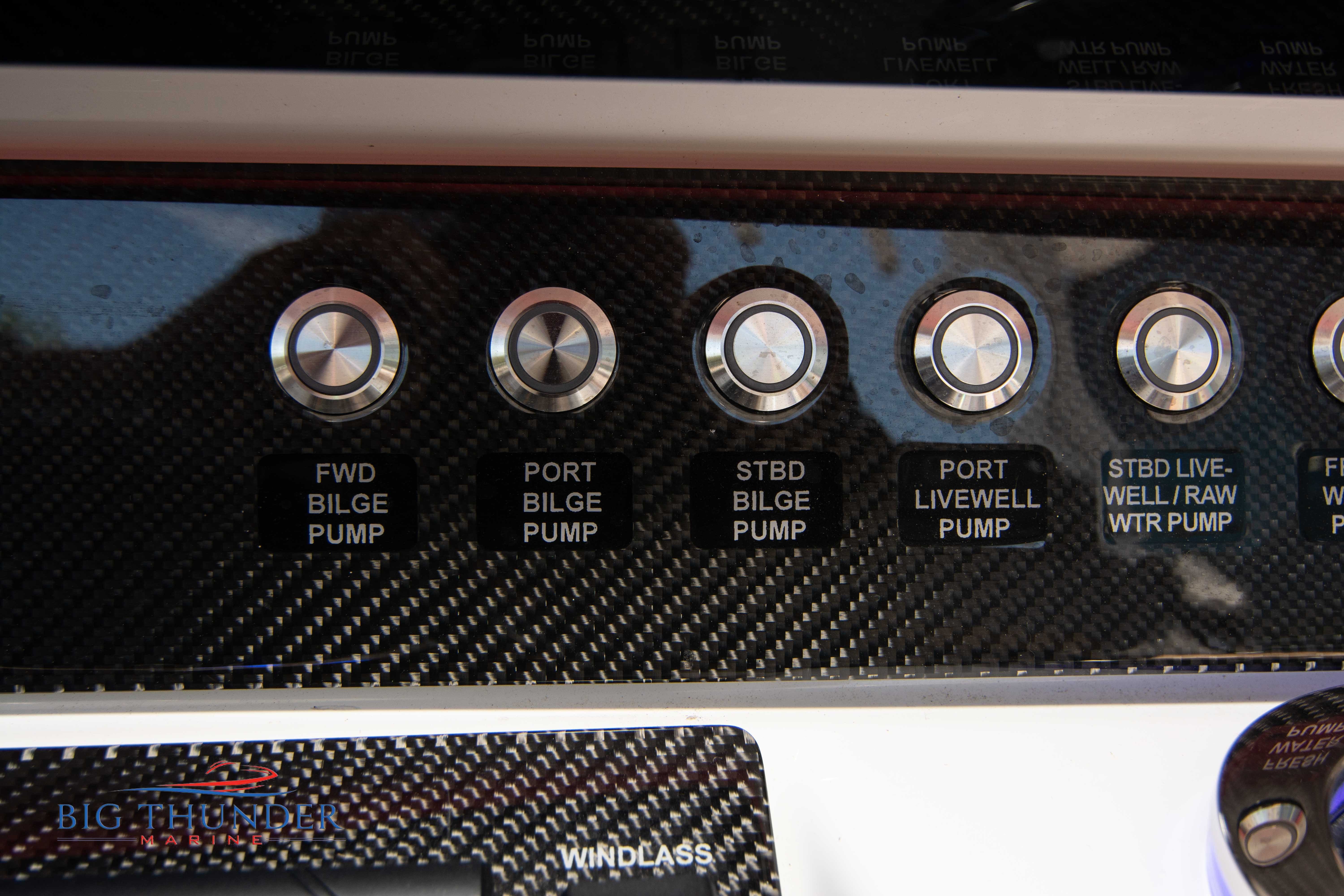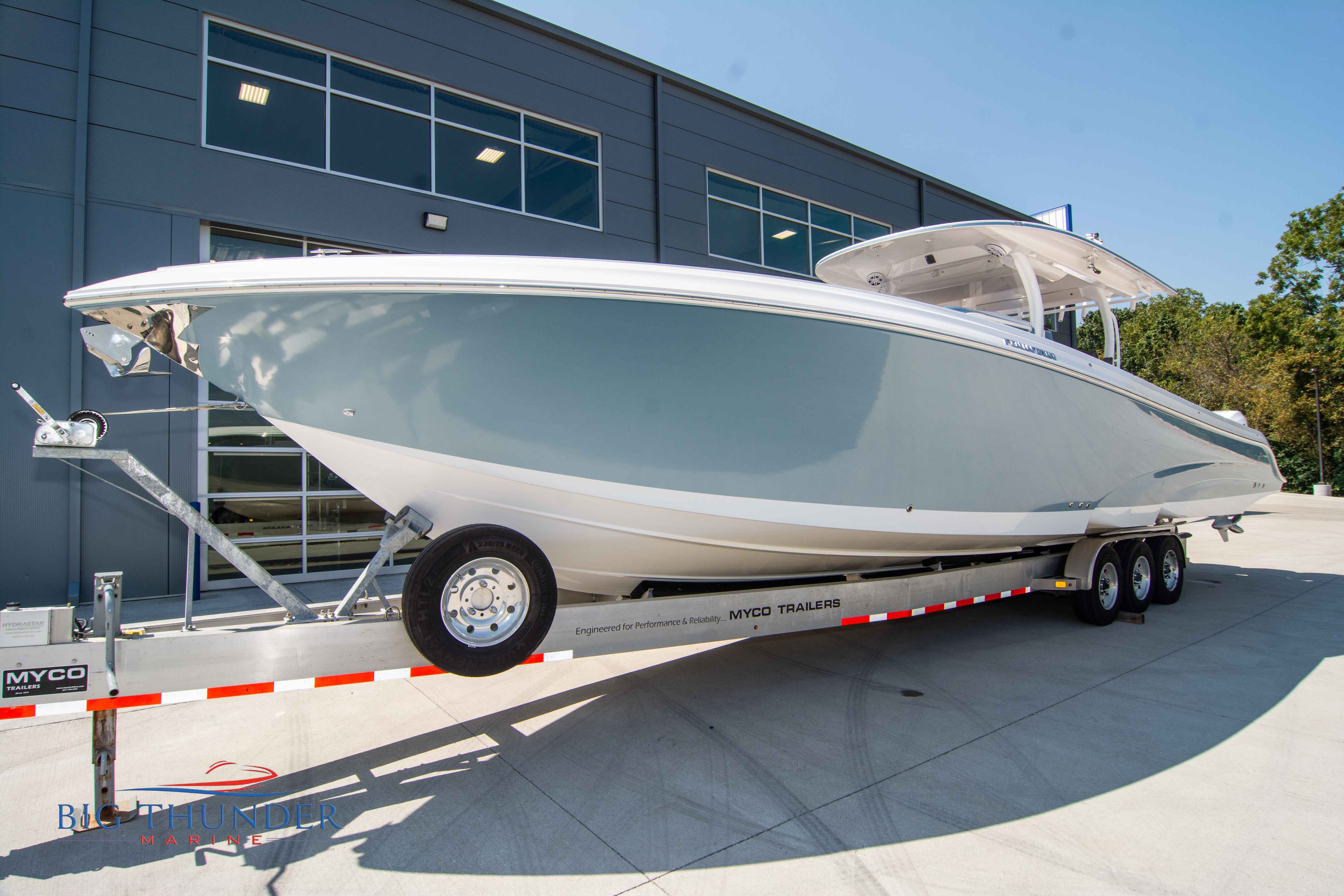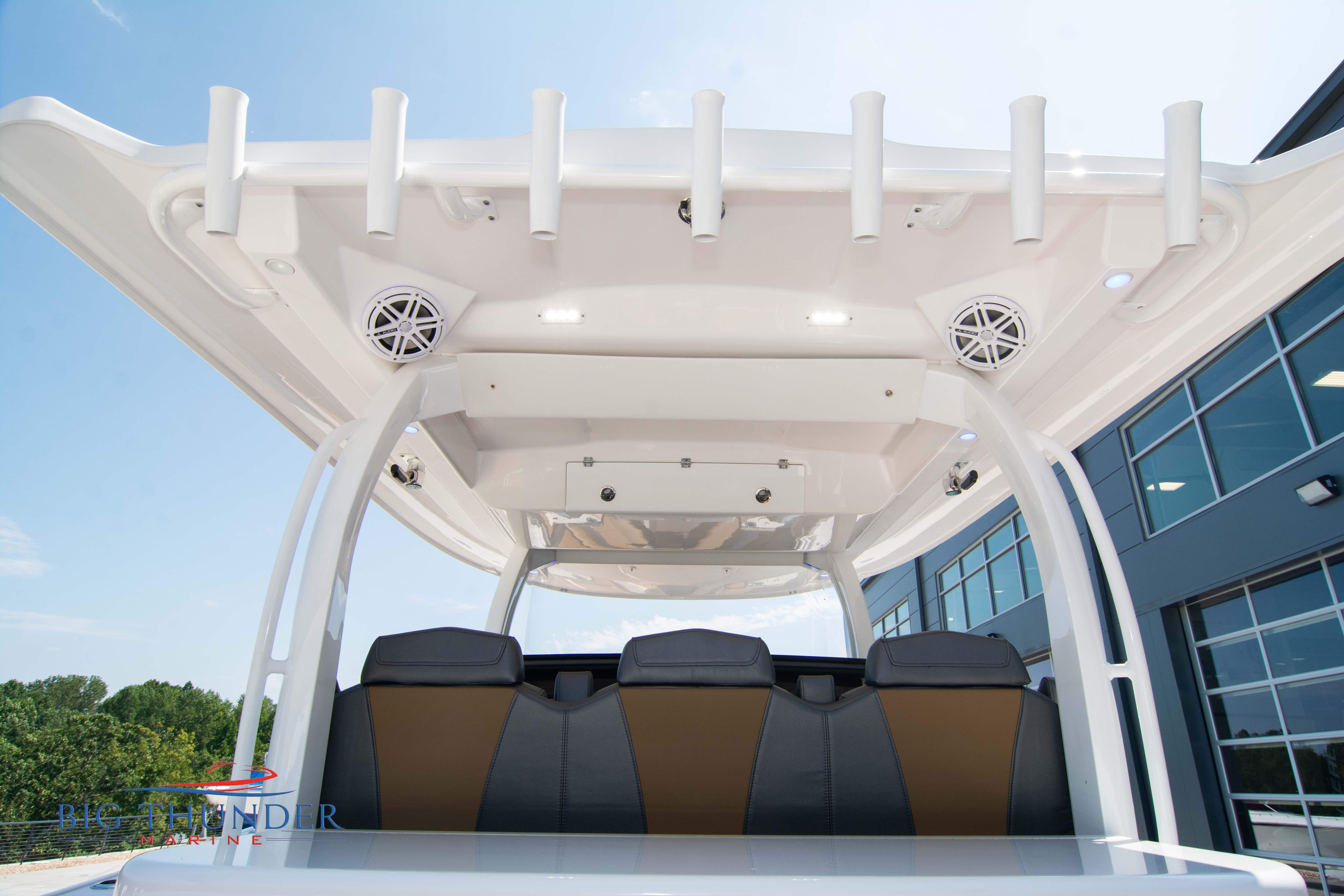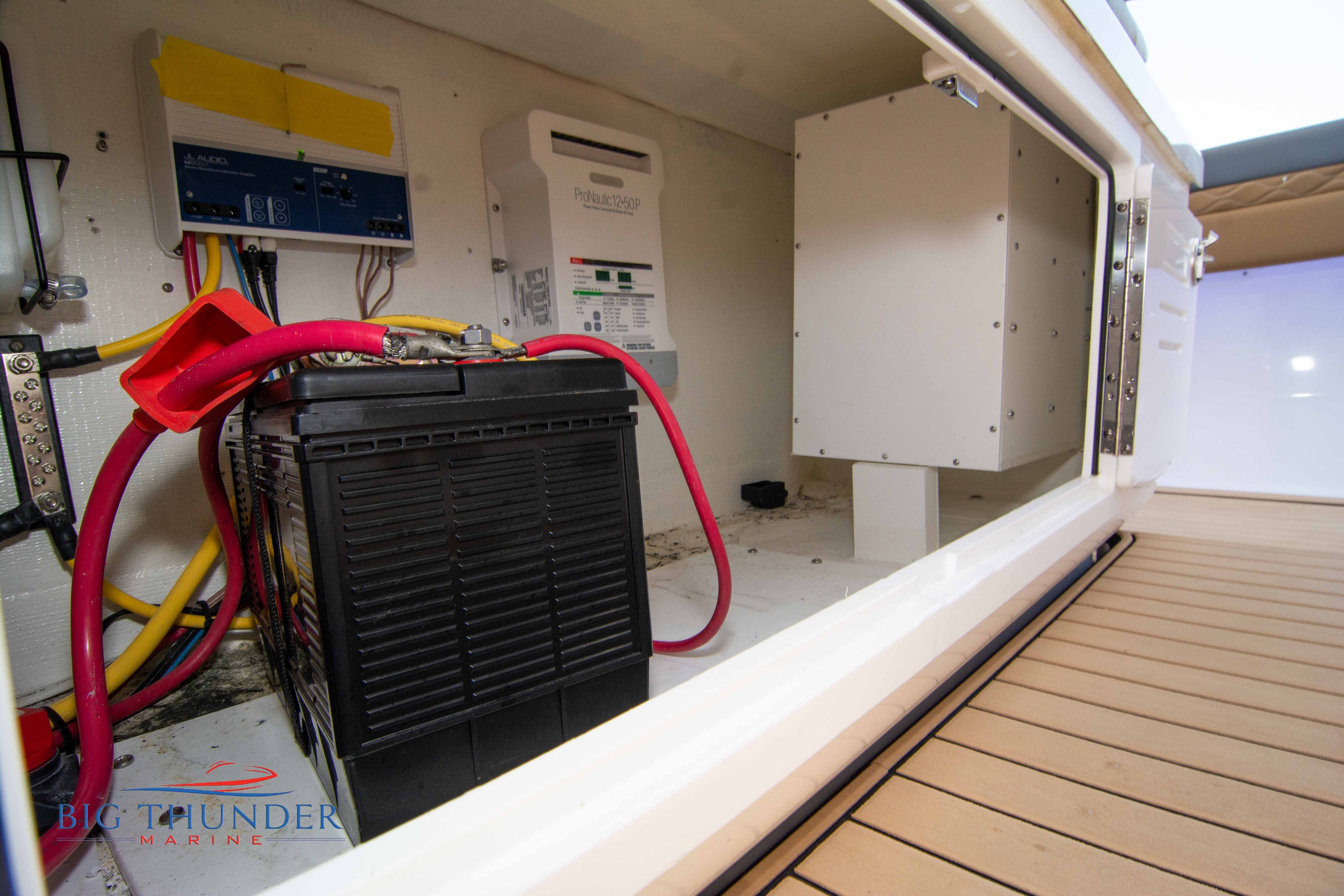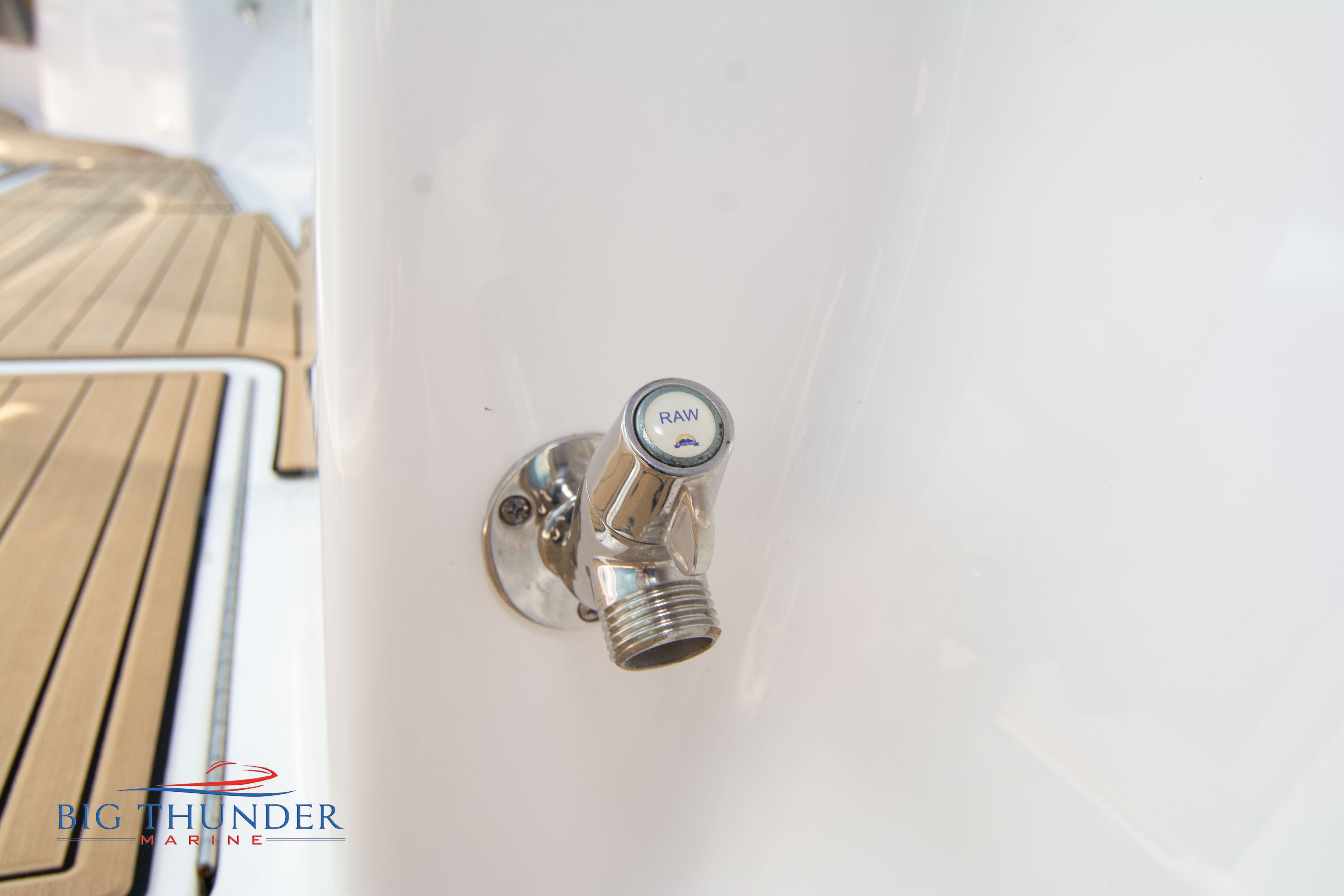 2019 Fountain 43 NX, Quad Verado 400R XM weather, Helm station contains head, sink, large v berth area, AC 30 amp dockside, lithium package w/50’ shore power cable, Mastervolt battery management system, Dive door with telescoping ladder, upgraded JL audio system, marine mat flooring, front lounge area, table, helm seat and dash cover, Triple Simrad 16’ displays, 24 HD domed radar, vhf radio with antenna and auto pilot. XM weather option. Panda diesel 5kw gen. AC/heat in cabin and at helm station. Isotherm refrigerators. Myco aluminium triple axle trailer available.