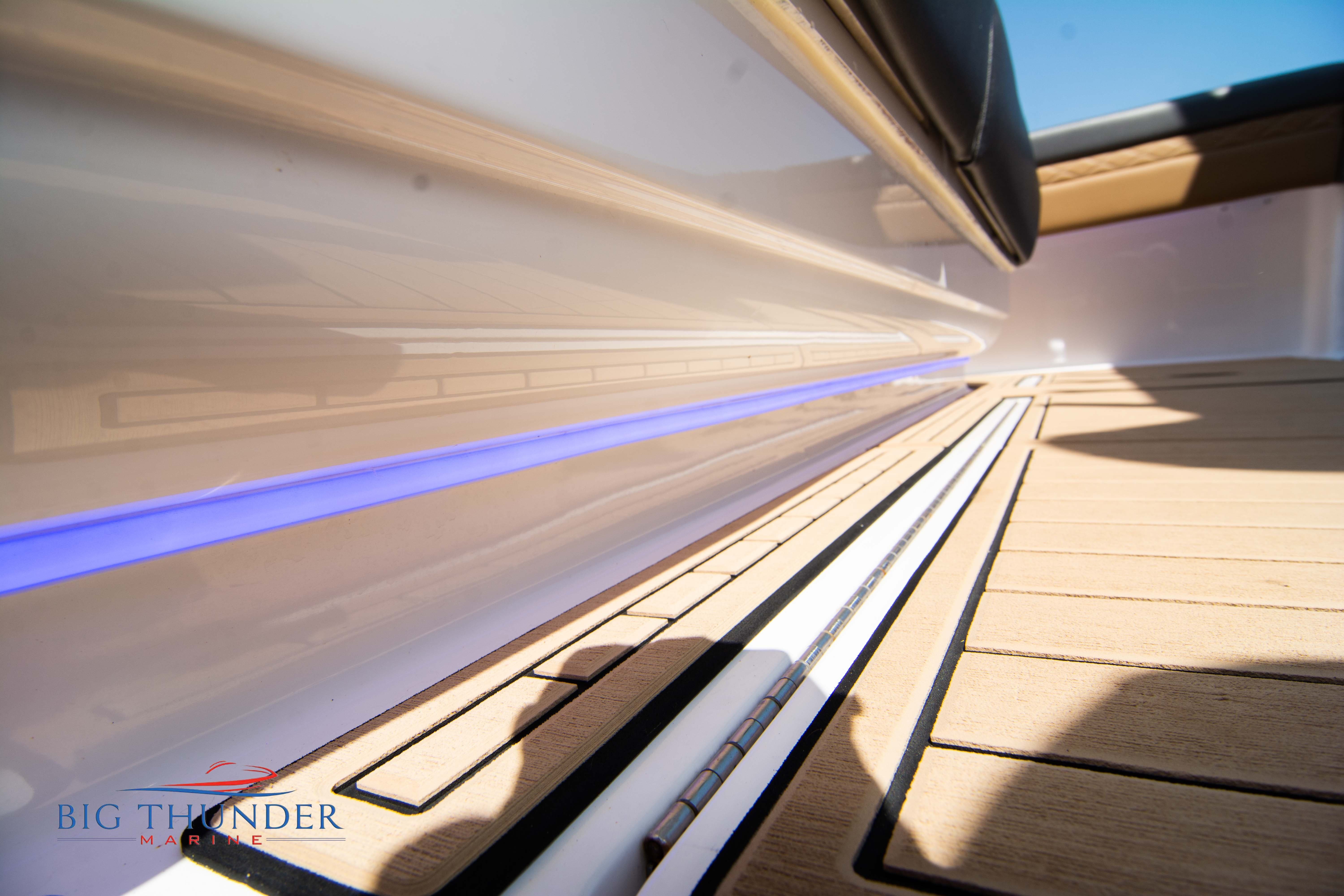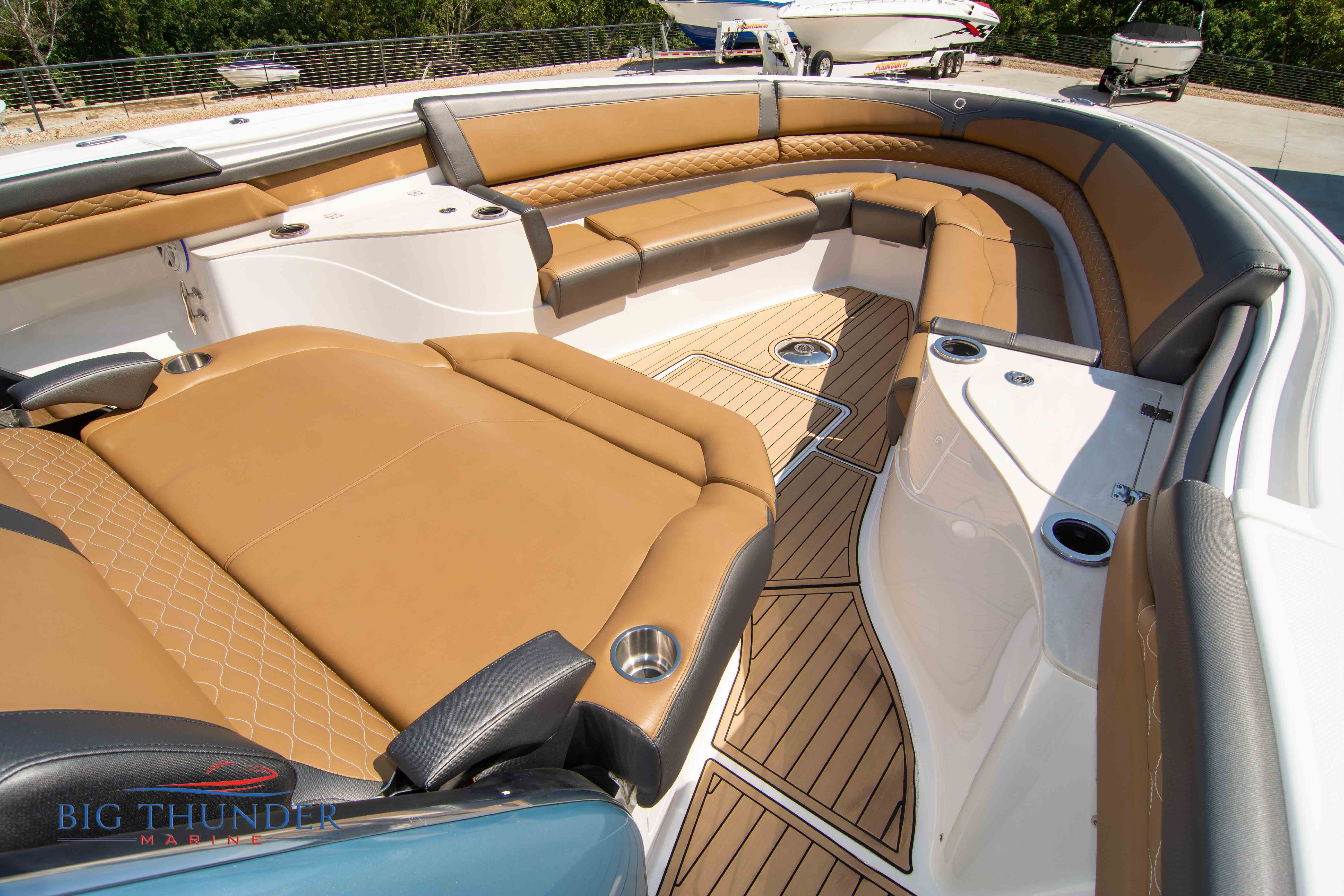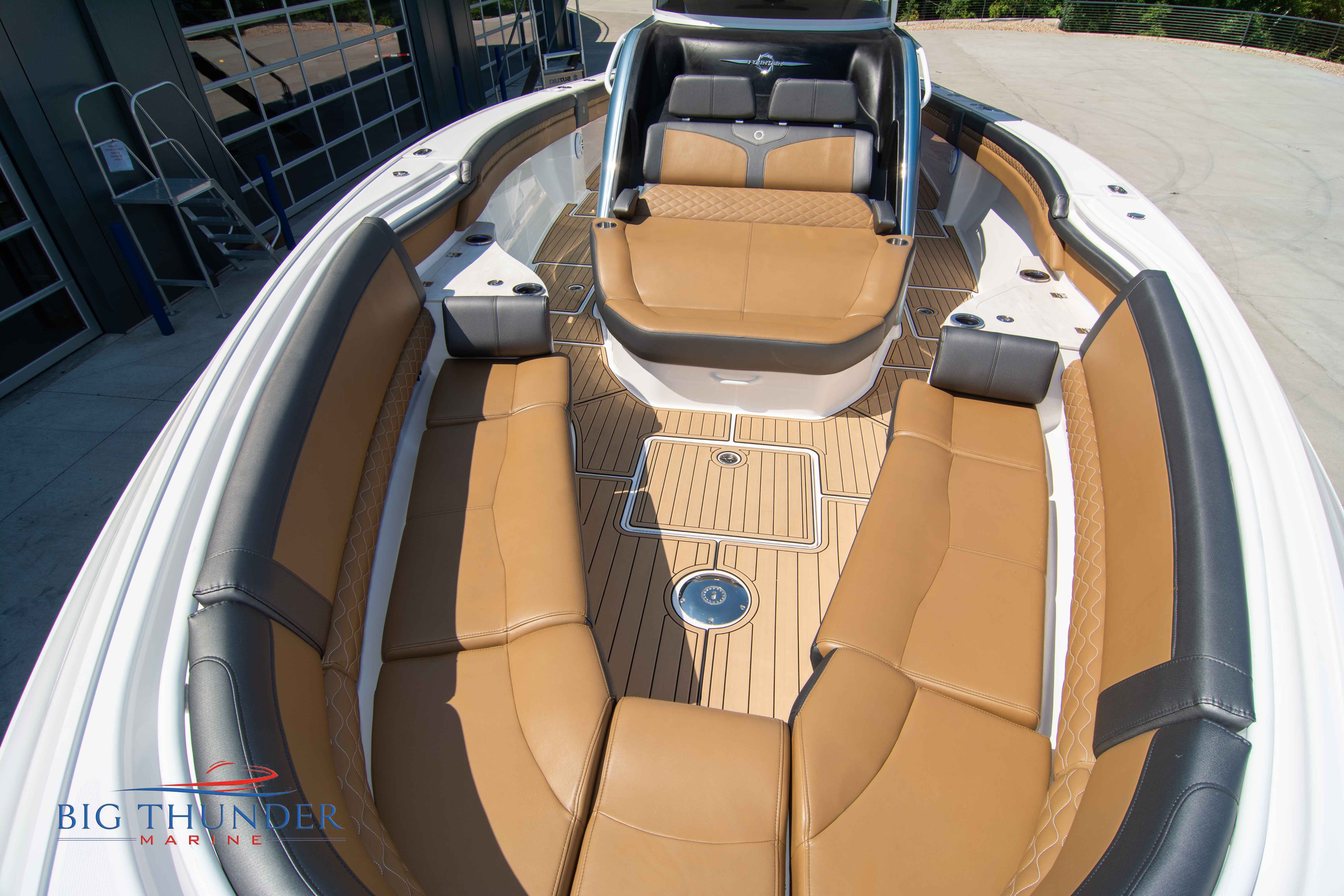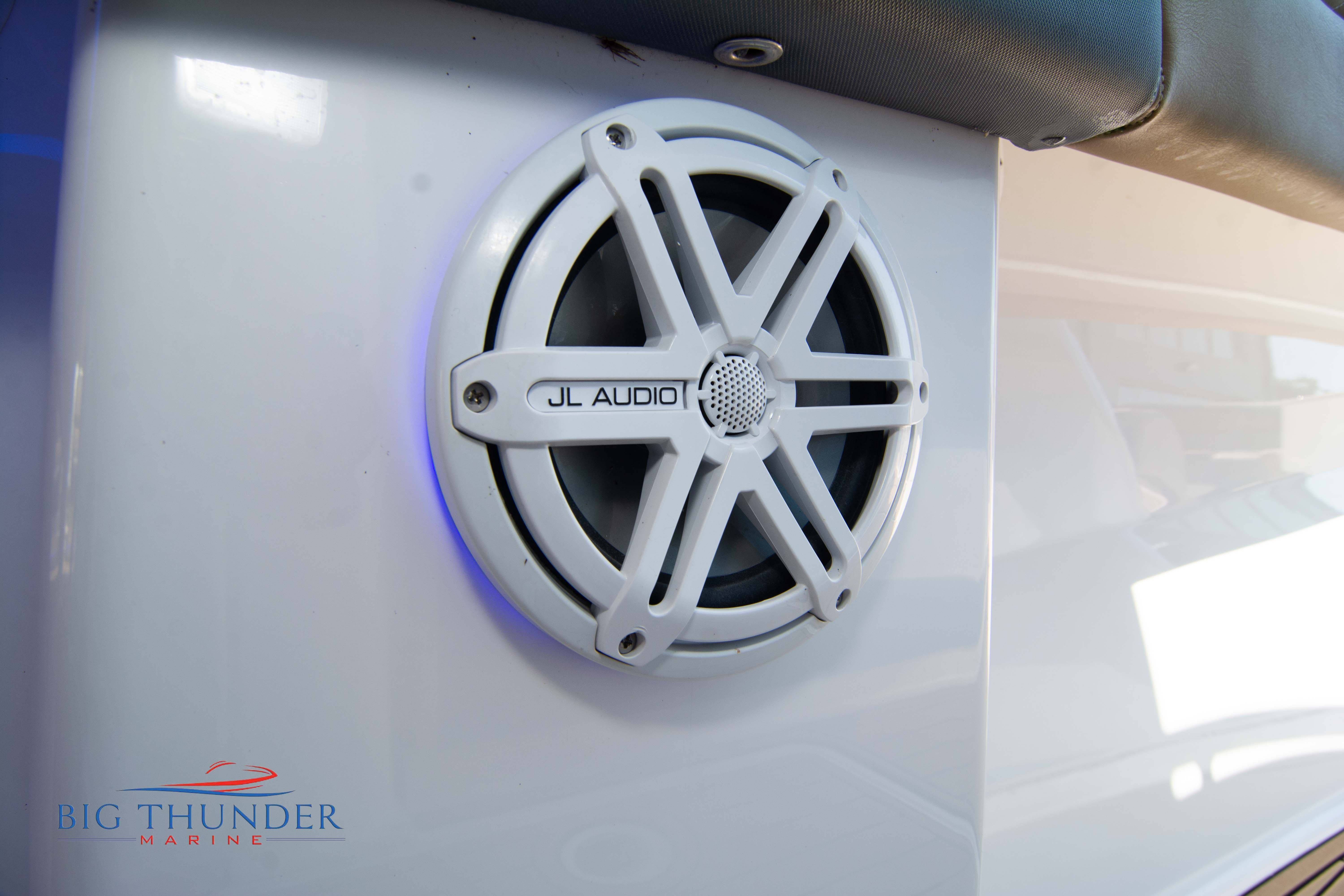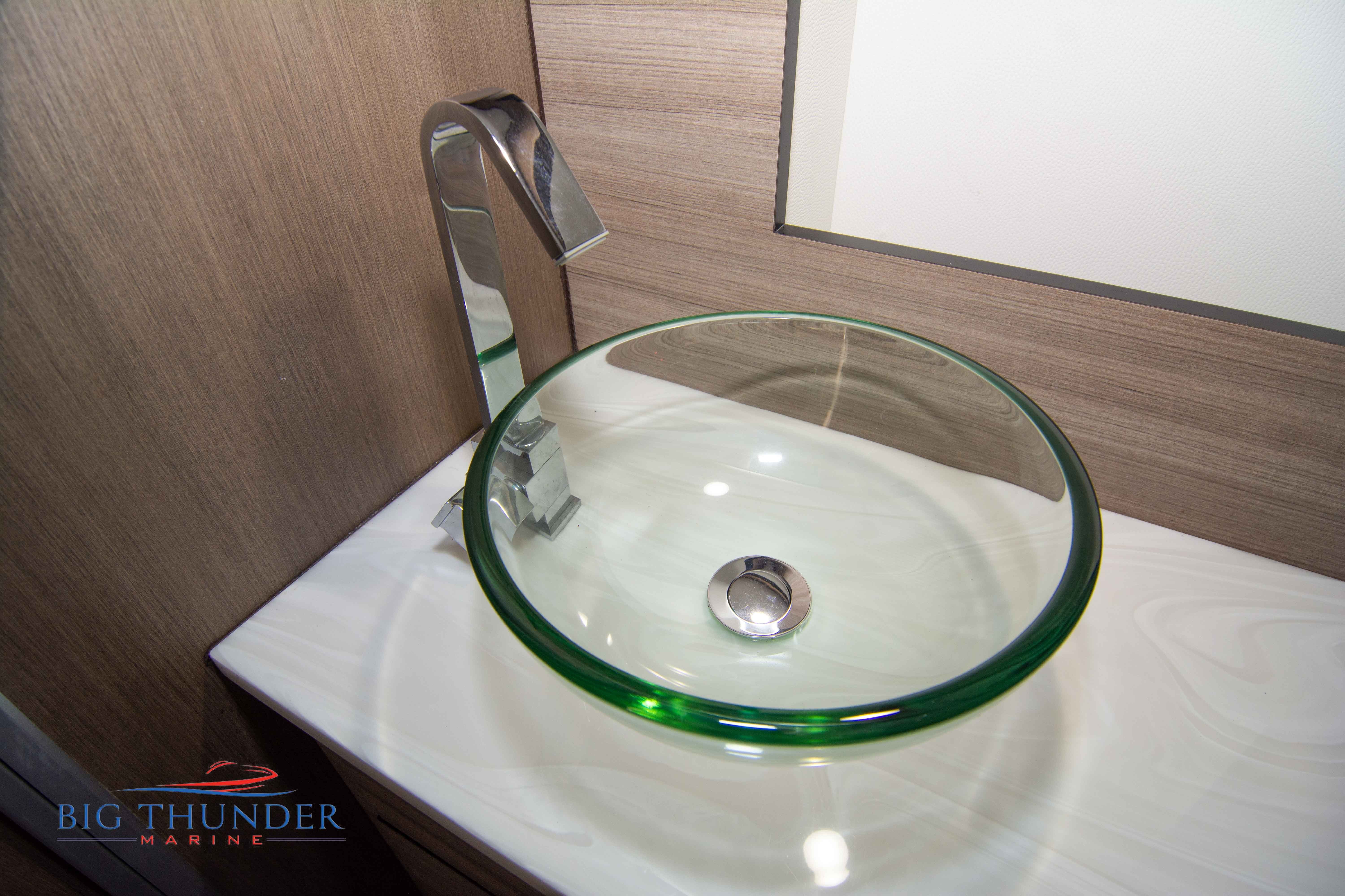 2019 Fountain 43 NX, Quad Verado 400R XM weather, Helm station contains head, sink, large v berth area, AC 30 amp dockside, lithium package w/50’ shore power cable, Mastervolt battery management system, Dive door with telescoping ladder, upgraded JL audio system, marine mat flooring, front lounge area, table, helm seat and dash cover, Triple Simrad 16’ displays, 24 HD domed radar, vhf radio with antenna and auto pilot. XM weather option. Panda diesel 5kw gen. AC/heat in cabin and at helm station. Isotherm refrigerators. Myco aluminium triple axle trailer available.