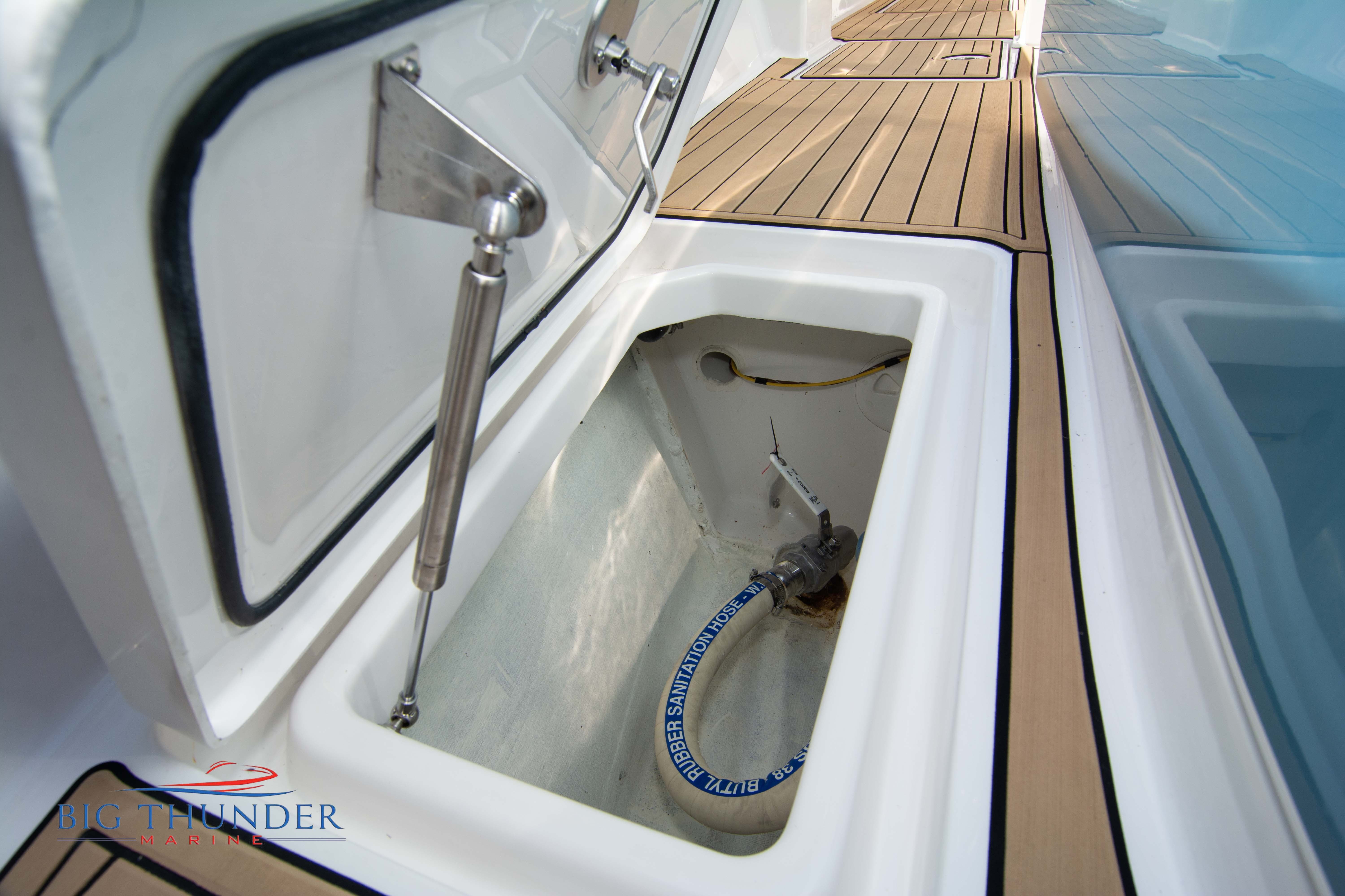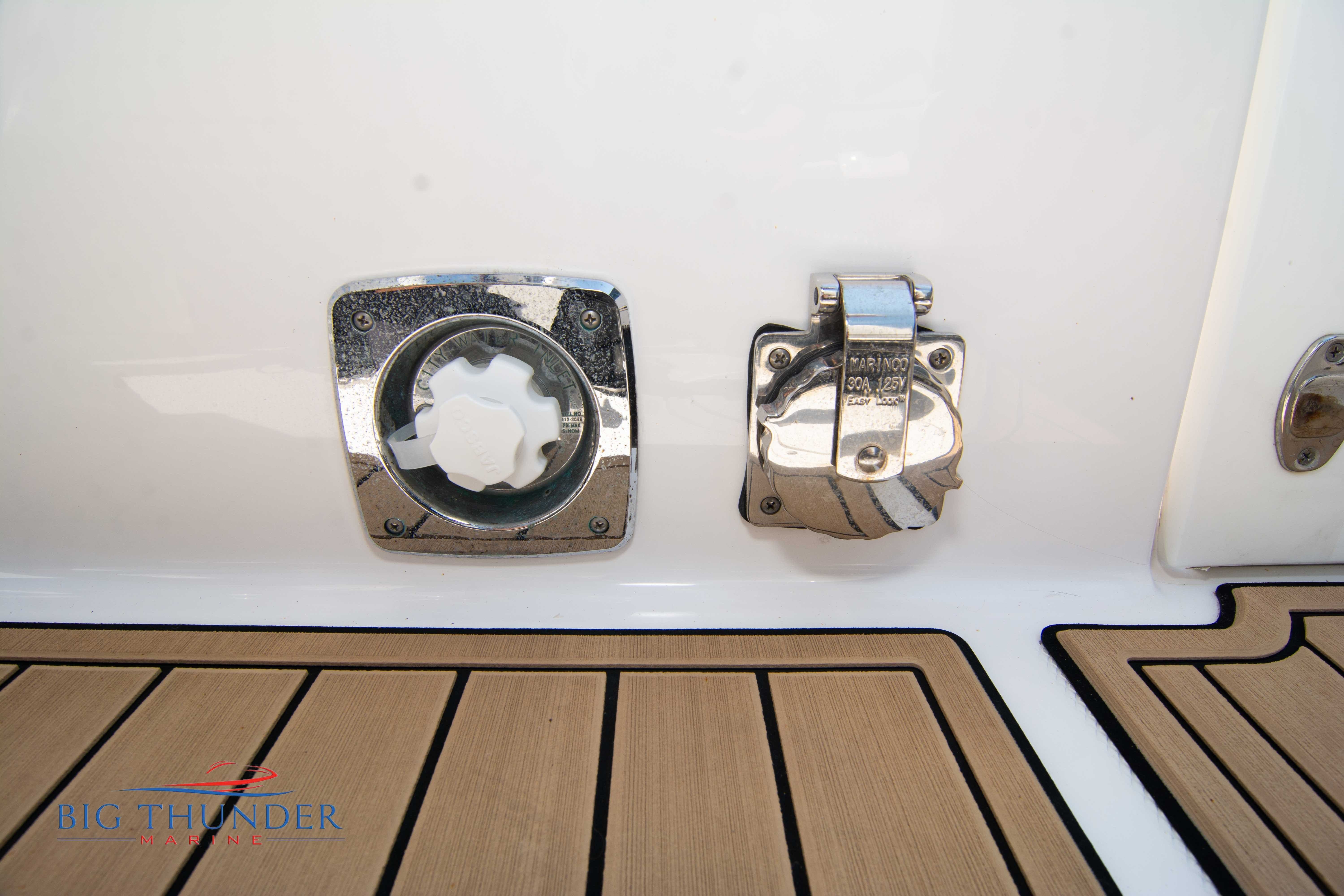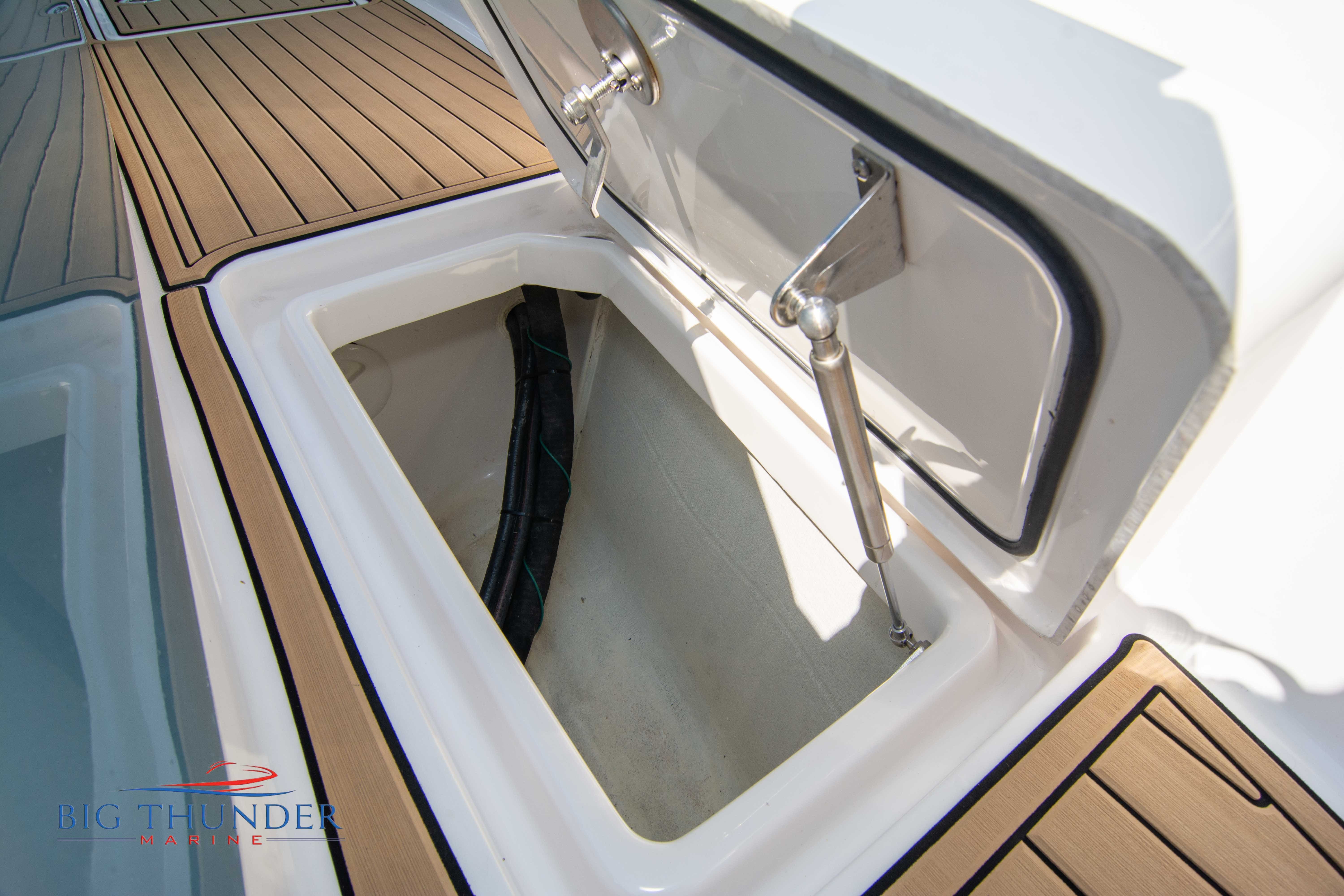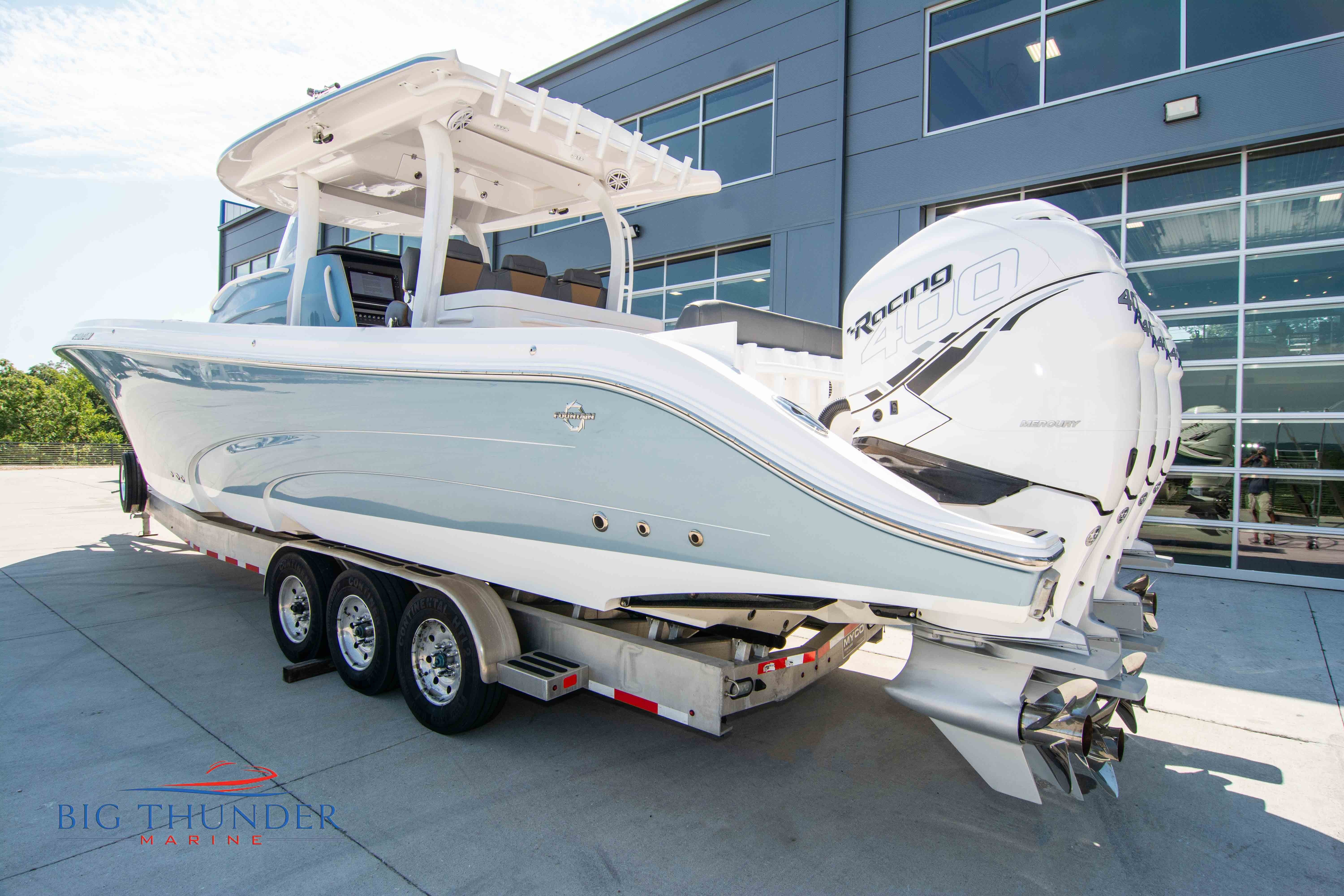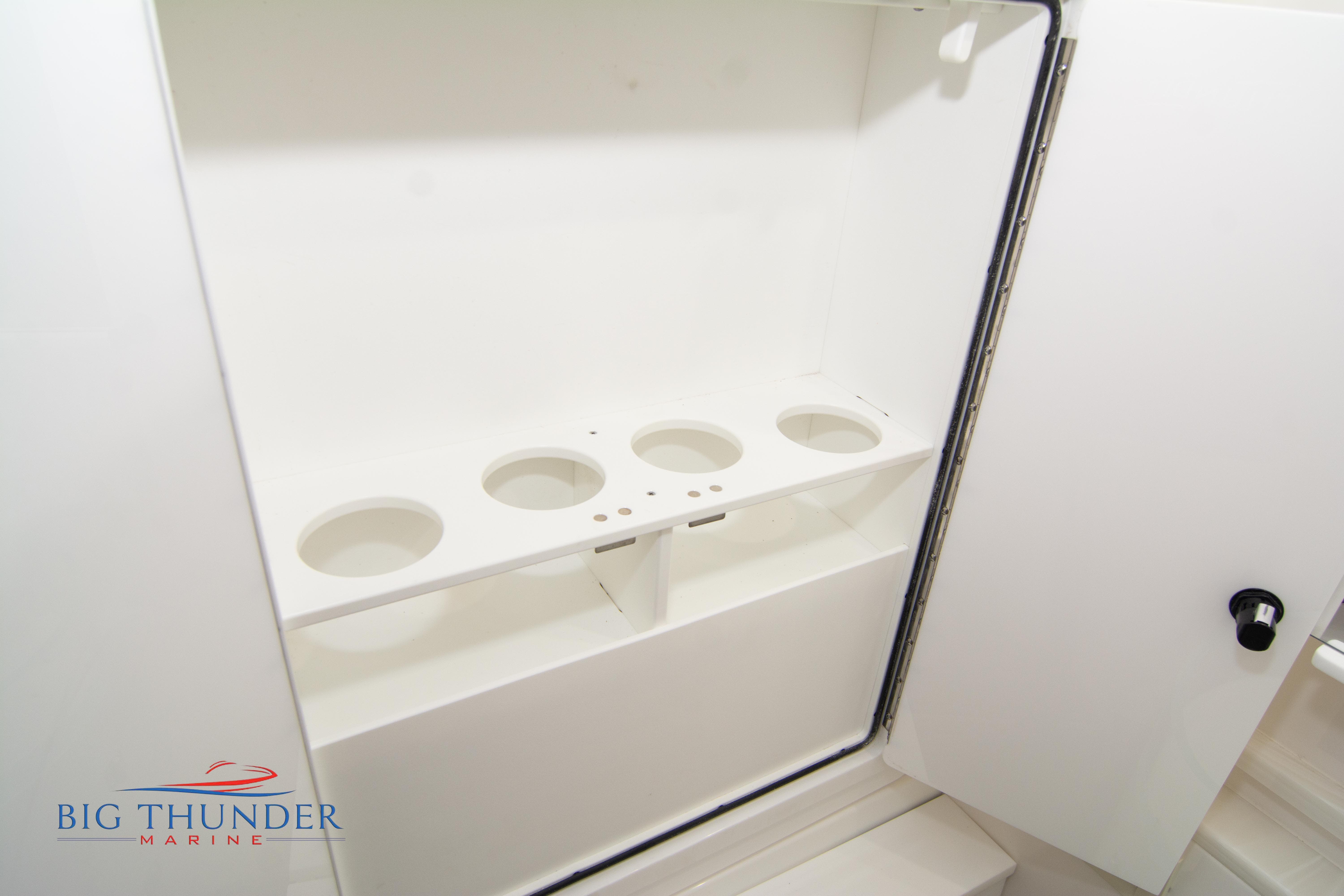 2019 Fountain 43 NX, Quad Verado 400R XM weather, Helm station contains head, sink, large v berth area, AC 30 amp dockside, lithium package w/50’ shore power cable, Mastervolt battery management system, Dive door with telescoping ladder, upgraded JL audio system, marine mat flooring, front lounge area, table, helm seat and dash cover, Triple Simrad 16’ displays, 24 HD domed radar, vhf radio with antenna and auto pilot. XM weather option. Panda diesel 5kw gen. AC/heat in cabin and at helm station. Isotherm refrigerators. Myco aluminium triple axle trailer available.