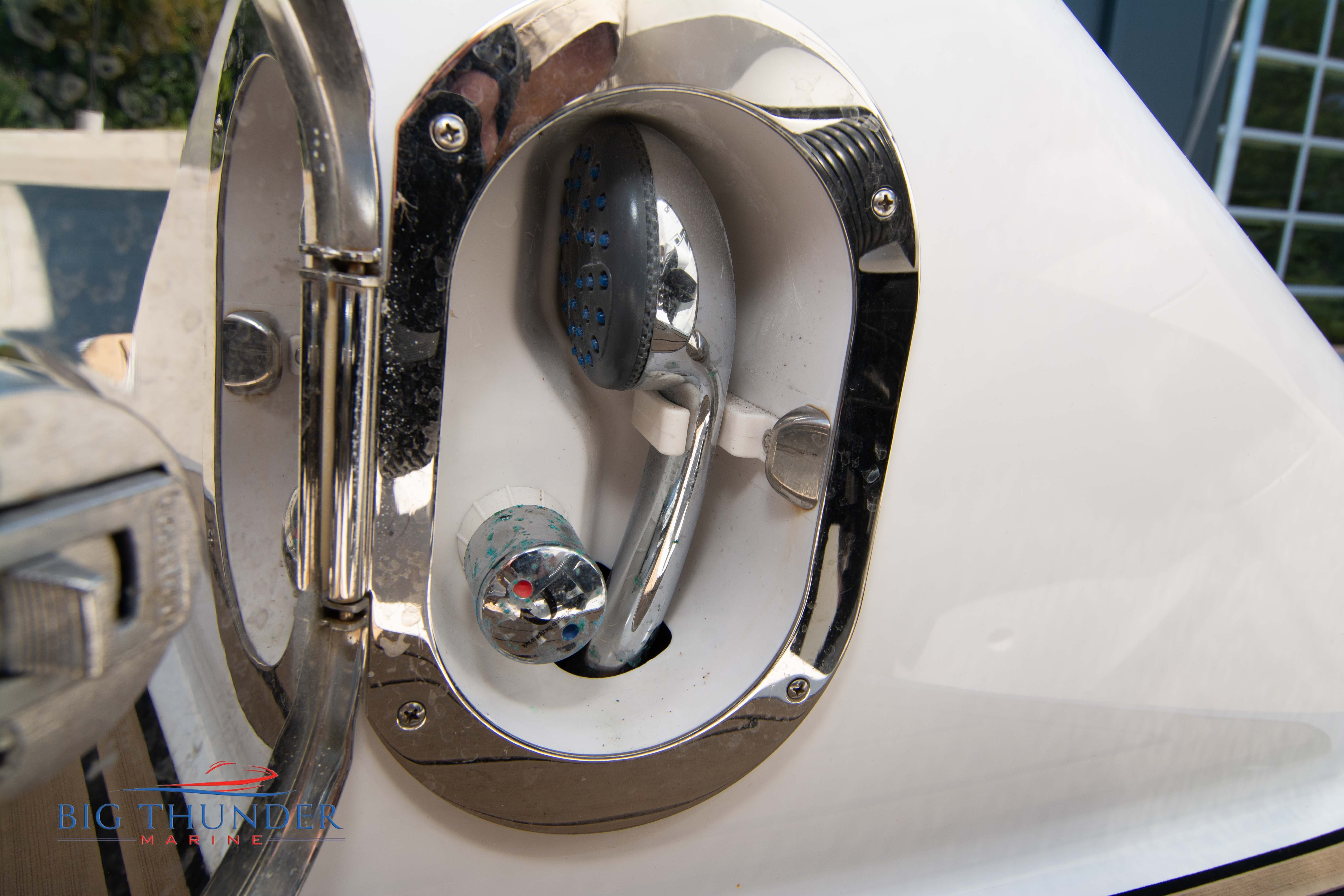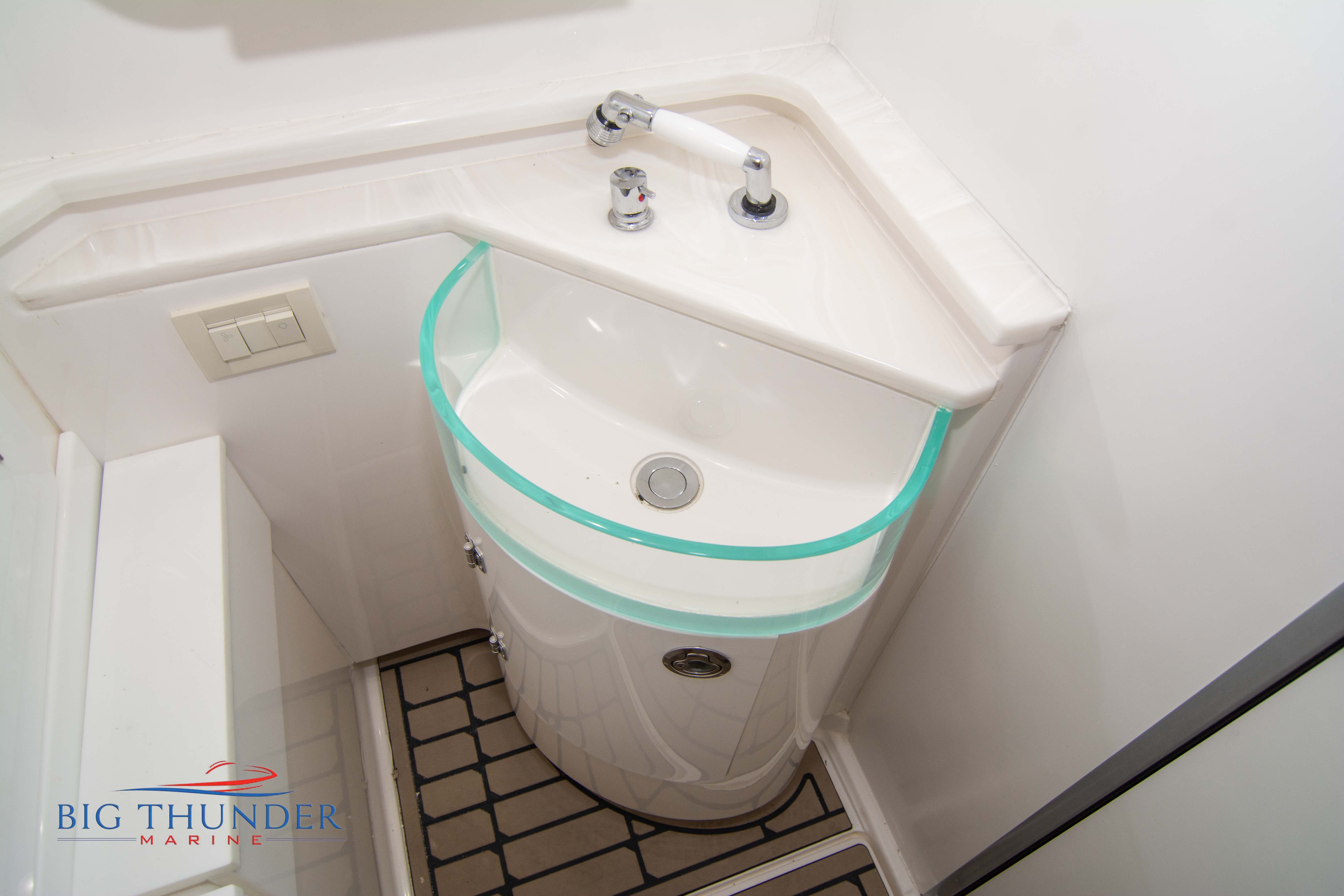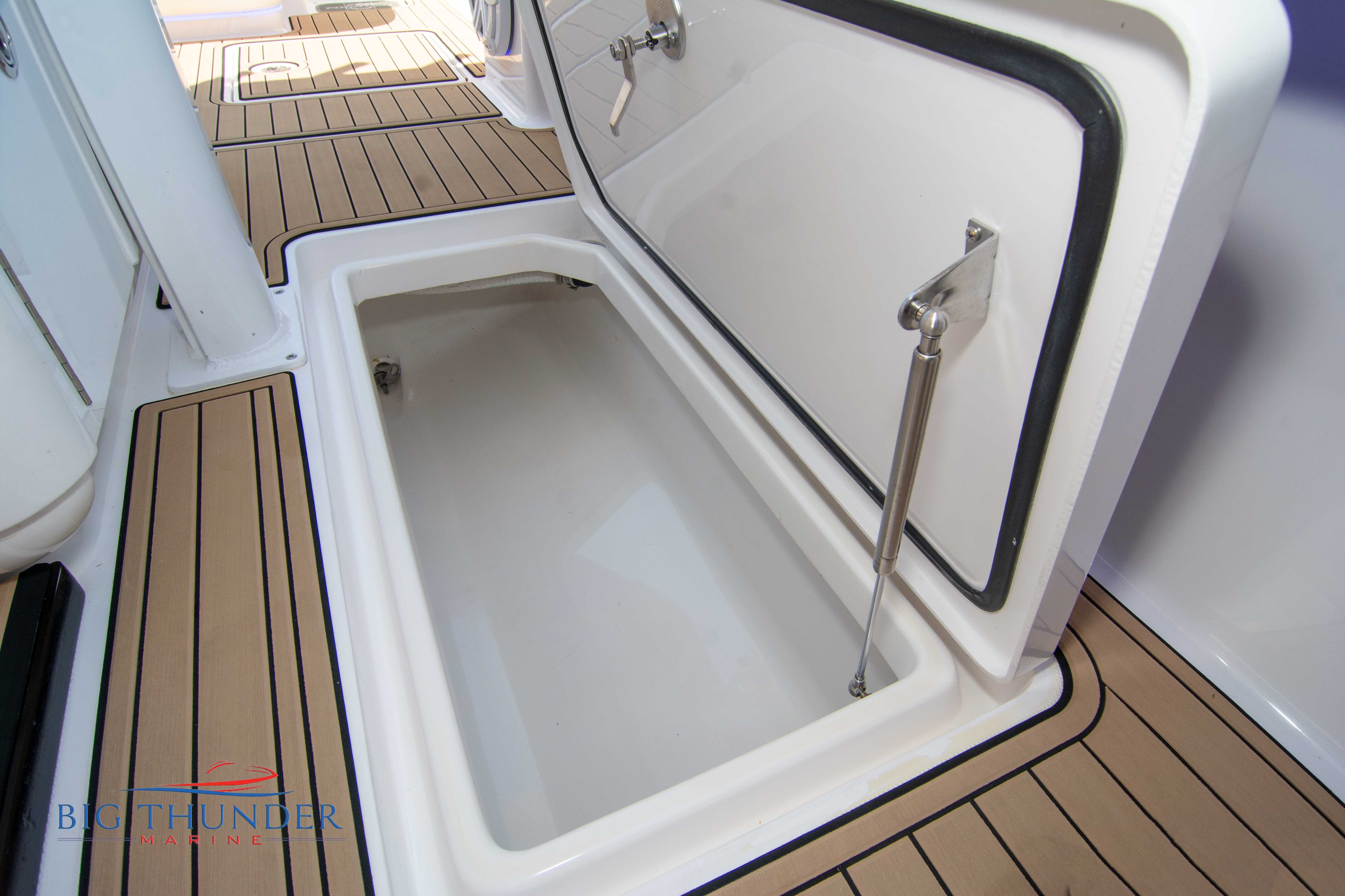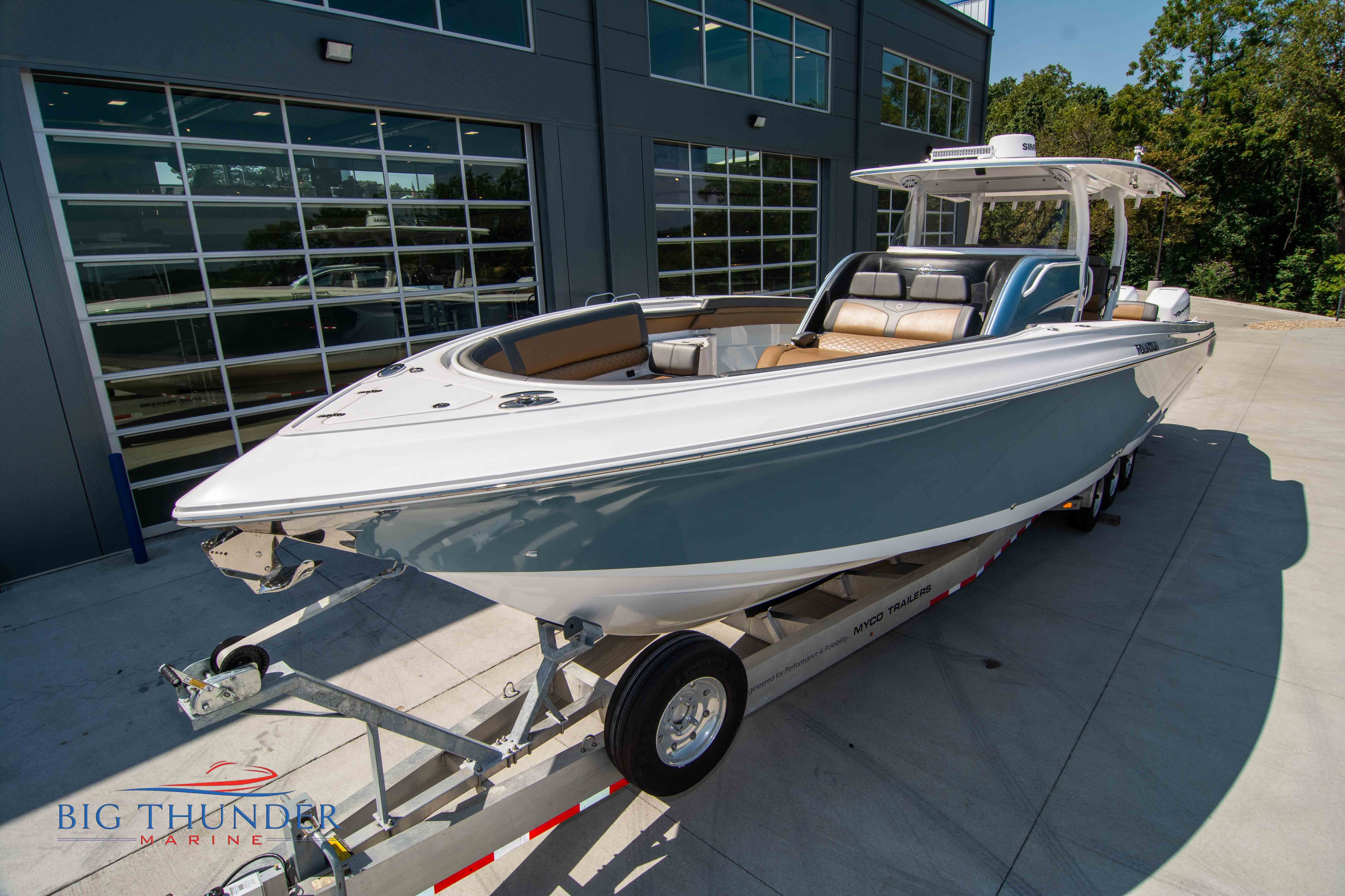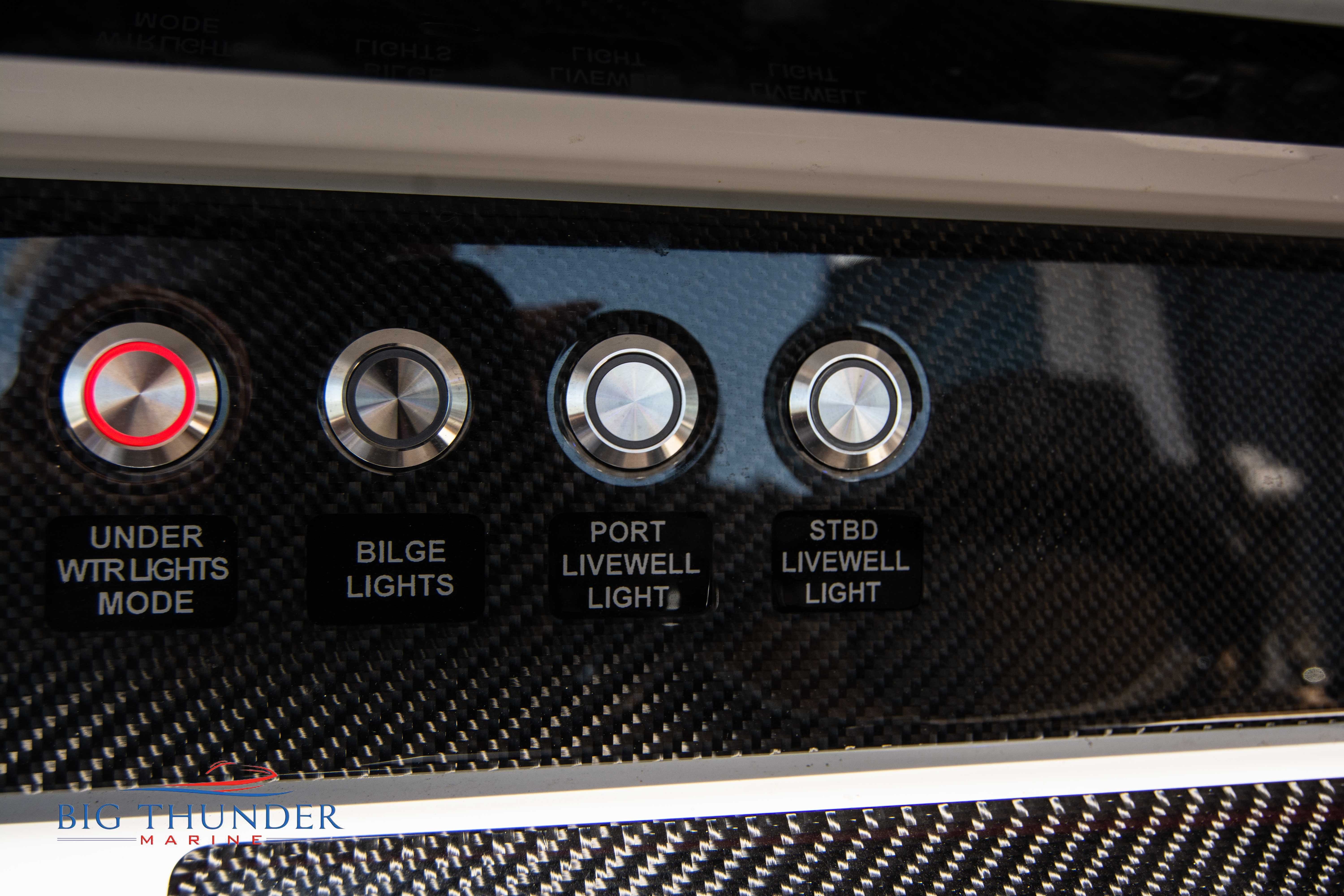 2019 Fountain 43 NX, Quad Verado 400R XM weather, Helm station contains head, sink, large v berth area, AC 30 amp dockside, lithium package w/50’ shore power cable, Mastervolt battery management system, Dive door with telescoping ladder, upgraded JL audio system, marine mat flooring, front lounge area, table, helm seat and dash cover, Triple Simrad 16’ displays, 24 HD domed radar, vhf radio with antenna and auto pilot. XM weather option. Panda diesel 5kw gen. AC/heat in cabin and at helm station. Isotherm refrigerators. Myco aluminium triple axle trailer available.