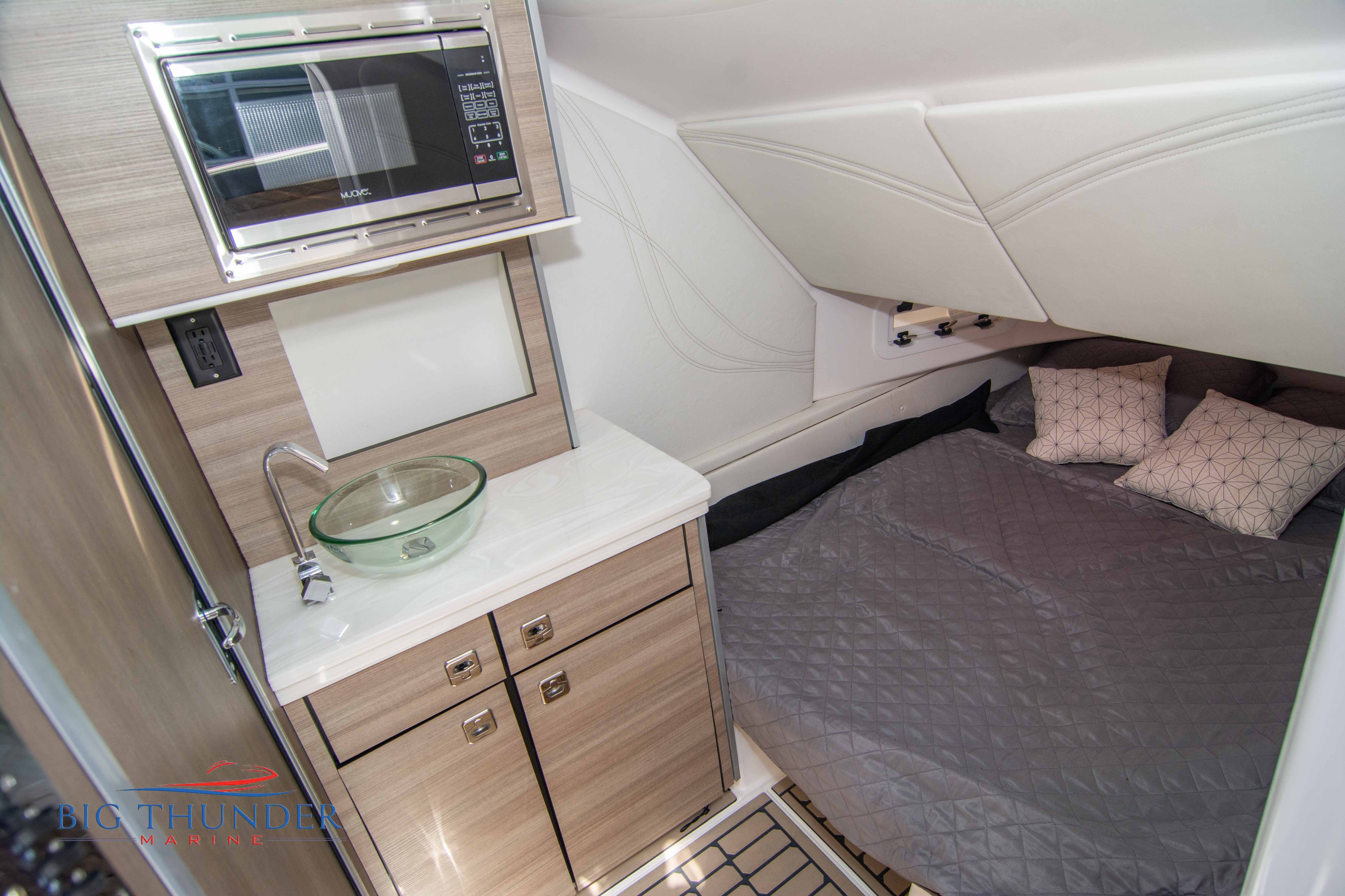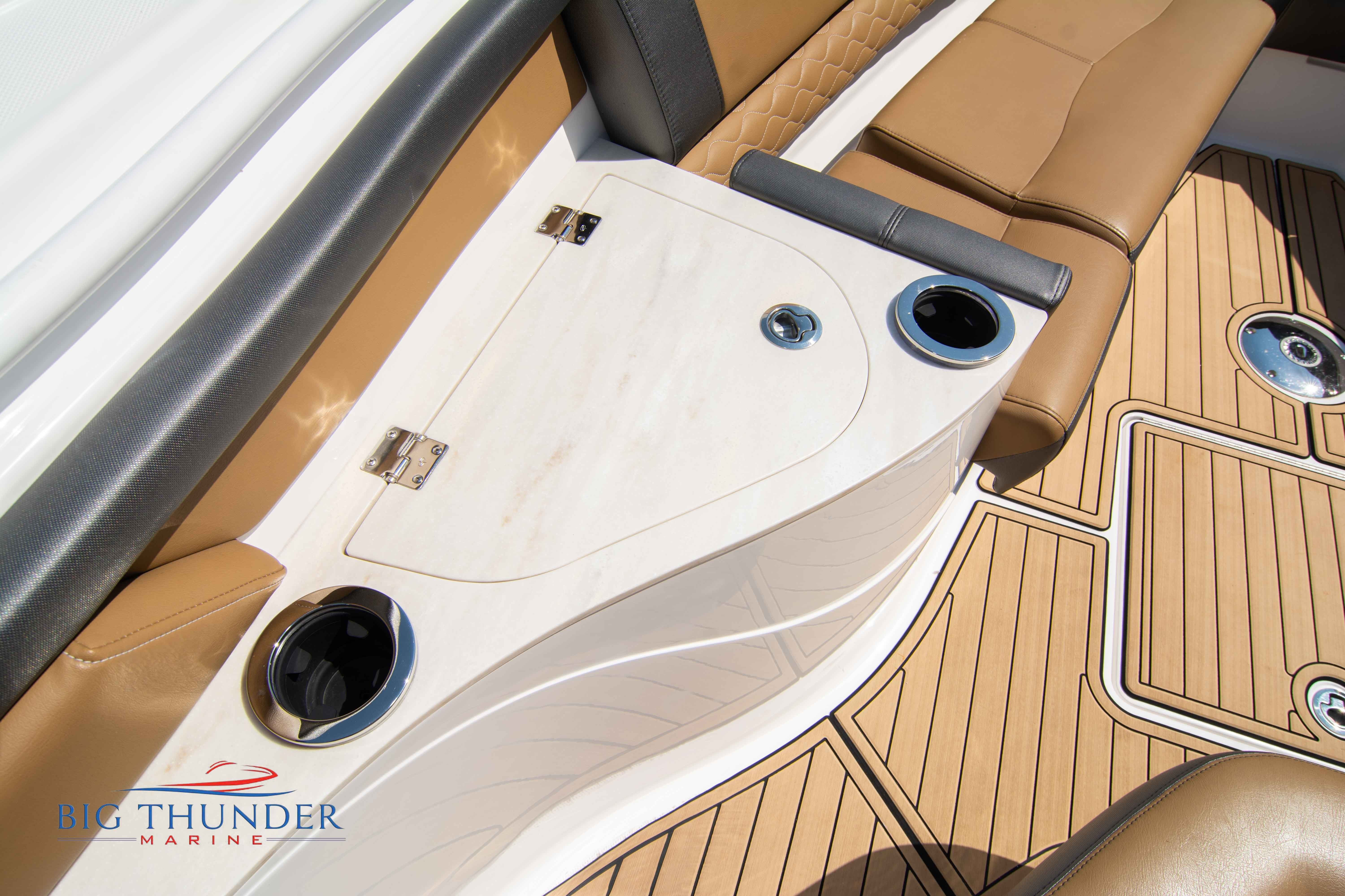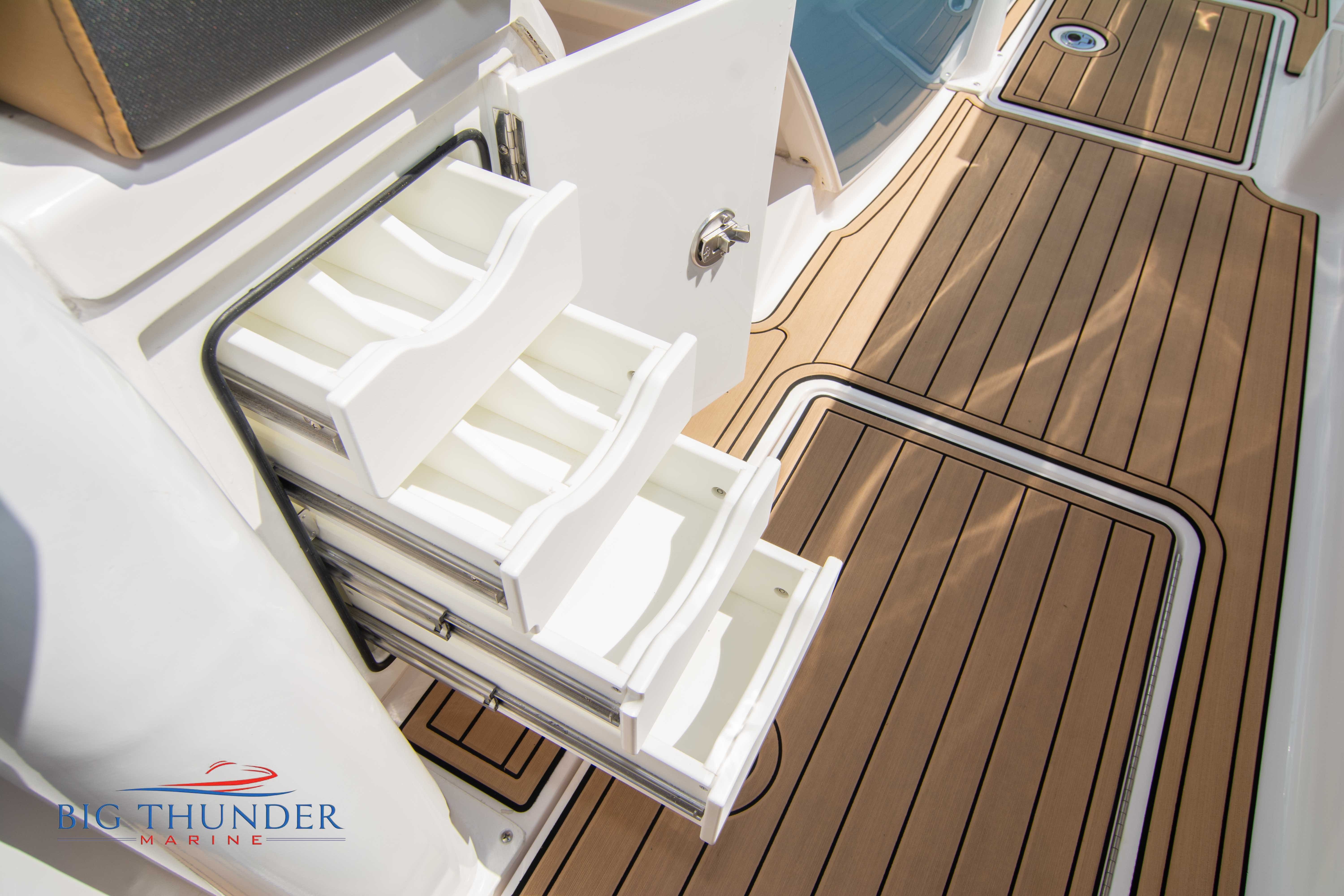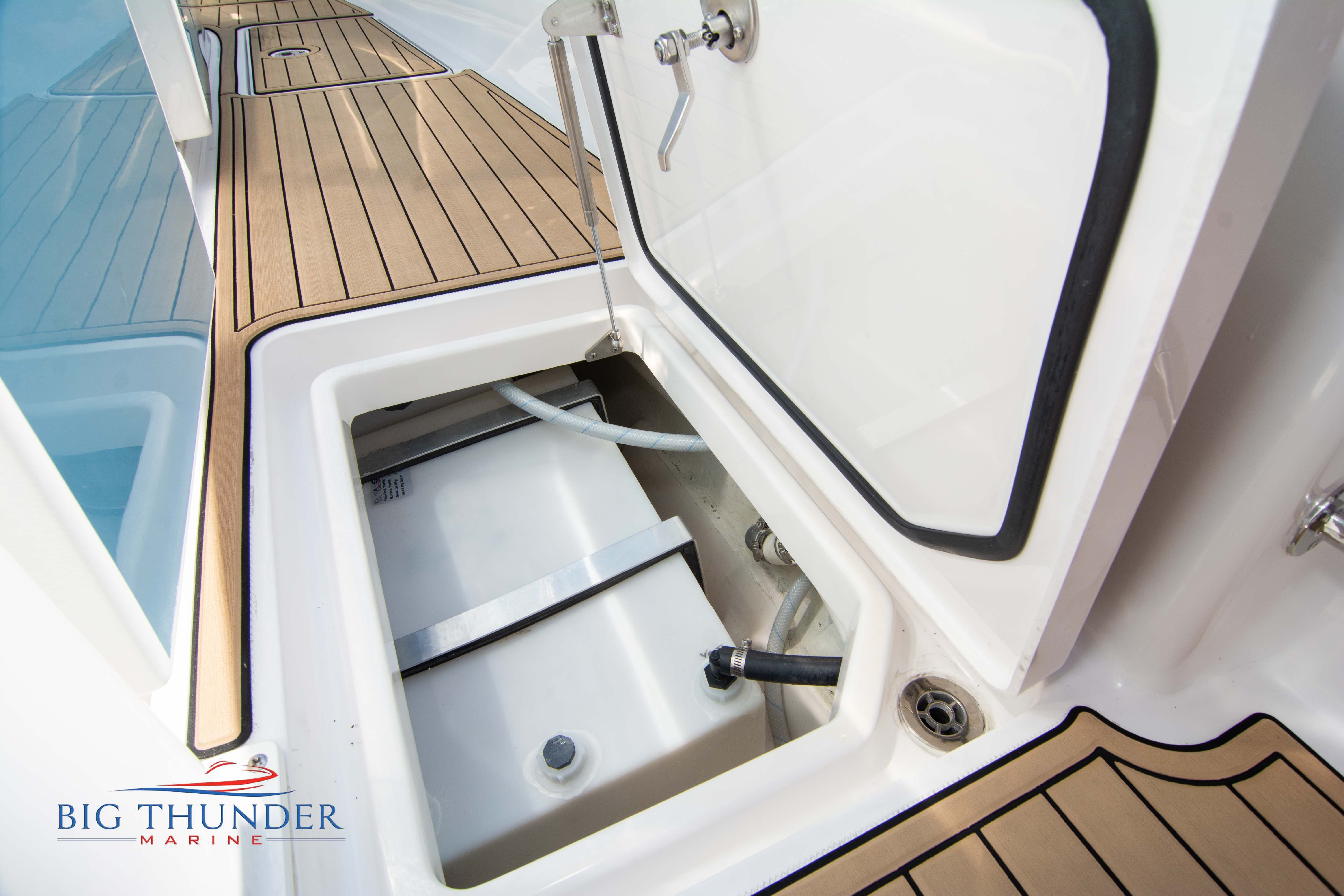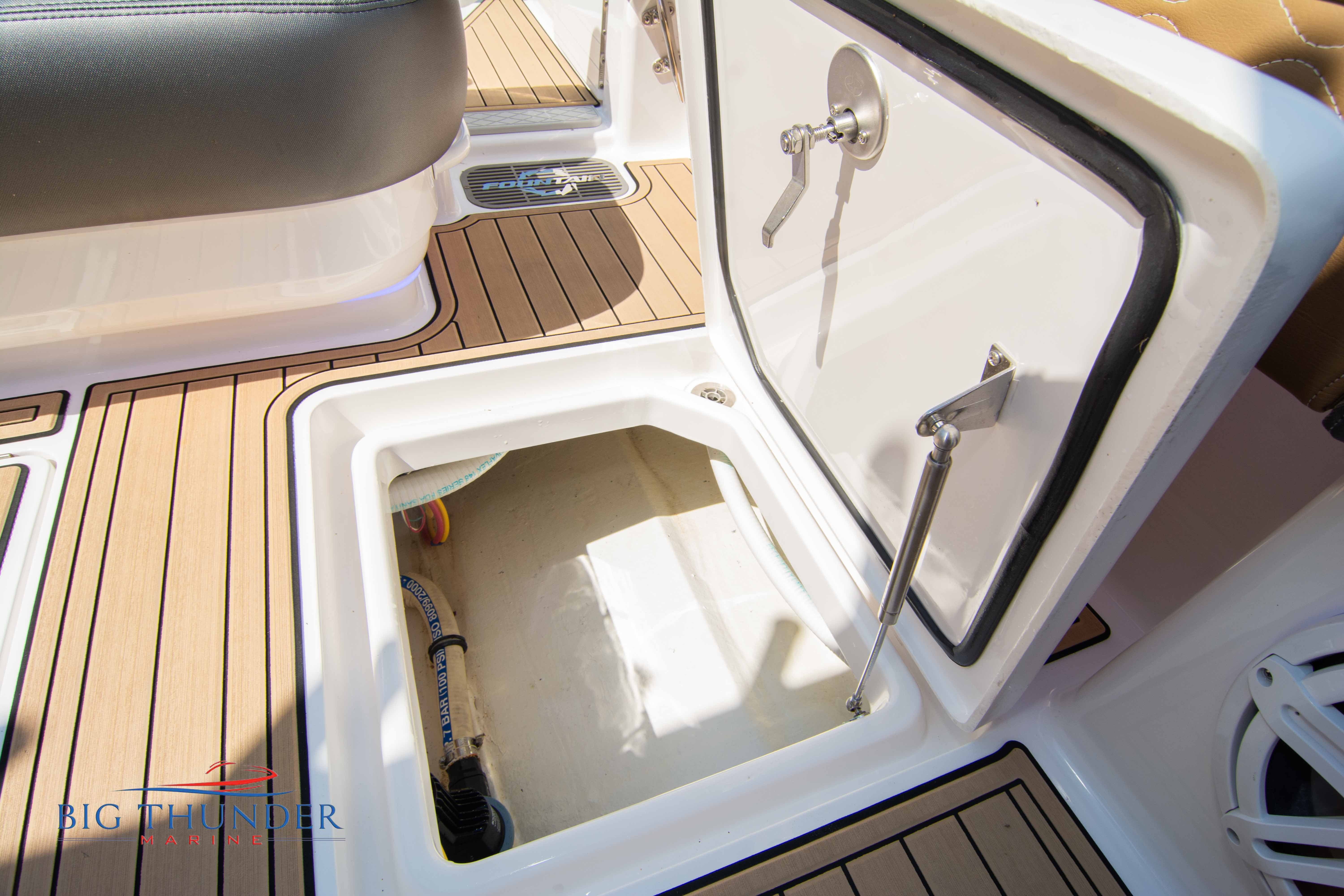 2019 Fountain 43 NX, Quad Verado 400R XM weather, Helm station contains head, sink, large v berth area, AC 30 amp dockside, lithium package w/50’ shore power cable, Mastervolt battery management system, Dive door with telescoping ladder, upgraded JL audio system, marine mat flooring, front lounge area, table, helm seat and dash cover, Triple Simrad 16’ displays, 24 HD domed radar, vhf radio with antenna and auto pilot. XM weather option. Panda diesel 5kw gen. AC/heat in cabin and at helm station. Isotherm refrigerators. Myco aluminium triple axle trailer available.