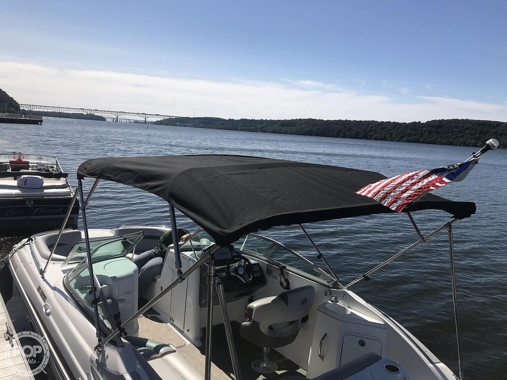 Only 32 freshwater hours on engine! Center cushion upgrade! Bimini is extra length, shades most of boat!