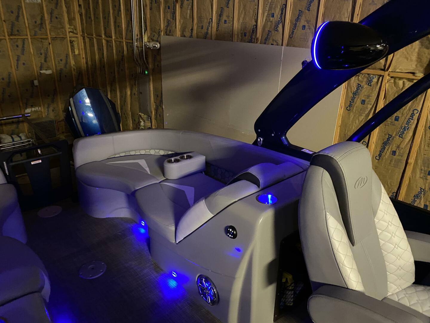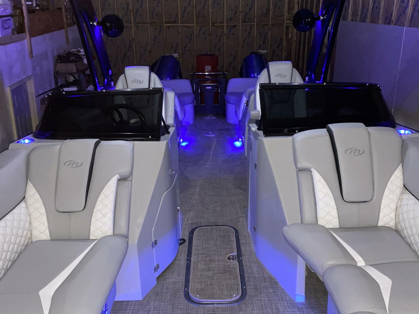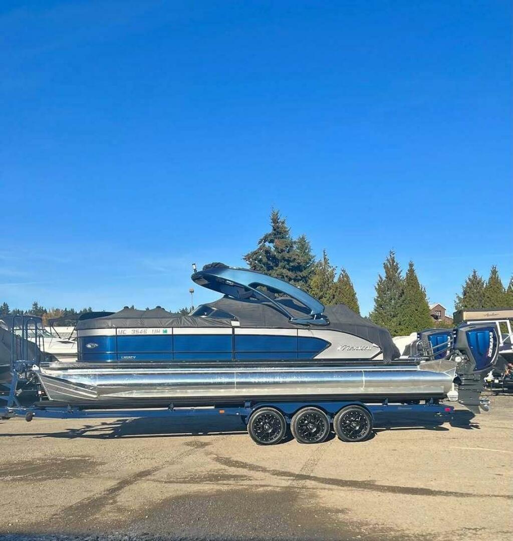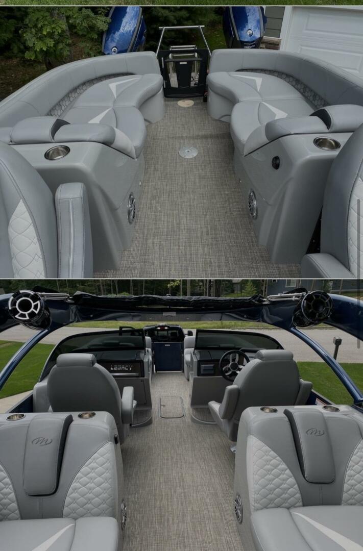 Manitou offers one of the most dramatic pontoon configurations on the market. Two 25-inch outer pontoons straddle a 27-inch center pontoon lowered a full 5¼ inches below the outer tubes. The effect is to give the Legacy the handling of a V-hull. Crank the wheel and the craft sweeps neatly into a turn with a familiar inside lean. Paired with twin Evinrude 300 outboards, the 25 Legacy also powered onto plane in under 4 seconds and passed the 30 mph benchmark in 6 seconds. Top speed on our test day peaked at 63.9 mph.Performance and handling at speed are Manitou’s calling card, but the low-speed maneuverability made possible by Evinrude’s i-Dock joystick system steals the spotlight when docking. By allowing both engines to turn independently and linking those engines to an intuitive joystick via some well-written software, docking is reduced to a simple push, pull and twist of a single controller. We literally nudged the joystick in the direction we wanted the boat to move and brought the Legacy perfectly into the dock despite high winds attempting to grab the boat like a sail. Impressive.1. Design and Size:The Manitou 25LT is typically 25 feet in length, offering ample deck space for passengers.The design is sleek and modern, often featuring eye-catching graphics and a variety of color options.High-quality materials are used in its construction for durability and longevity.2. Seating and Layout:The Manitou 25LT is designed for comfort and socializing, with luxurious seating arrangements.You'll find plush, ergonomic seats throughout the boat, including helm seats, loungers, and often a comfortable L-shaped lounge area.3. Performance:Equipped with Twin Evinrude 300 outboard engine, this boat offers exceptional power and performance.The 600-horsepower engine allows for quick acceleration, high-speed cruising, and is suitable for various water activities, including watersports and tubing.4. Features:The boat is equipped with modern amenities, such as a stylish helm station with a well-designed instrument panel.Features include a premium sound system, integrated GPS navigation, and LED lighting for an enhanced boating experience.Storage compartments are usually plentiful, ensuring you have space for all your gear and supplies.5. Versatility:The Manitou 25LT is a versatile pontoon boat suitable for various activities, from leisurely cruising and fishing to entertaining friends and family.It may include a swim ladder and a convenient boarding area for water access.6. Quality and Craftsmanship:Manitou is known for its commitment to quality and craftsmanship, and this model typically reflects that dedication with attention to detail.