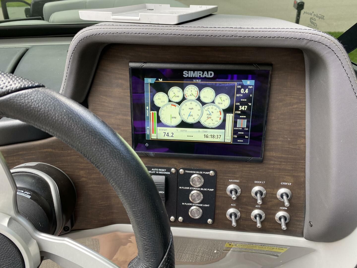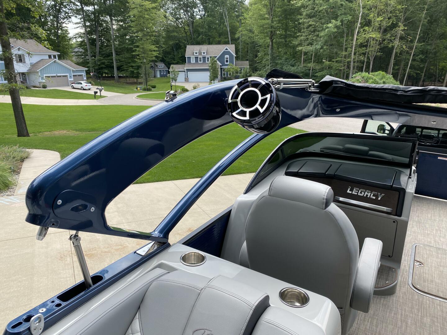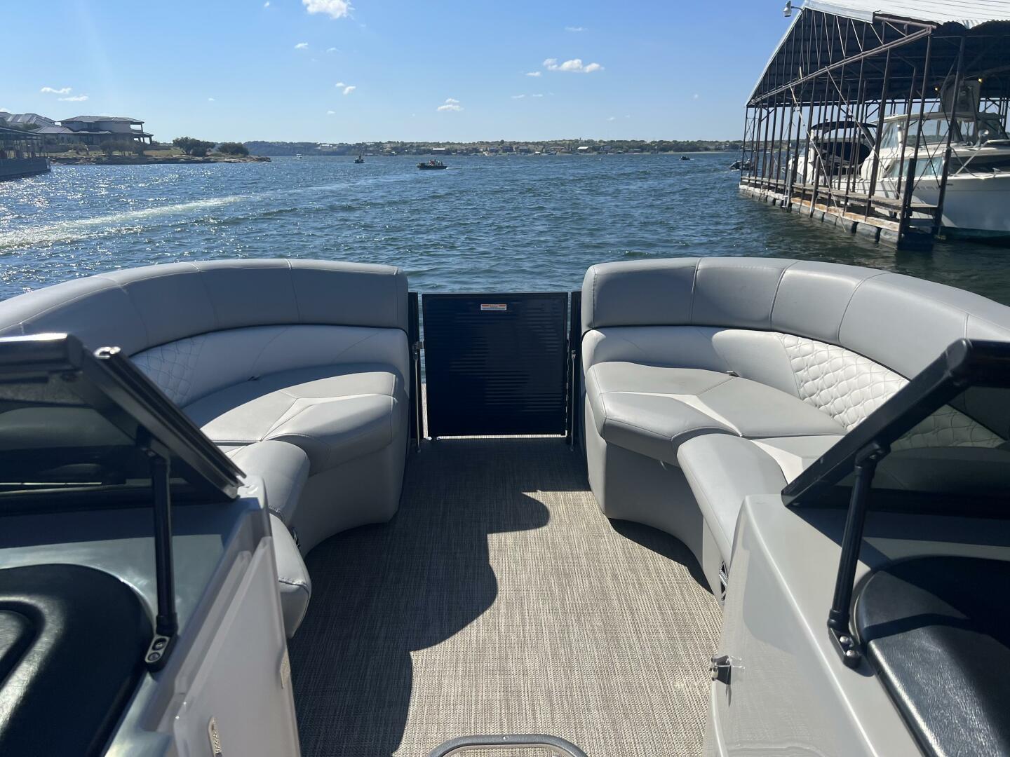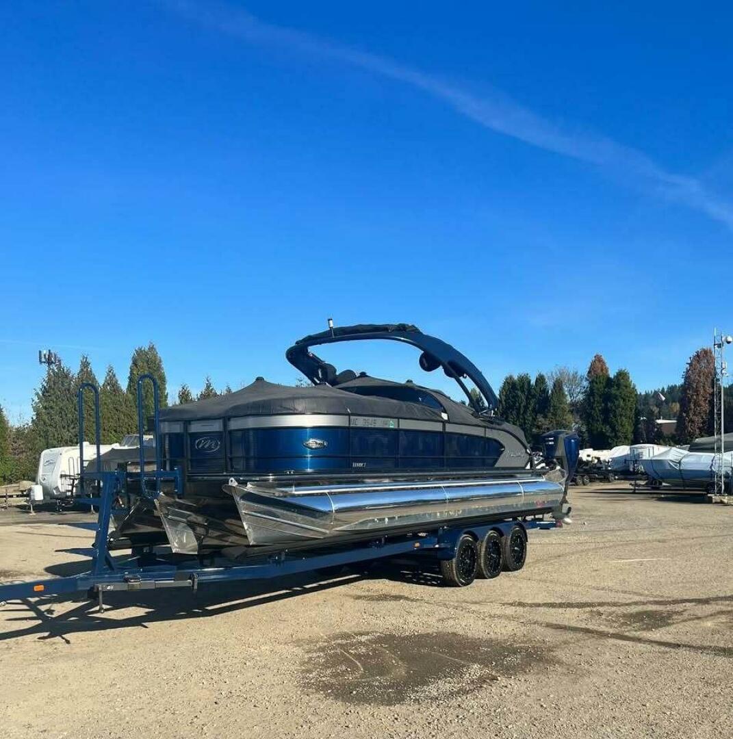 Manitou offers one of the most dramatic pontoon configurations on the market. Two 25-inch outer pontoons straddle a 27-inch center pontoon lowered a full 5¼ inches below the outer tubes. The effect is to give the Legacy the handling of a V-hull. Crank the wheel and the craft sweeps neatly into a turn with a familiar inside lean. Paired with twin Evinrude 300 outboards, the 25 Legacy also powered onto plane in under 4 seconds and passed the 30 mph benchmark in 6 seconds. Top speed on our test day peaked at 63.9 mph.Performance and handling at speed are Manitou’s calling card, but the low-speed maneuverability made possible by Evinrude’s i-Dock joystick system steals the spotlight when docking. By allowing both engines to turn independently and linking those engines to an intuitive joystick via some well-written software, docking is reduced to a simple push, pull and twist of a single controller. We literally nudged the joystick in the direction we wanted the boat to move and brought the Legacy perfectly into the dock despite high winds attempting to grab the boat like a sail. Impressive.1. Design and Size:The Manitou 25LT is typically 25 feet in length, offering ample deck space for passengers.The design is sleek and modern, often featuring eye-catching graphics and a variety of color options.High-quality materials are used in its construction for durability and longevity.2. Seating and Layout:The Manitou 25LT is designed for comfort and socializing, with luxurious seating arrangements.You'll find plush, ergonomic seats throughout the boat, including helm seats, loungers, and often a comfortable L-shaped lounge area.3. Performance:Equipped with Twin Evinrude 300 outboard engine, this boat offers exceptional power and performance.The 600-horsepower engine allows for quick acceleration, high-speed cruising, and is suitable for various water activities, including watersports and tubing.4. Features:The boat is equipped with modern amenities, such as a stylish helm station with a well-designed instrument panel.Features include a premium sound system, integrated GPS navigation, and LED lighting for an enhanced boating experience.Storage compartments are usually plentiful, ensuring you have space for all your gear and supplies.5. Versatility:The Manitou 25LT is a versatile pontoon boat suitable for various activities, from leisurely cruising and fishing to entertaining friends and family.It may include a swim ladder and a convenient boarding area for water access.6. Quality and Craftsmanship:Manitou is known for its commitment to quality and craftsmanship, and this model typically reflects that dedication with attention to detail.