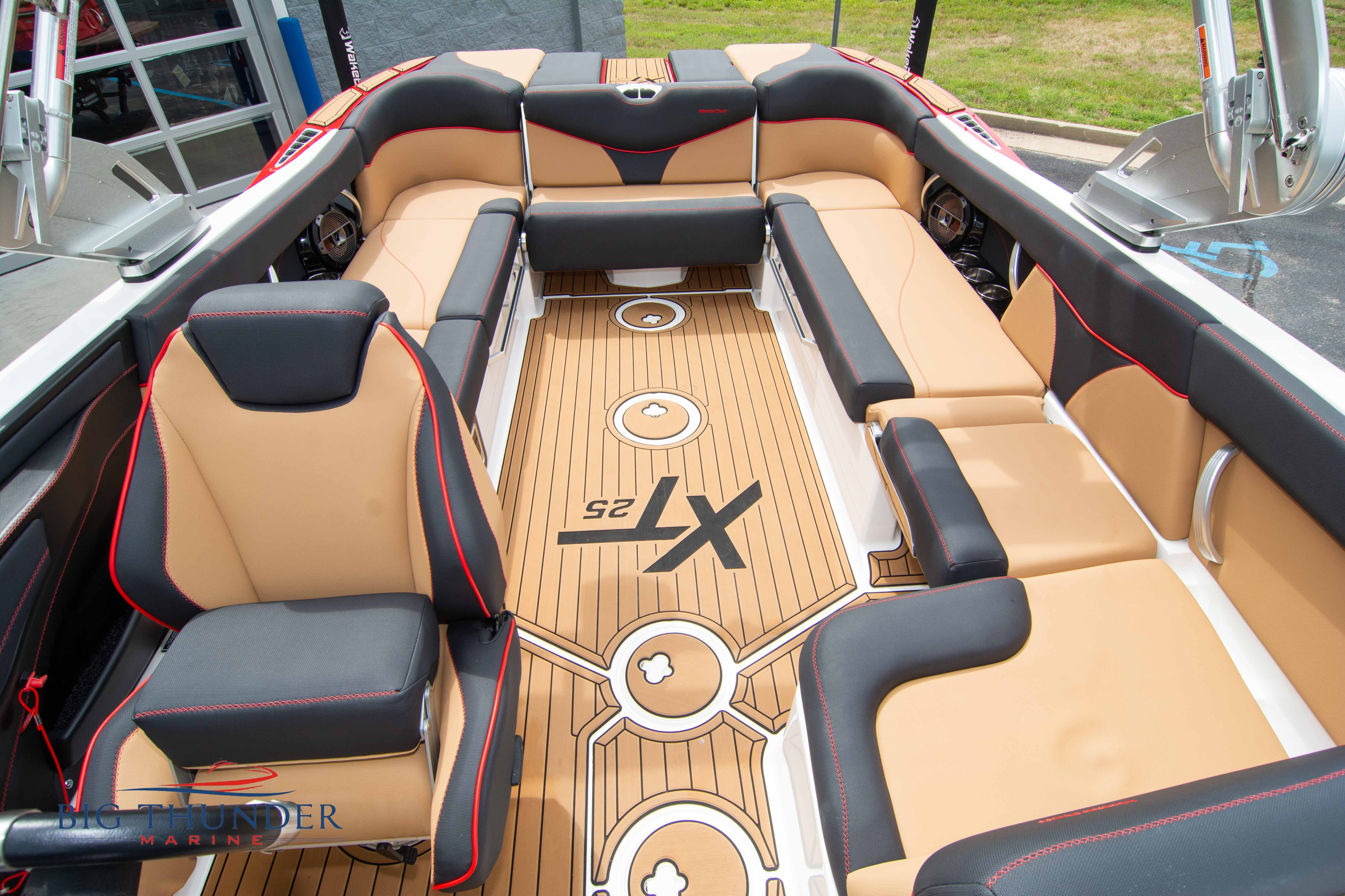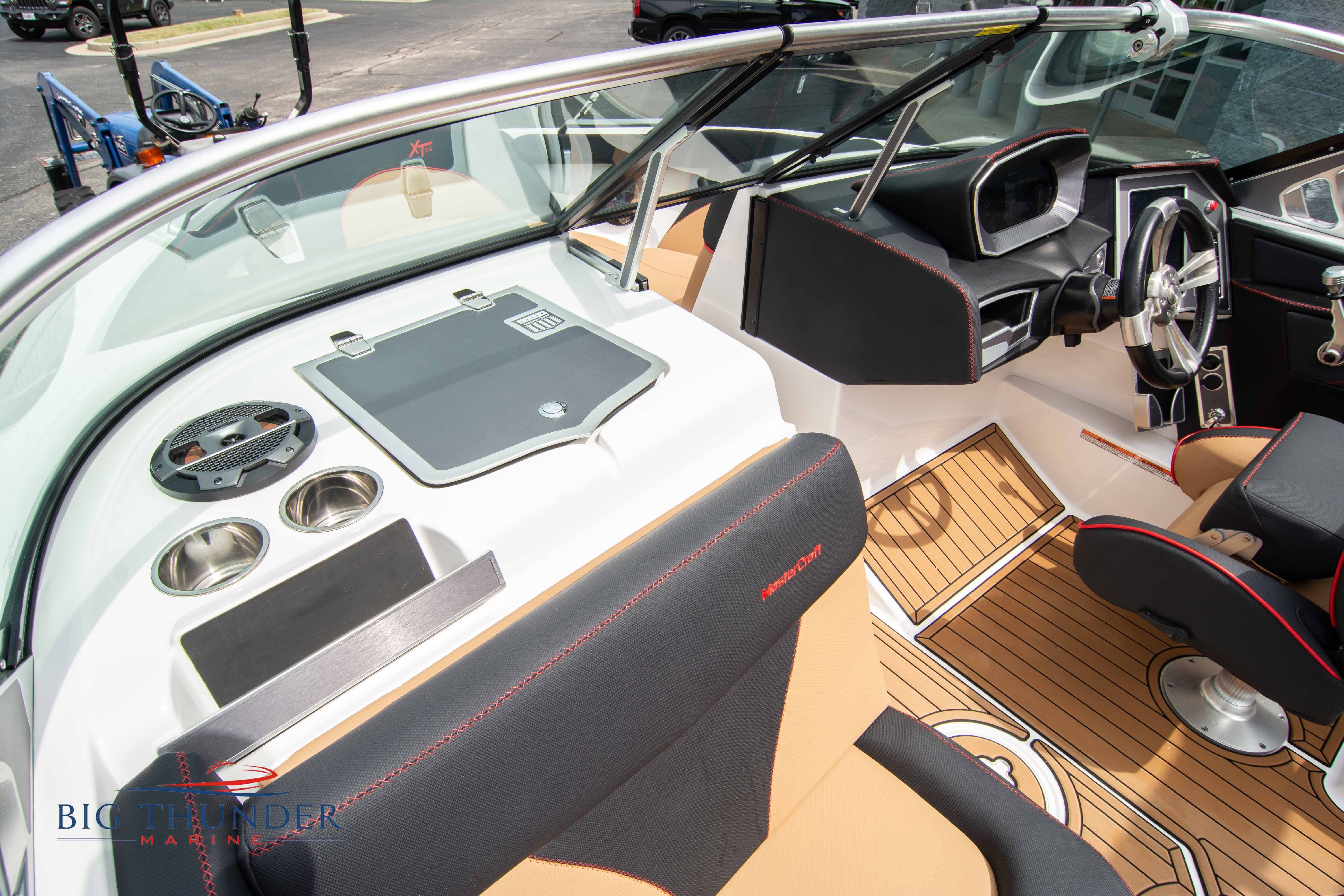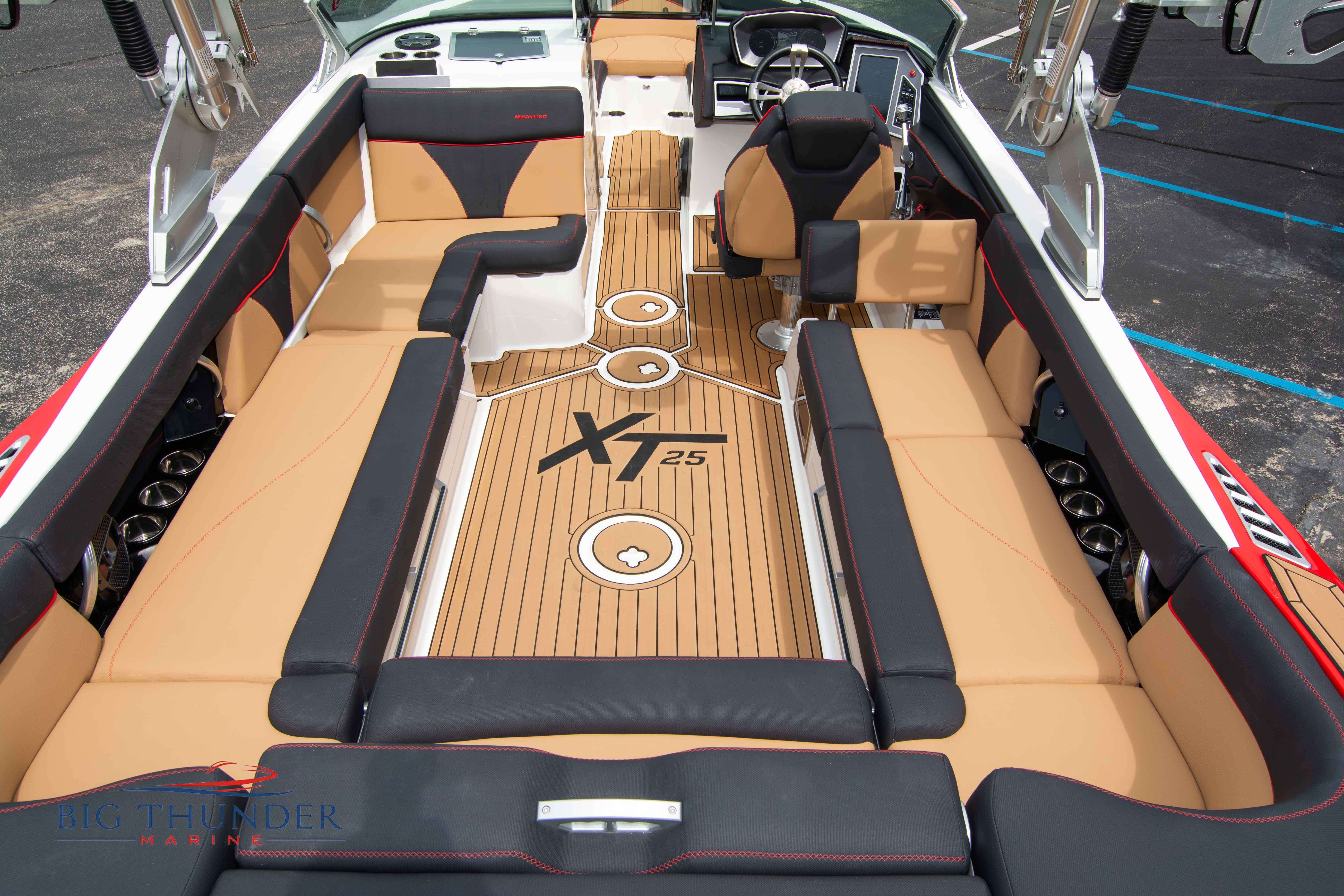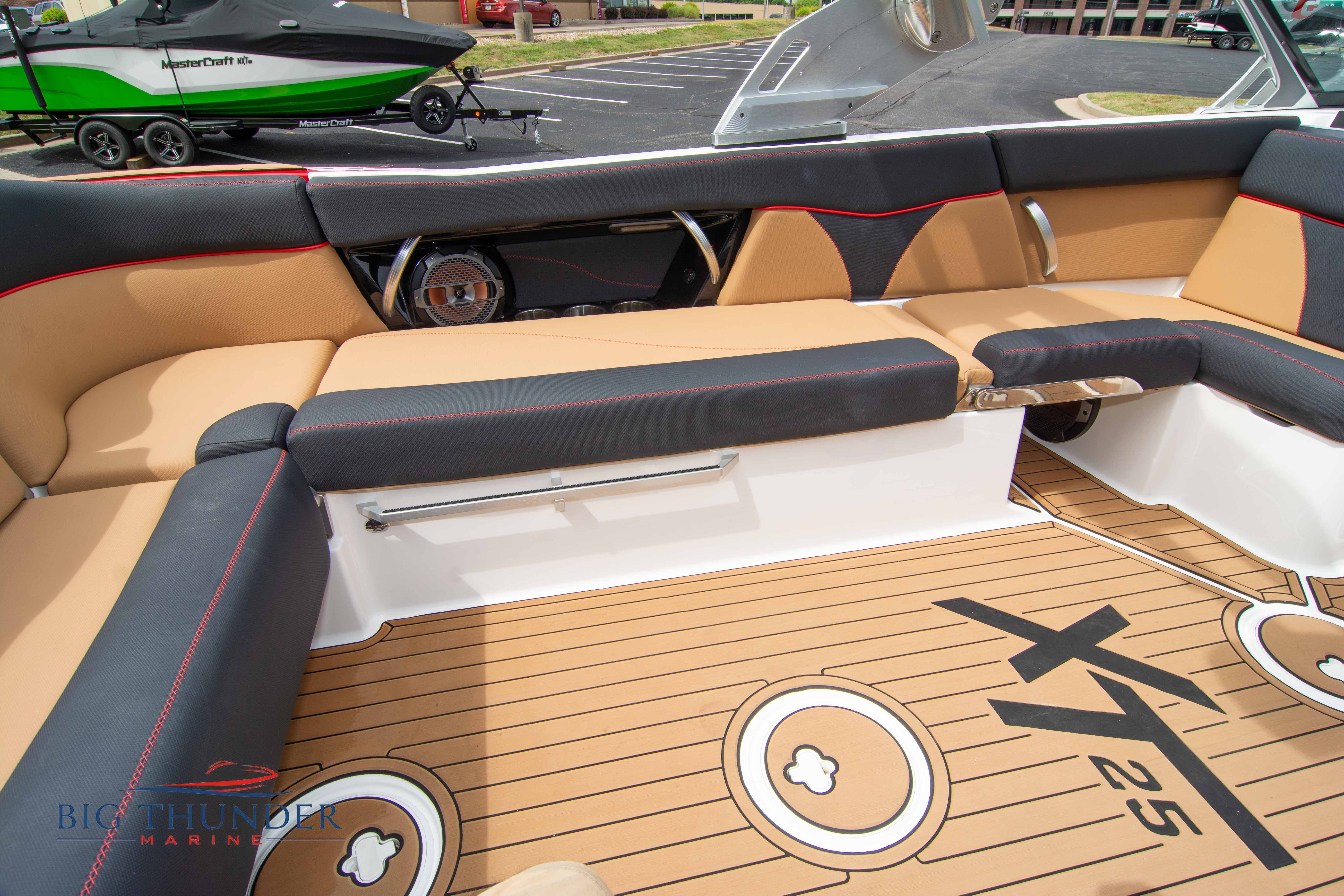 This is a like new 2019 MasterCraft XT25 with only 49 Hours! This boat has transferable MasterCare warranty Available until 2024. This boats options include: Cool feel interior, x baseball stitch, seadek floor covering, Ilmor 6000 GDI (430hp at prop only 49 hours), clear view billet panoramic mirror, BTS windshield, swim platform canvas, comfort and convenience package, gen 2 surf system with s2s switching capabilities, fast fill ballast, zft4 tower, surf surf racks, 2 s85 black billy klipsch tower speakers, dome light, premium audio and dual screen dash, transom stereo remote, billet walk through door, starboard pop up seat back, transom walk through, transom scratch protection, 110 volt battery charger, and matching tandem axle mastercraft trailer.