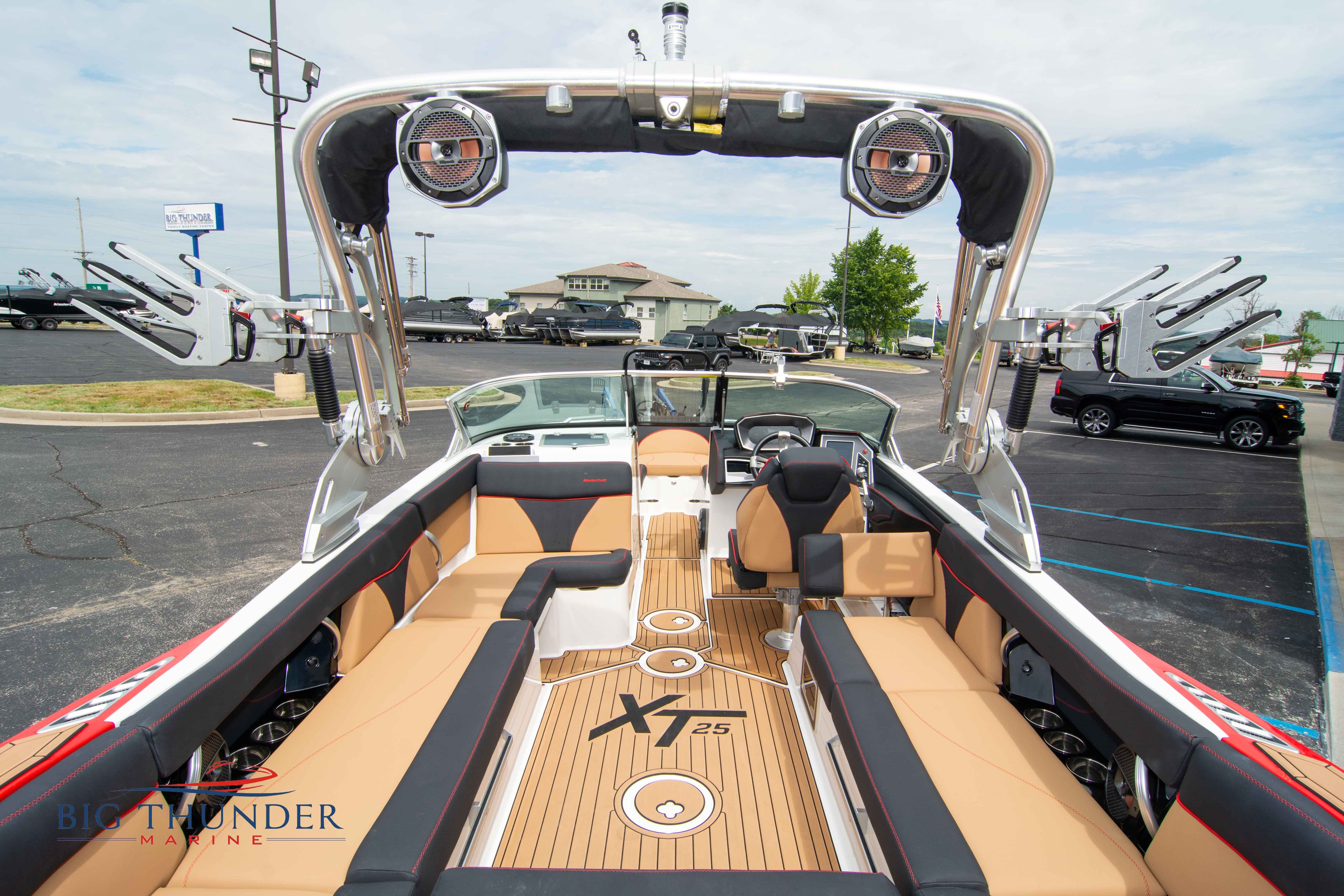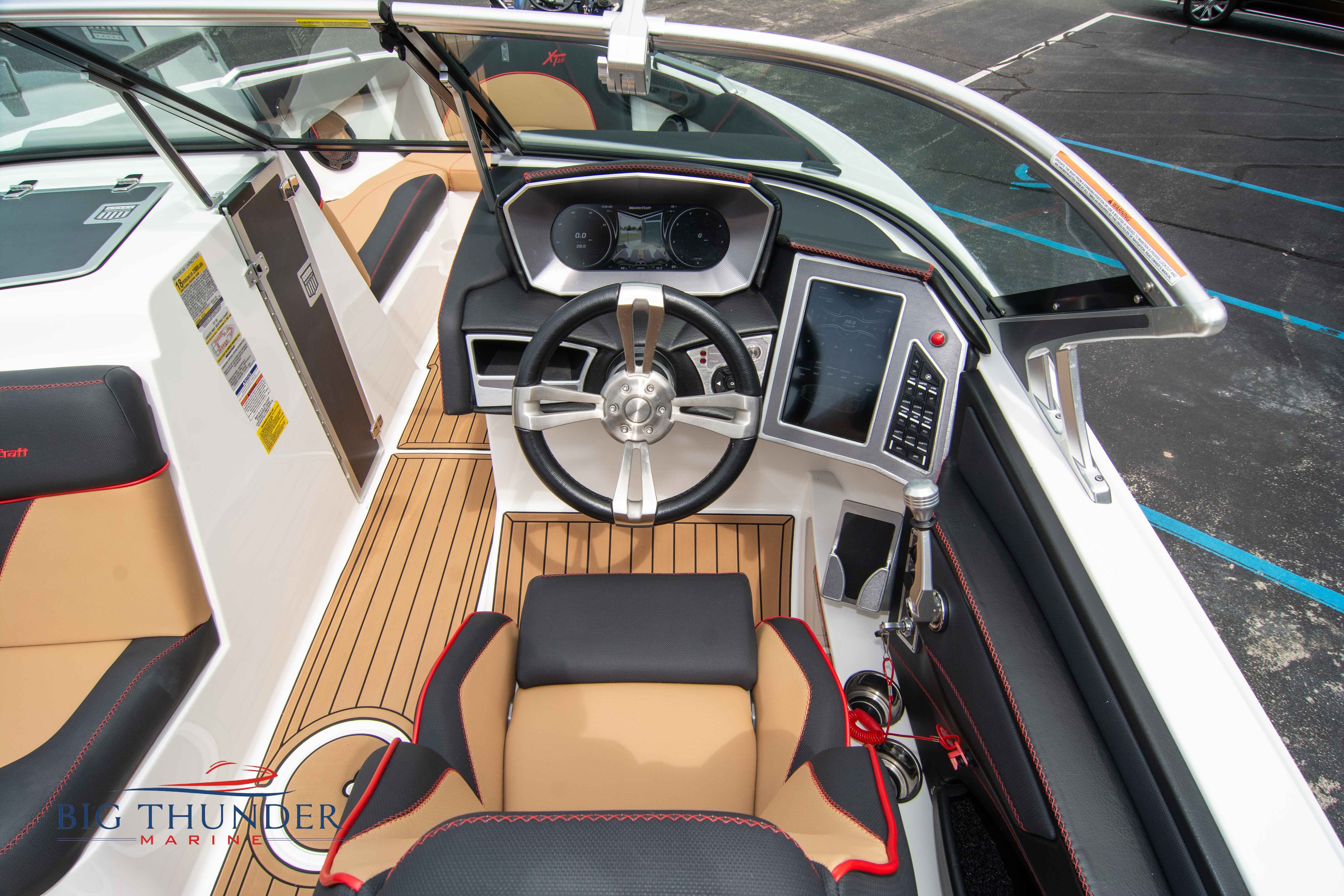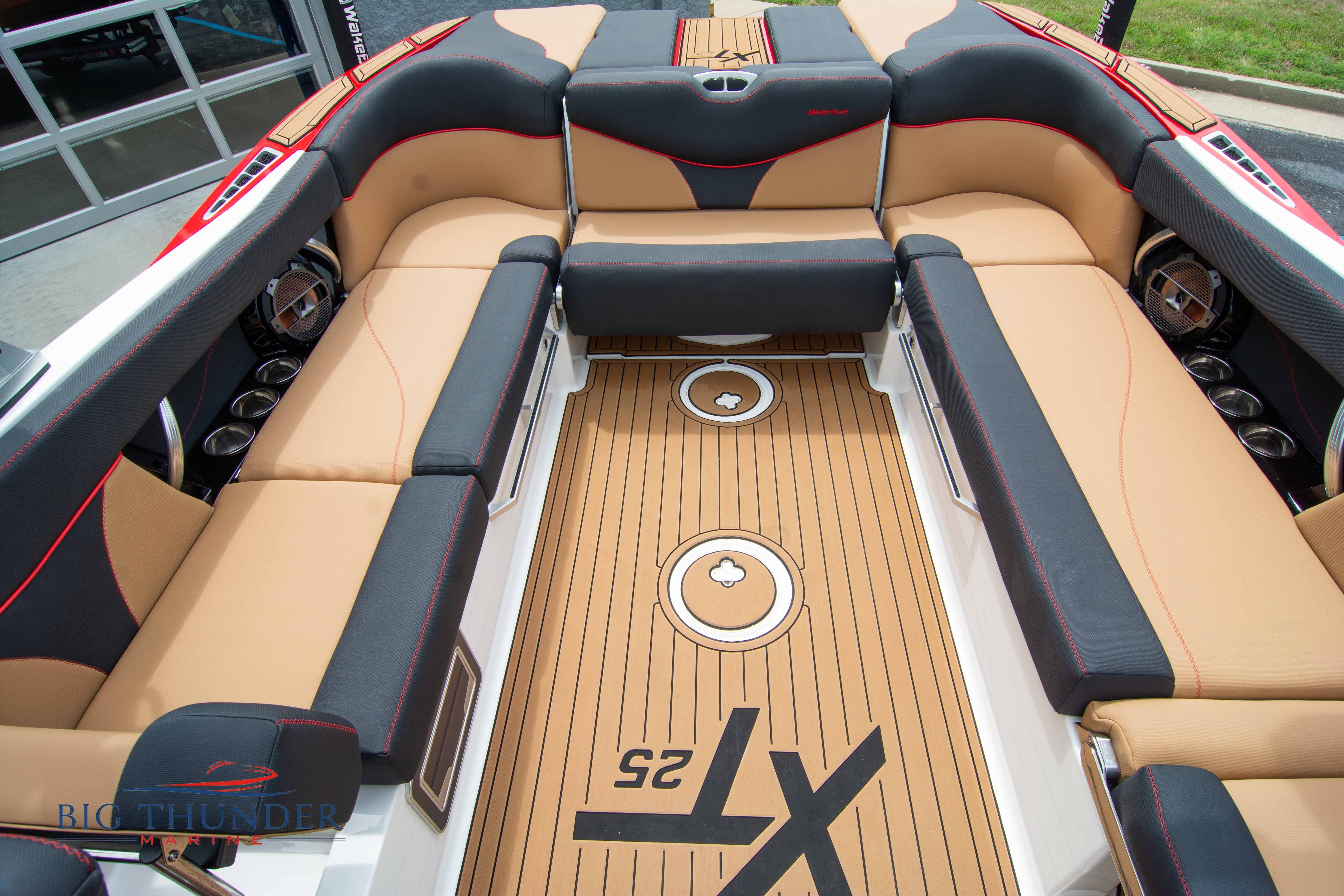 This is a like new 2019 MasterCraft XT25 with only 49 Hours! This boat has transferable MasterCare warranty Available until 2024. This boats options include: Cool feel interior, x baseball stitch, seadek floor covering, Ilmor 6000 GDI (430hp at prop only 49 hours), clear view billet panoramic mirror, BTS windshield, swim platform canvas, comfort and convenience package, gen 2 surf system with s2s switching capabilities, fast fill ballast, zft4 tower, surf surf racks, 2 s85 black billy klipsch tower speakers, dome light, premium audio and dual screen dash, transom stereo remote, billet walk through door, starboard pop up seat back, transom walk through, transom scratch protection, 110 volt battery charger, and matching tandem axle mastercraft trailer.