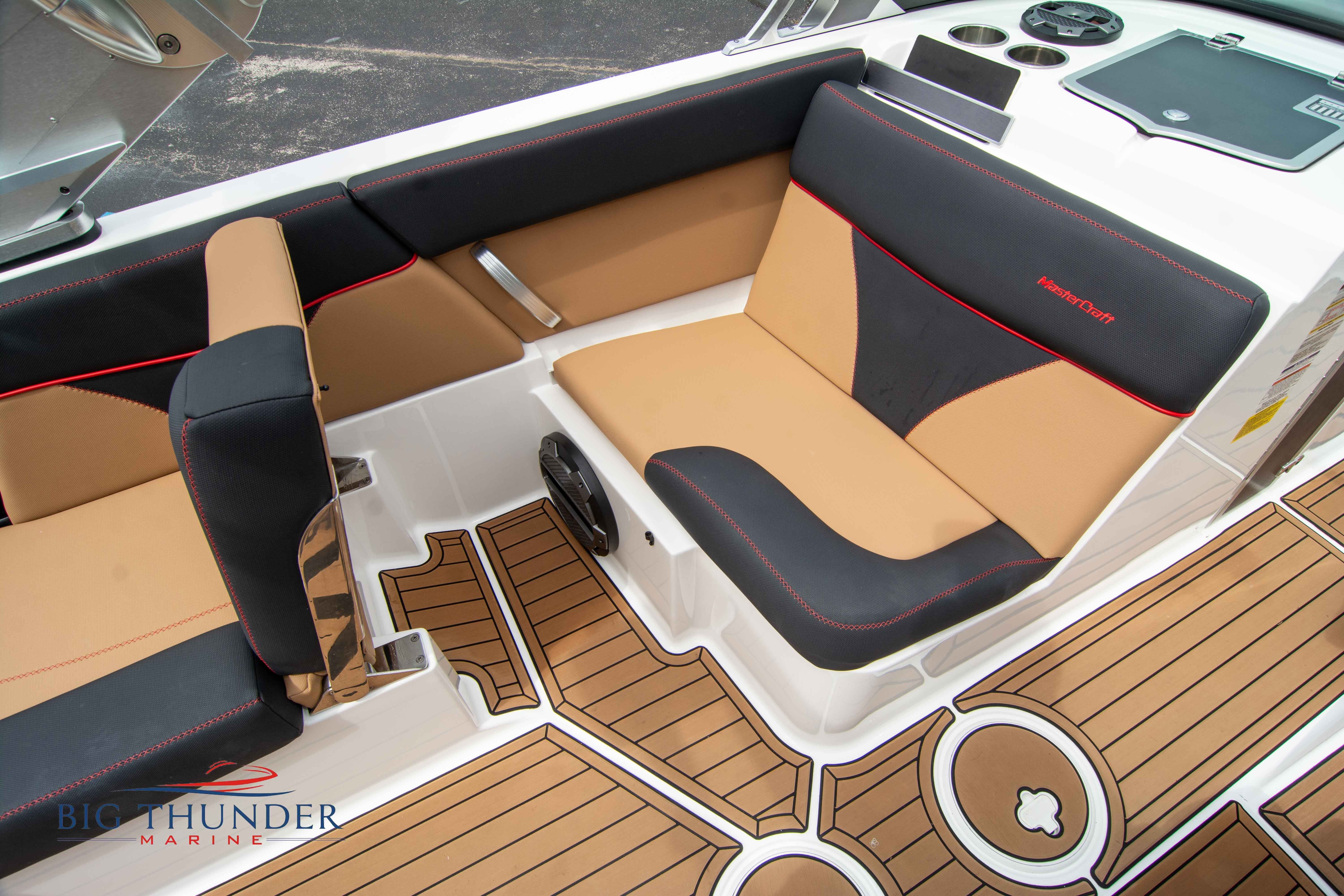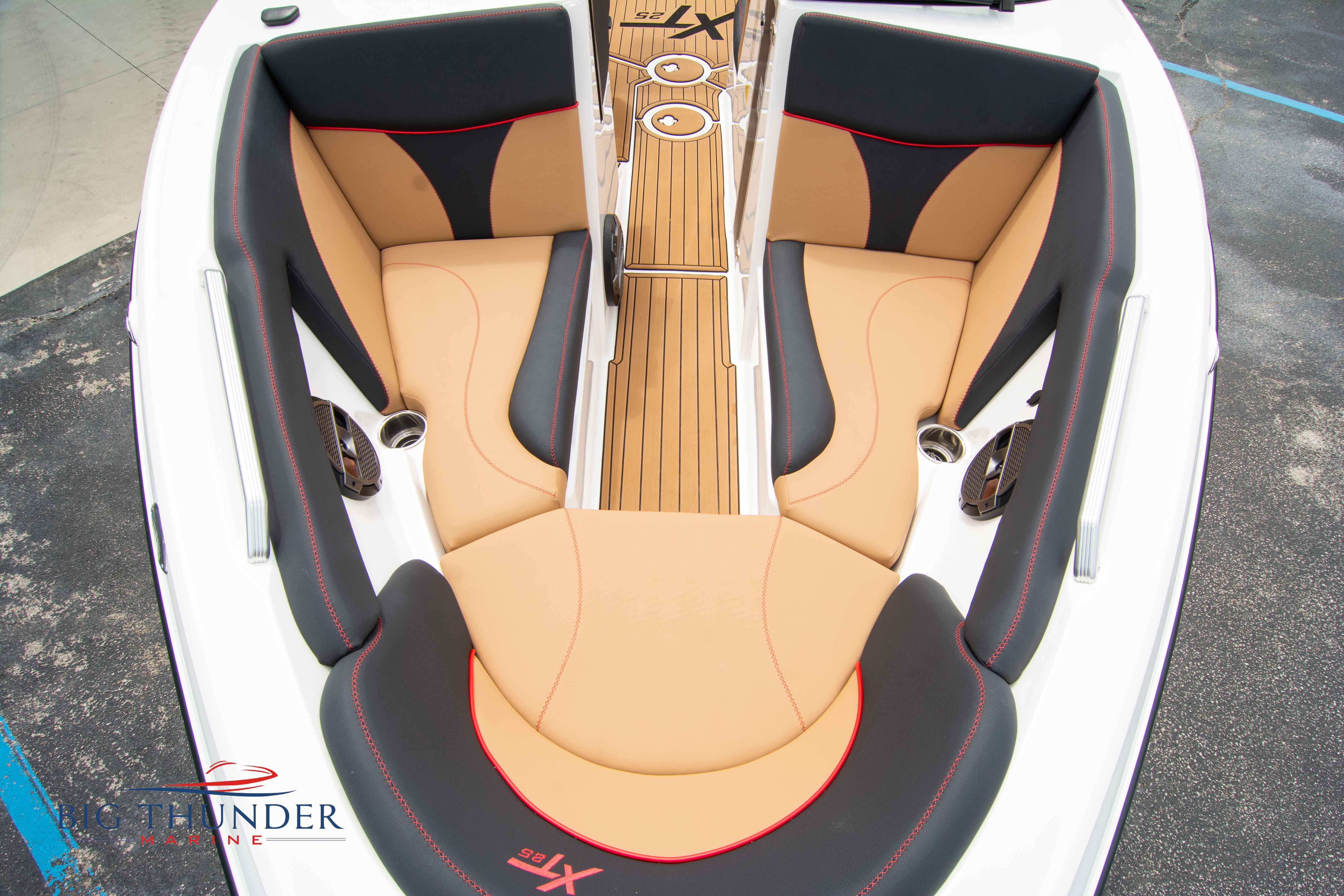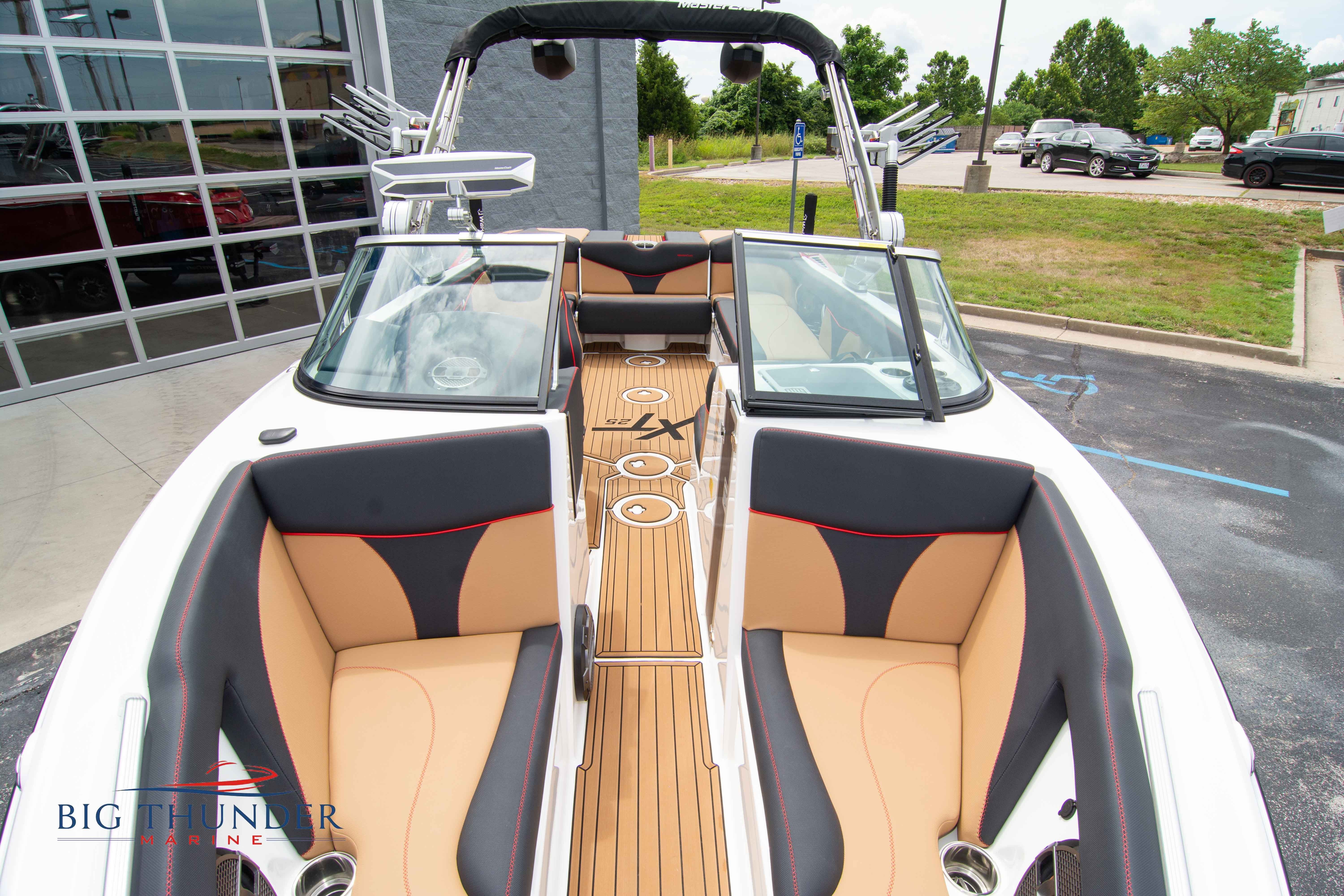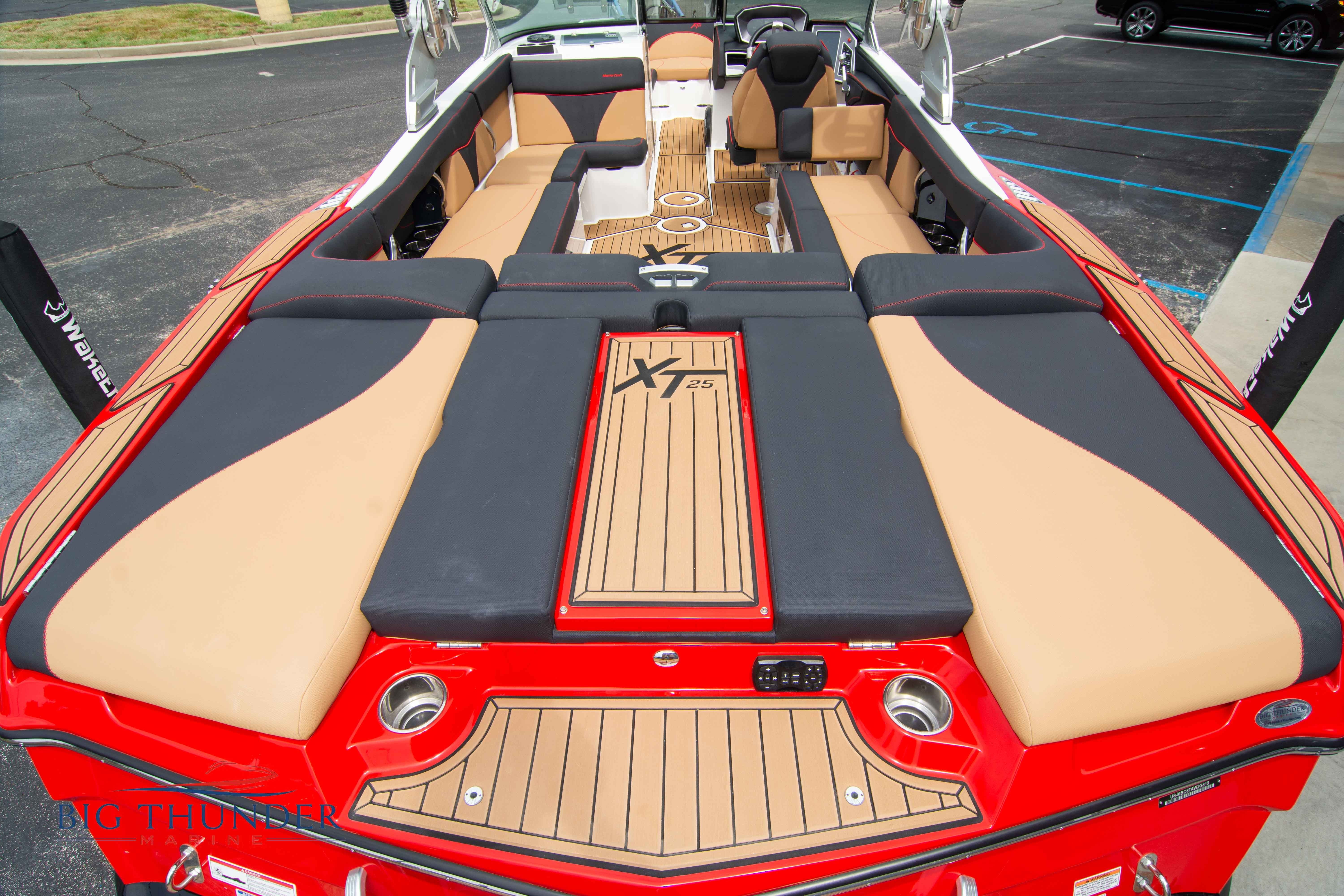 This is a like new 2019 MasterCraft XT25 with only 49 Hours! This boat has transferable MasterCare warranty Available until 2024. This boats options include: Cool feel interior, x baseball stitch, seadek floor covering, Ilmor 6000 GDI (430hp at prop only 49 hours), clear view billet panoramic mirror, BTS windshield, swim platform canvas, comfort and convenience package, gen 2 surf system with s2s switching capabilities, fast fill ballast, zft4 tower, surf surf racks, 2 s85 black billy klipsch tower speakers, dome light, premium audio and dual screen dash, transom stereo remote, billet walk through door, starboard pop up seat back, transom walk through, transom scratch protection, 110 volt battery charger, and matching tandem axle mastercraft trailer.