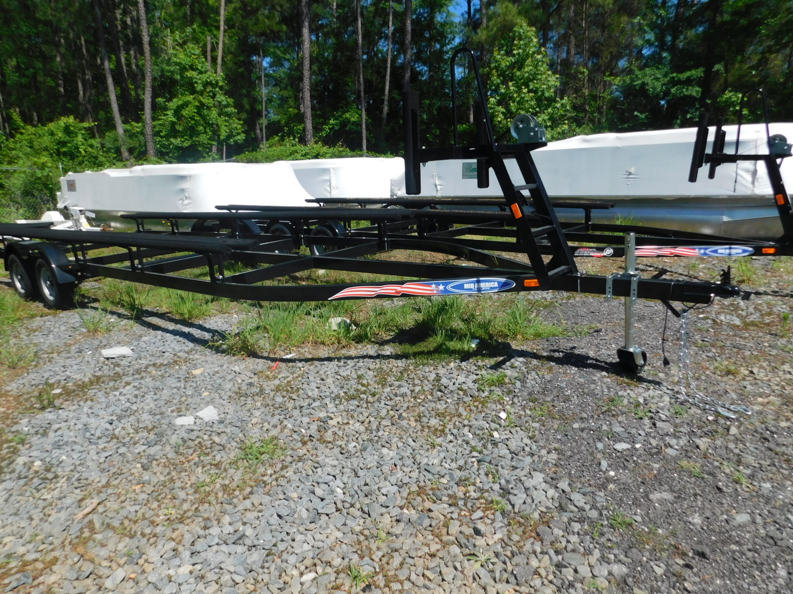 2019 24 foot Mid America pontoon trailer tandem axle with brakes for only $3195. Call us at 478-474-9995 for more details!