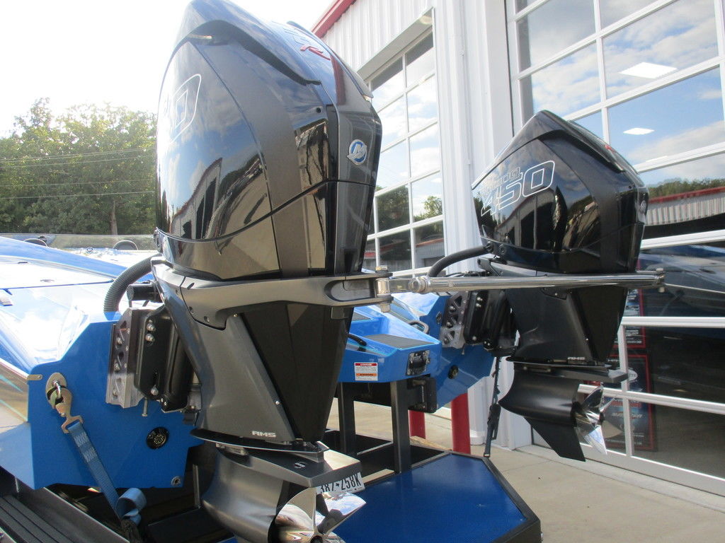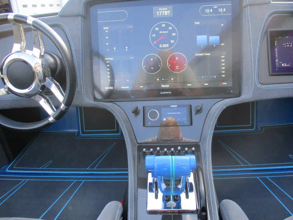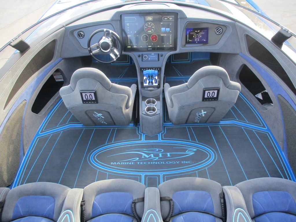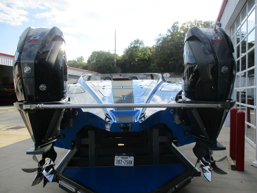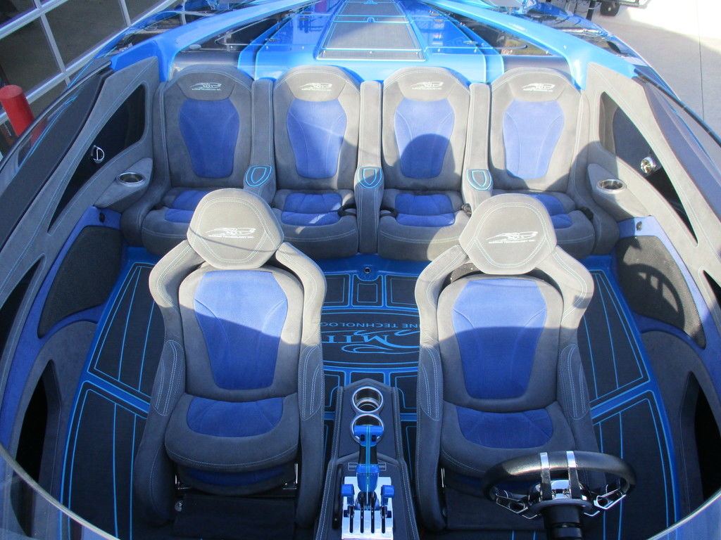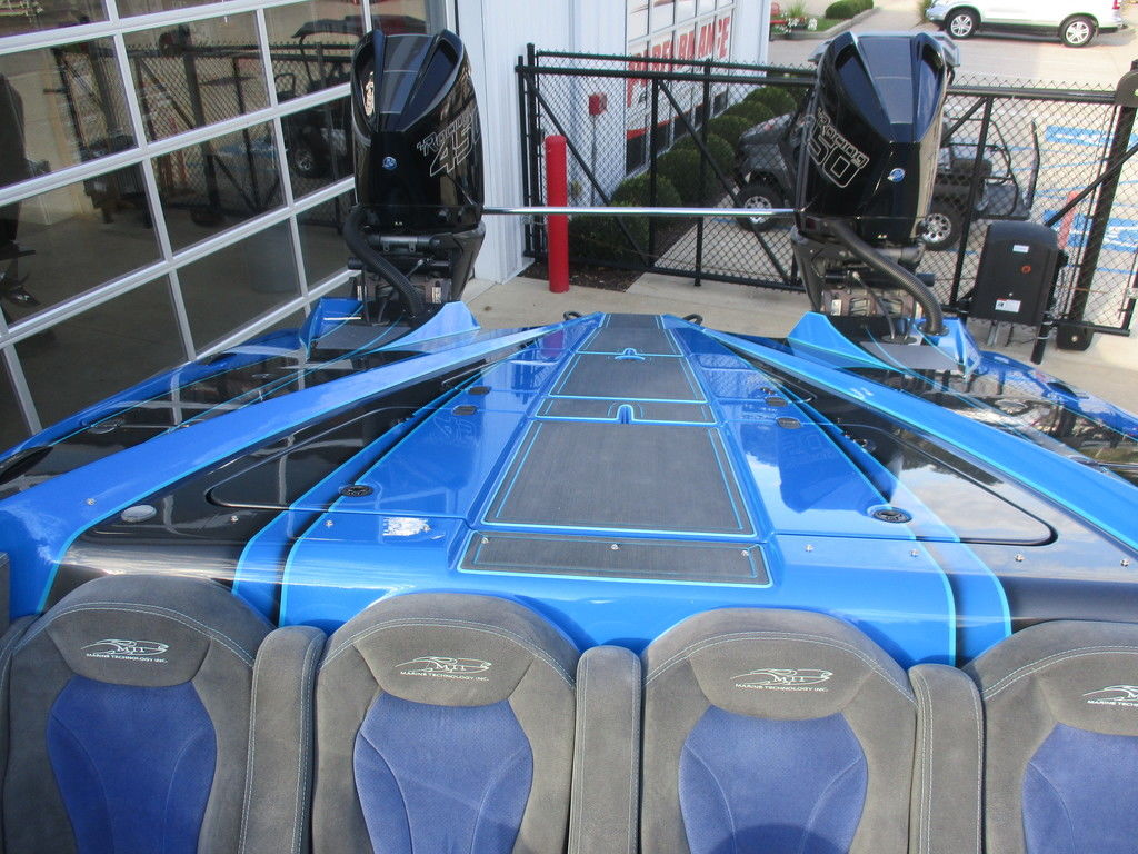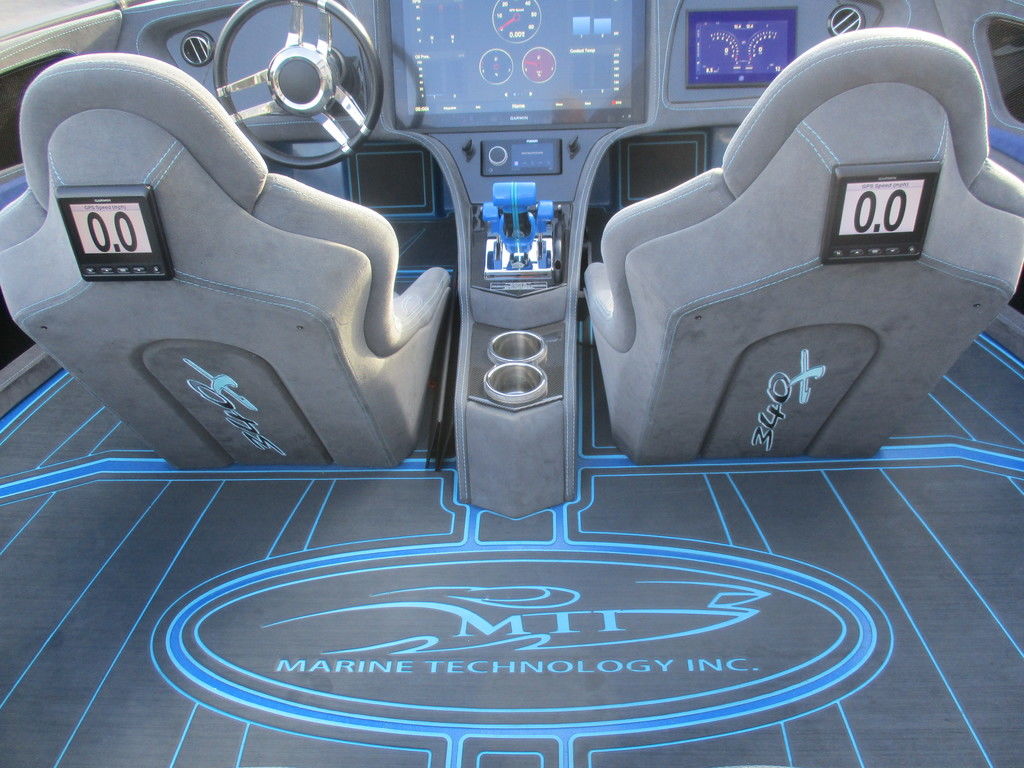 2019 MTI 340X powered by twin Mercury Racing 450R with 44 hours, Garmin GPS centered in dash, Vessel View, 24" Garmin GPS speedometers in the seat backs, upgraded Fusion/Wetsounds stereo, rear facing speaker pod, Sea Deck flooring in cockpit and rear deck, (4) cockpit blowers, flip up bolsters for front seats, Alcantara interior, Garmin VirbXE rear facing camera mounted to windshield, underwater LED lights, carbon fiber manual sunshade for cockpit, cockpit cover, and custom triple axle trailer included. Financing and transportation available.