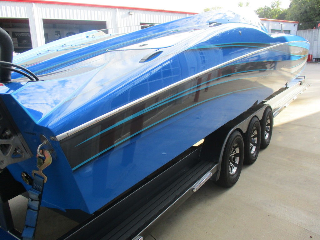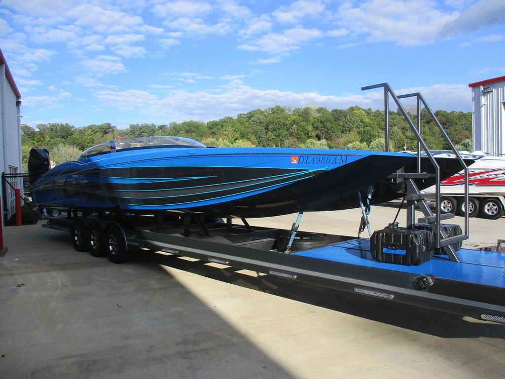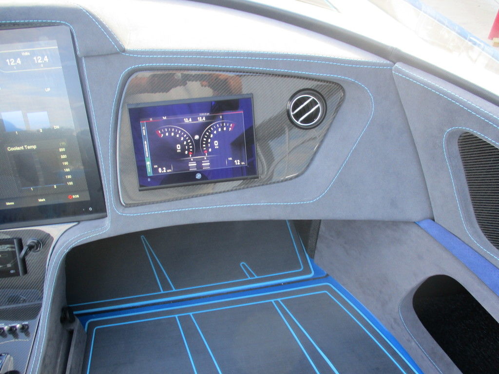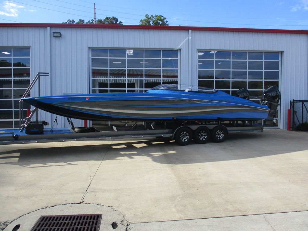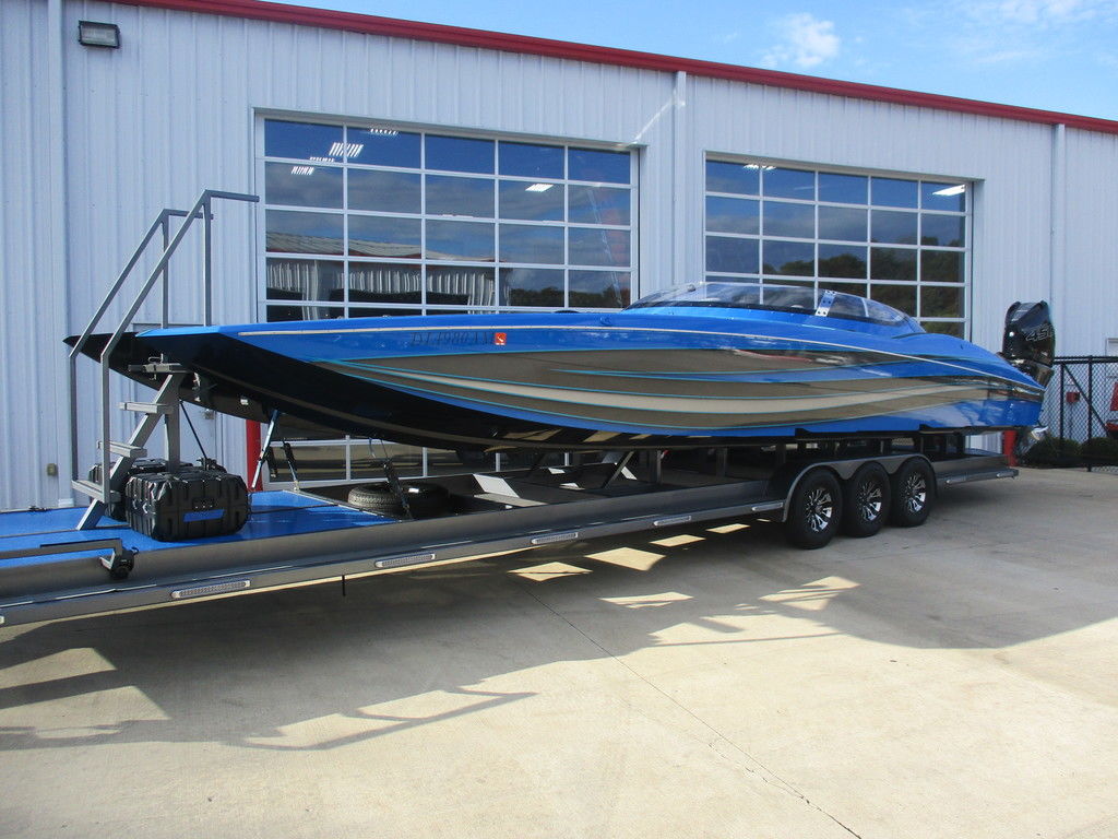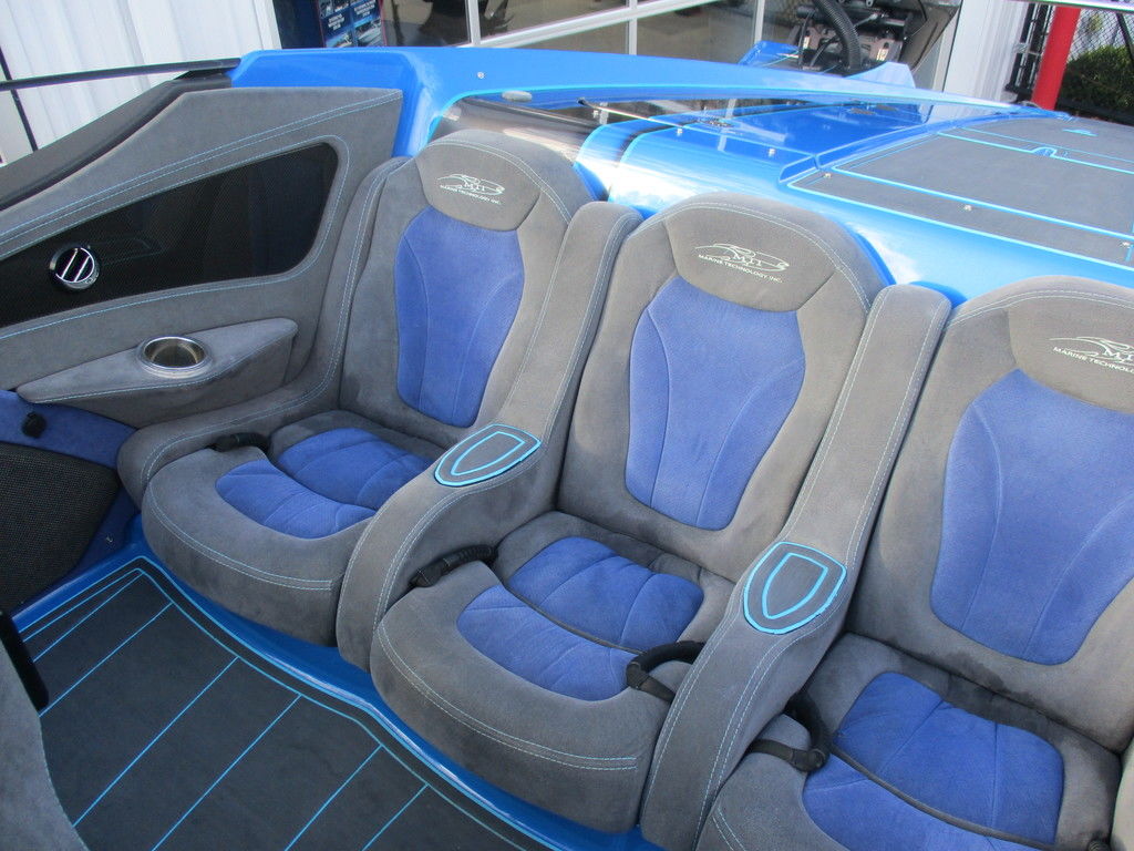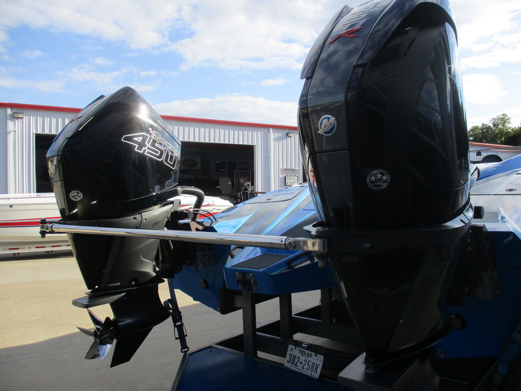 2019 MTI 340X powered by twin Mercury Racing 450R with 44 hours, Garmin GPS centered in dash, Vessel View, 24" Garmin GPS speedometers in the seat backs, upgraded Fusion/Wetsounds stereo, rear facing speaker pod, Sea Deck flooring in cockpit and rear deck, (4) cockpit blowers, flip up bolsters for front seats, Alcantara interior, Garmin VirbXE rear facing camera mounted to windshield, underwater LED lights, carbon fiber manual sunshade for cockpit, cockpit cover, and custom triple axle trailer included. Financing and transportation available.