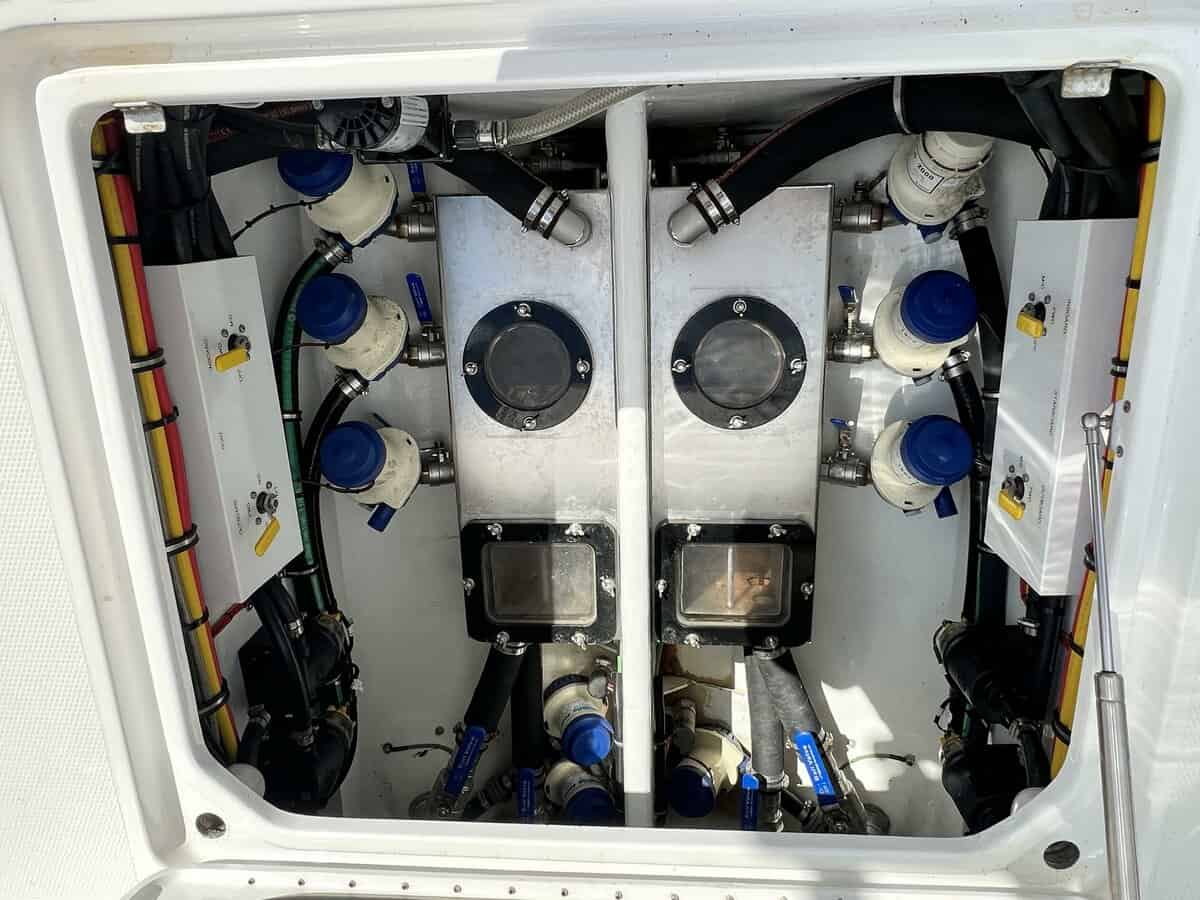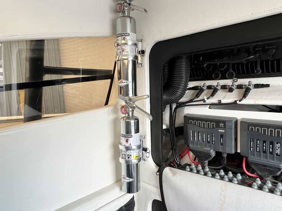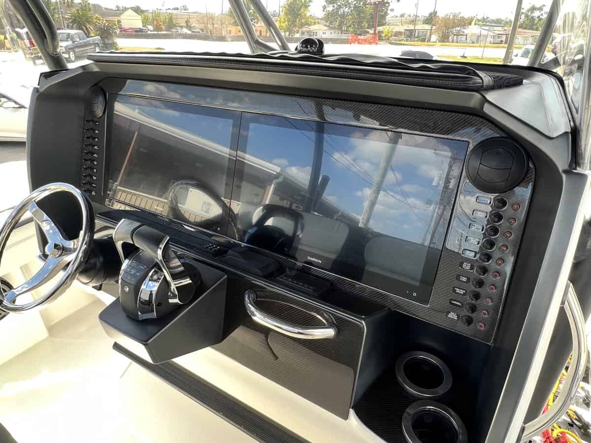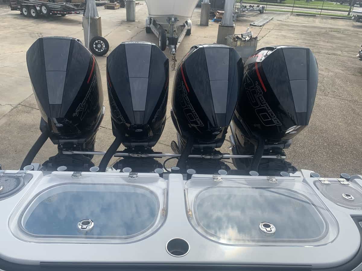can do it all! Included in this 2019 392Quad Mercury 450 Mercury Racing Engines with 367 hoursFreshwater flush system for quad enginesMercury Vessel View SystemDual 22" Garmin MFDGarmin GHC20 Auto PilotGSD26 with 3kw TransducerLED Underwater lightsGarmin Open Array RadarGarmin VHF RadioGarmin XM Radio and WeatherPremium Sound system Additional Premium Sound Upgrade2 Additional speakers, Upgraded Amps and 2 additional