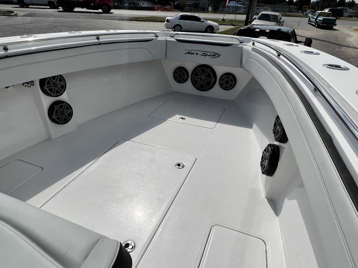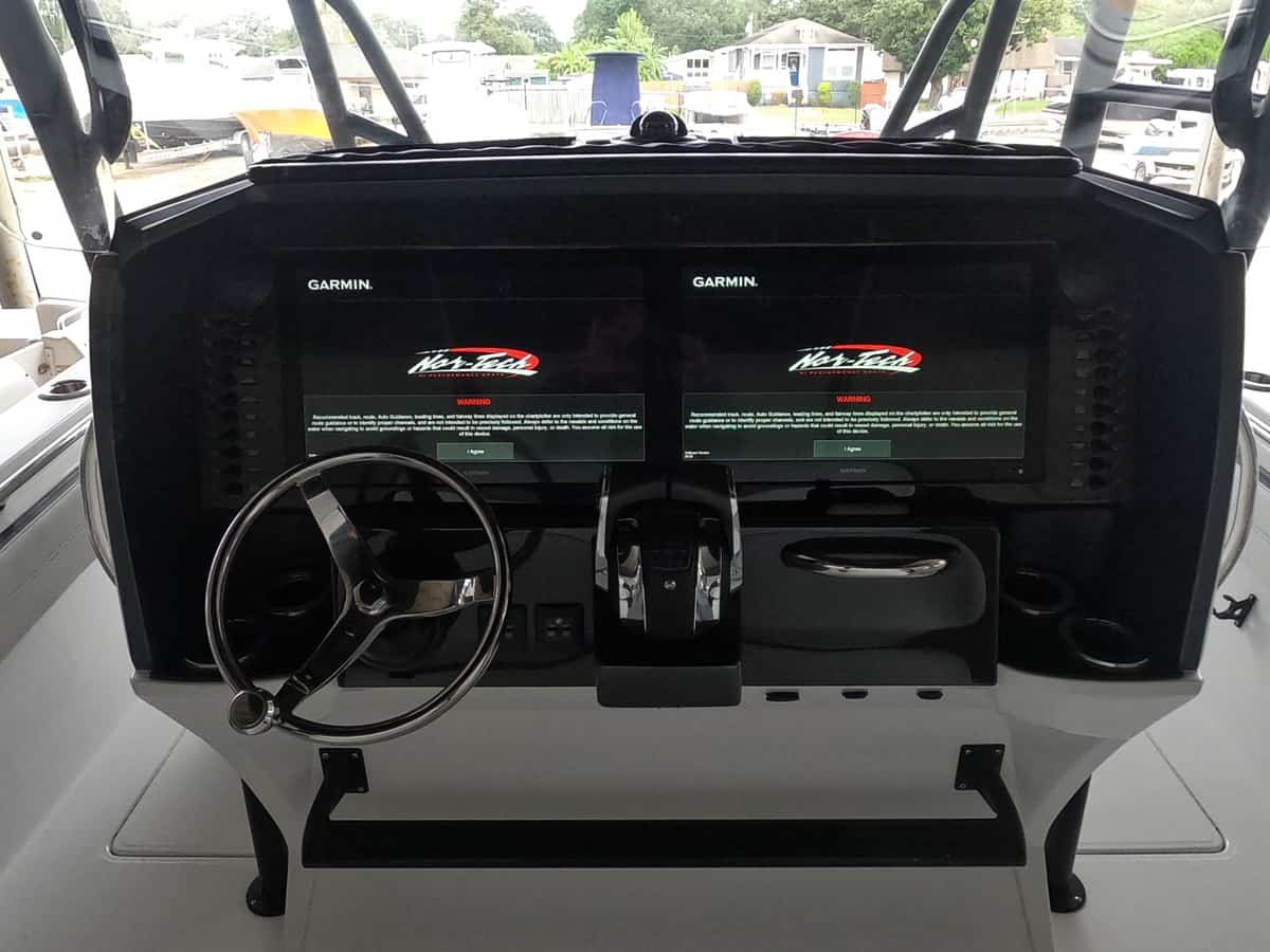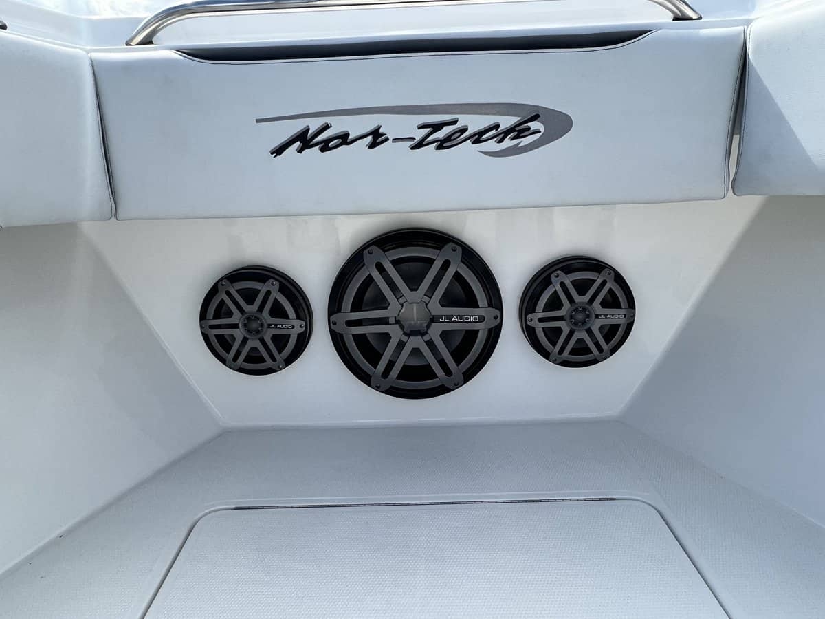 SubsTransom Rod Rack4 Electric Reel OutletsOutriggersAdditional 135 Gallon Fuel TankSliding Back Cooler12 Volt Cabin ACCustom Nor Tech Tackle CanterRemoveable Rear Bench Seating at livewellsCustom Wrap with Clear Overlay Trailer not included but trailer options are available