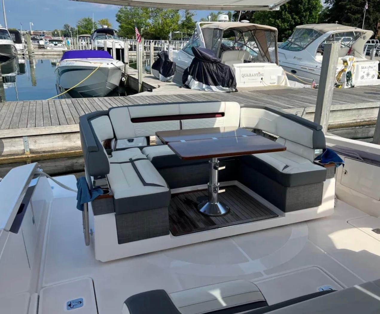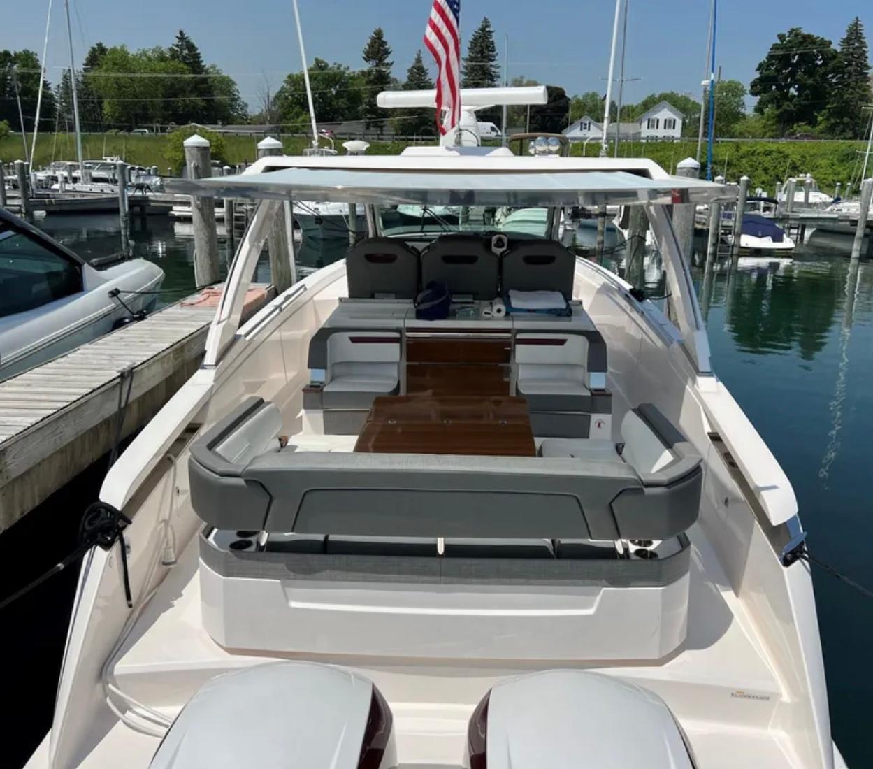 - Twin Seven Marine 527hp outboards with joystick docking/driving