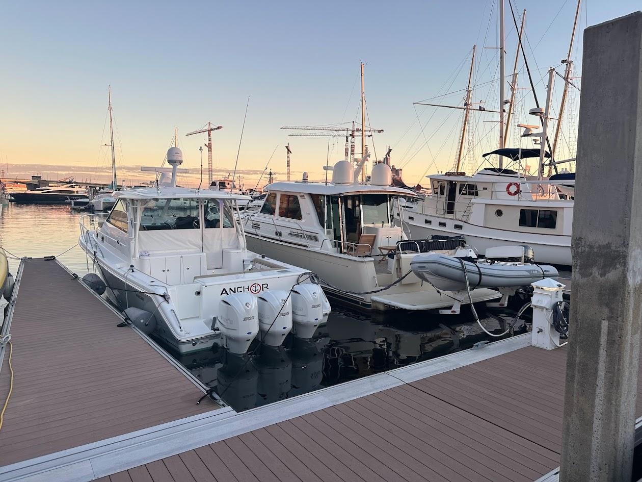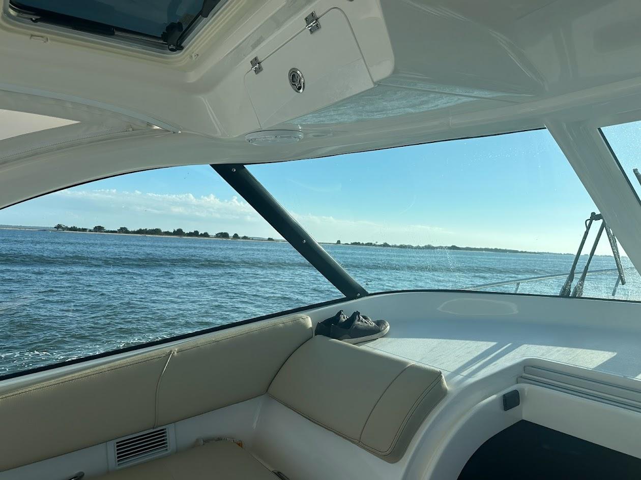 The fully integrated hardtop and windshield are engineered to support an optional factory-built tower. Dependable Yamaha® outboards on the transom not only increase her overall performance but also open up valuable space for additional storage and accommodations. Her sleek, express style with a 13-foot beam results in an expansive cockpit and roomy interior below decks. Two available floor plans below deck feature light-colored interior woods, exquisite fabrics and strategically located ports to make the interior spacious, stylish and inviting.