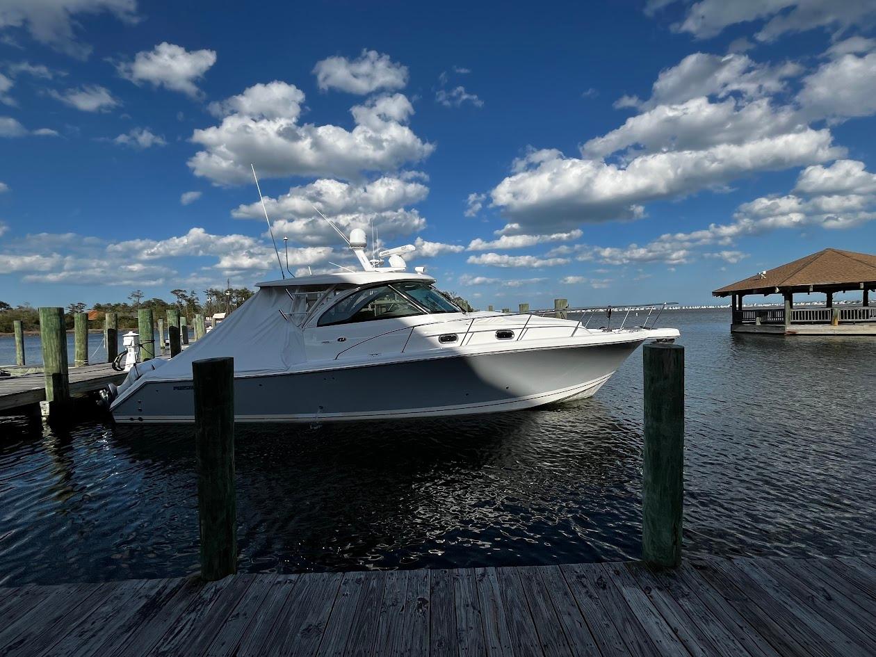 The OS 385 is the flagship model of the Pursuit fleet of premium offshore boats. Measuring just under 40 feet in length, this vessel has all the comforts of home plus a 360-degree water view. The OS 385 combines the performance, seaworthiness and fishability of the world’s top inboard convertible and express offerings with the luxury interior appointments of most comfortable cruisers.