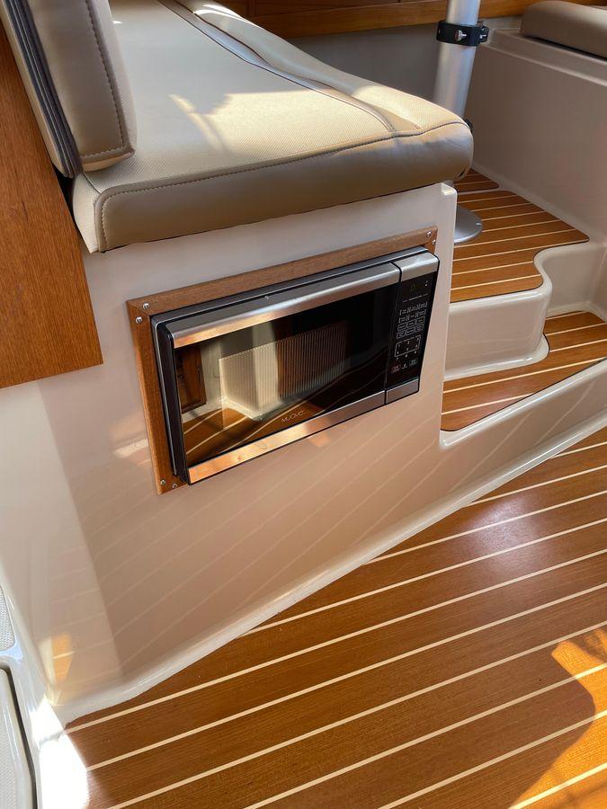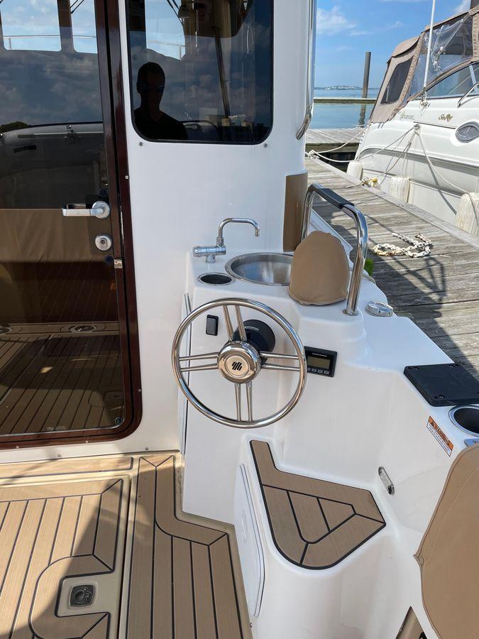 Like all Ranger Tugs, the R-31 CB comes essentially turnkey with standard features and equipment intended to make her owner’s experience hassle-free and allow for ease of handling and comfort under way. Standard equipment includes bow and stern thrusters, an aft steering station and a Volvo D4 300hp engine that achieves a 16 knot cruise speed