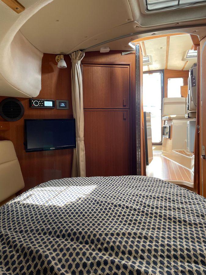 The interior layout of the R-31 CB features two staterooms—one large island berth forward with en suite head and a midship berth and day head. Those who are familiar with Ranger Tugs models will recognize the galley layout and lower helm station that maximize interior space. A starboard side door provides easy access from the lower helm to the side decks so crew can get to the bow for line handling.