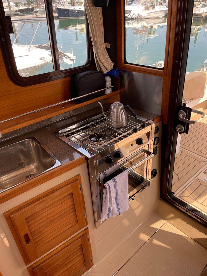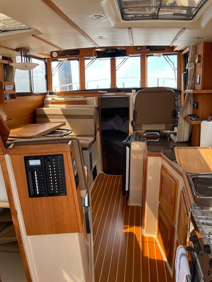 Helios is a beautiful midnight blue Ranger Tug 31 CB (Northwest Edition) with only 345 hours on the Volvo D4-300. The boat is a northwest edition, but has also had the factory air conditioning installed to make the boat very comfortable on those hot summer nights. Extremely well maintained and equipped with nearly every option offered by Ranger Tug she is ready for extended cruising. The boat is in pristine condition, has several additional desirable upgrades, and comes with a dinghy and brand new Suzuki 6hp outboard.
